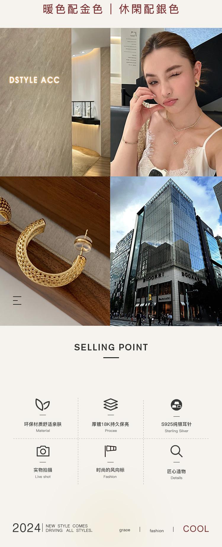 Aretes de Letra C Hueca Estilo Frío Europeo y Americano Aretes Únicos Sentido del Diseño Nicho Sentido Avanzado Aretes de Temperamento Aretes