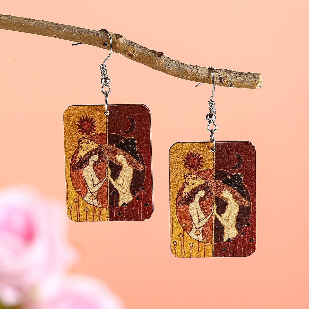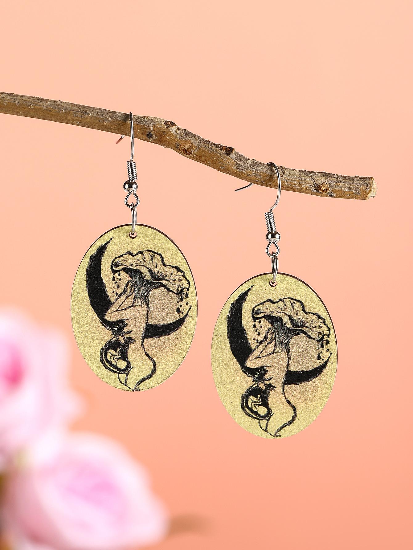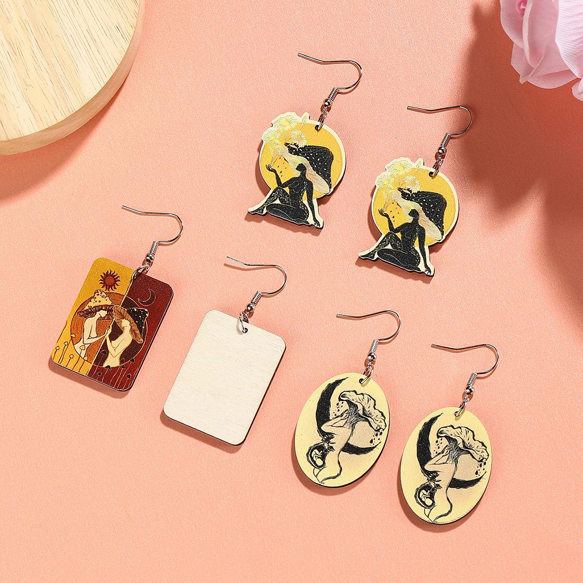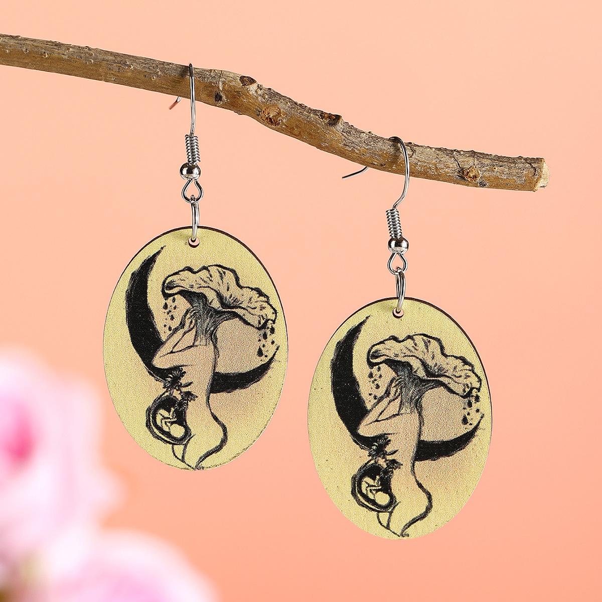 Aretes de madera creativos retro europeos y americanos para el día de la madre, aretes de retrato con impresión a color, aretes geométricos de temperamento y personalidad, aretes modernos