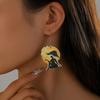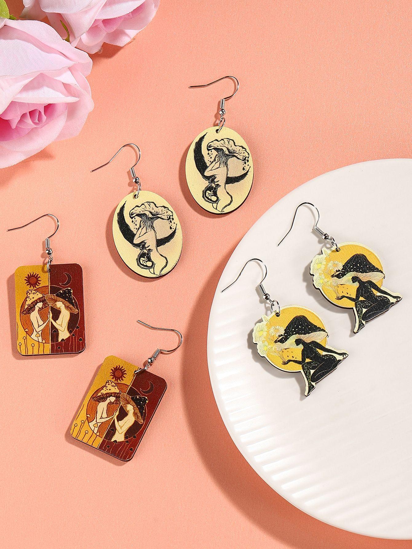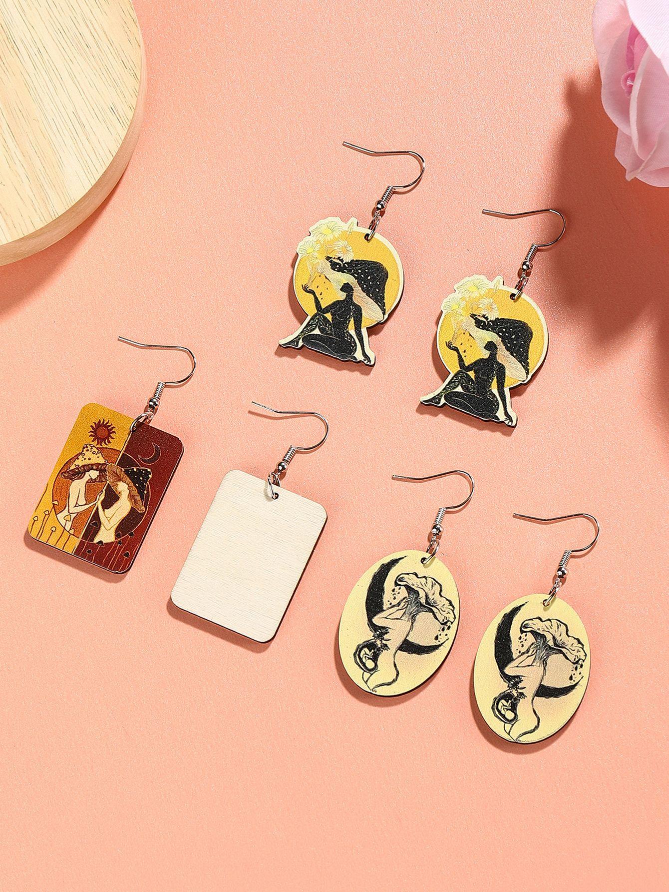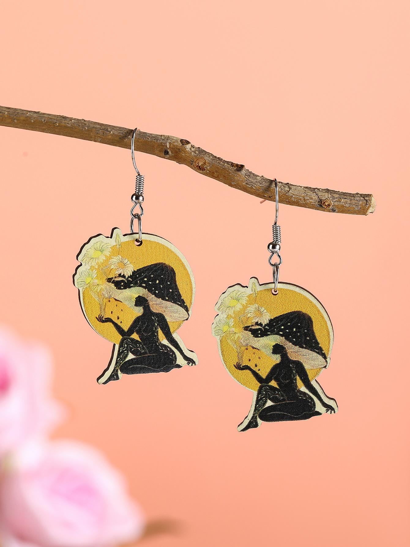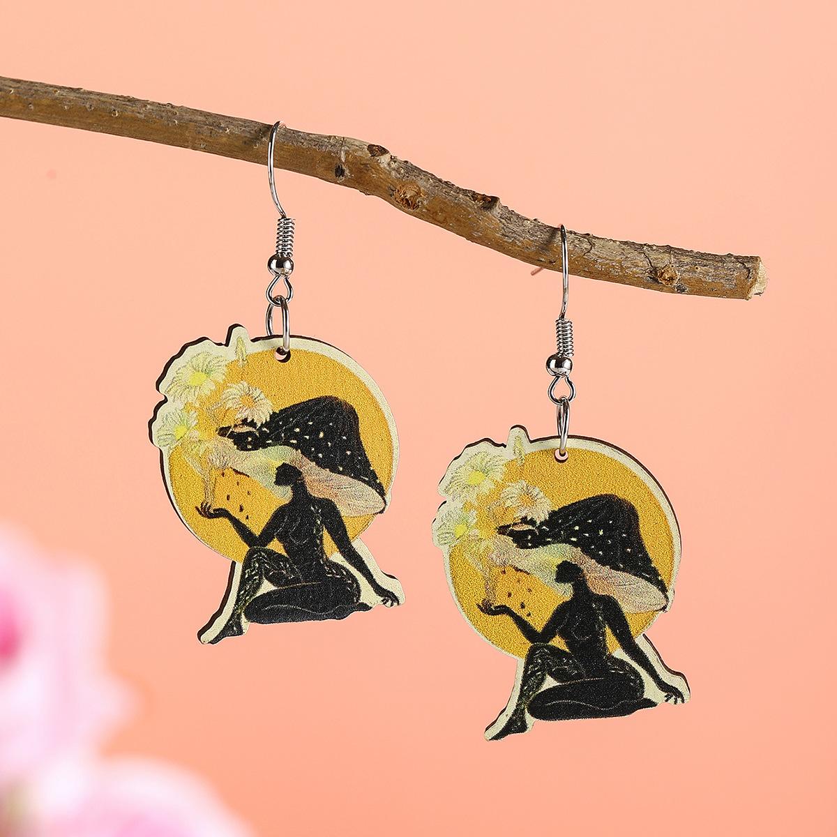 Aretes de madera creativos retro europeos y americanos para el día de la madre, aretes de retrato con impresión a color, aretes geométricos de temperamento y personalidad, aretes modernos
