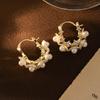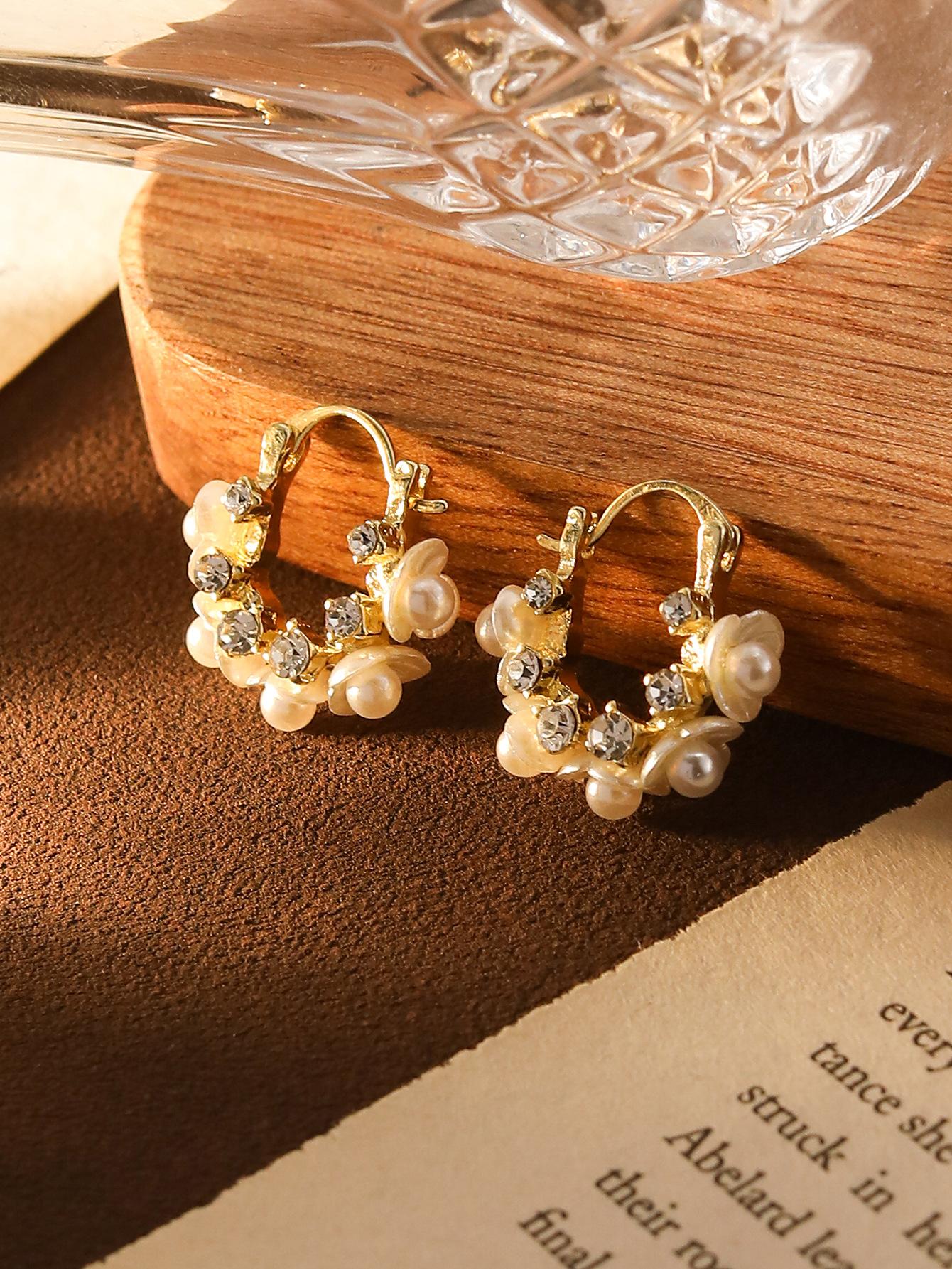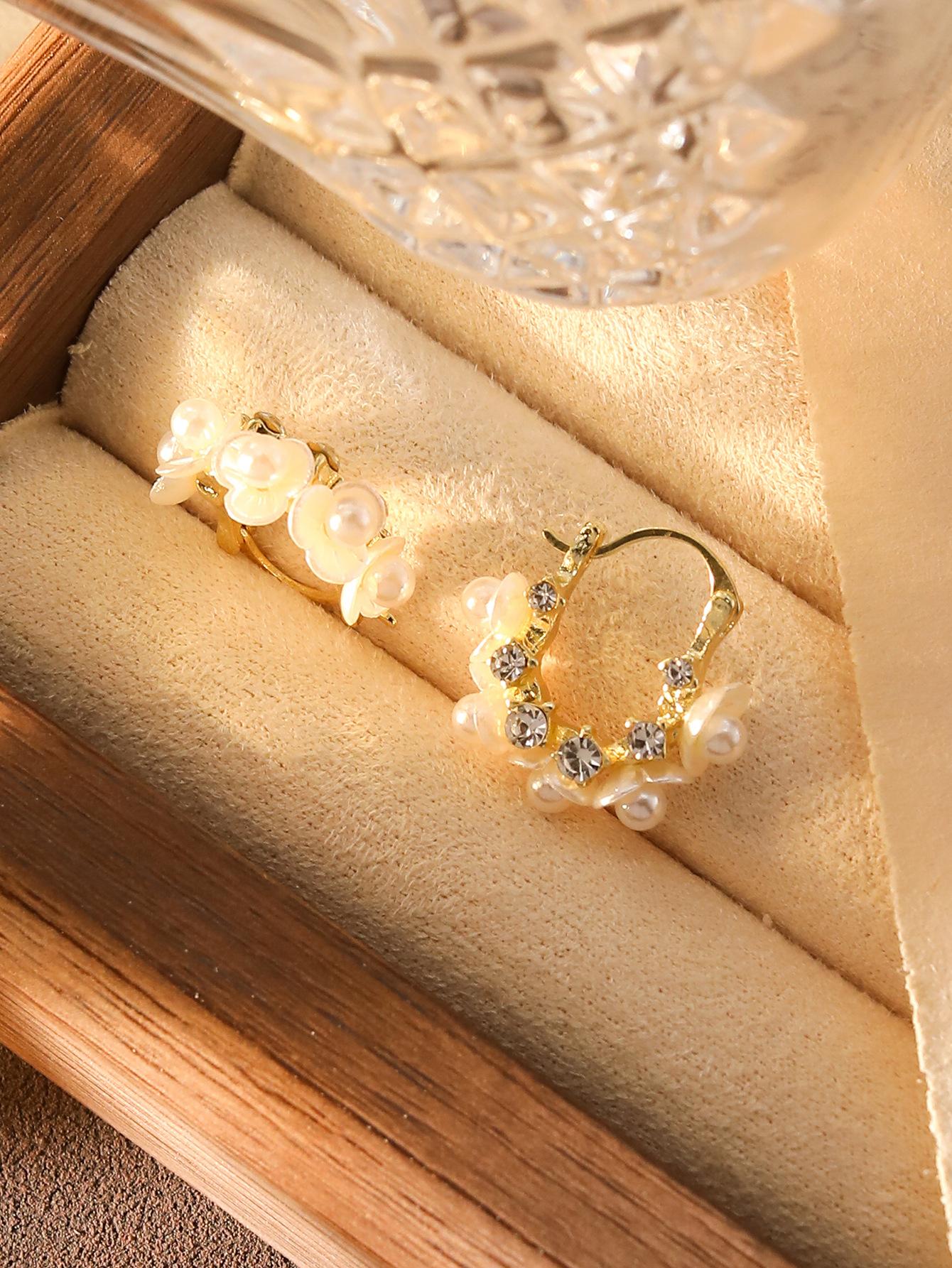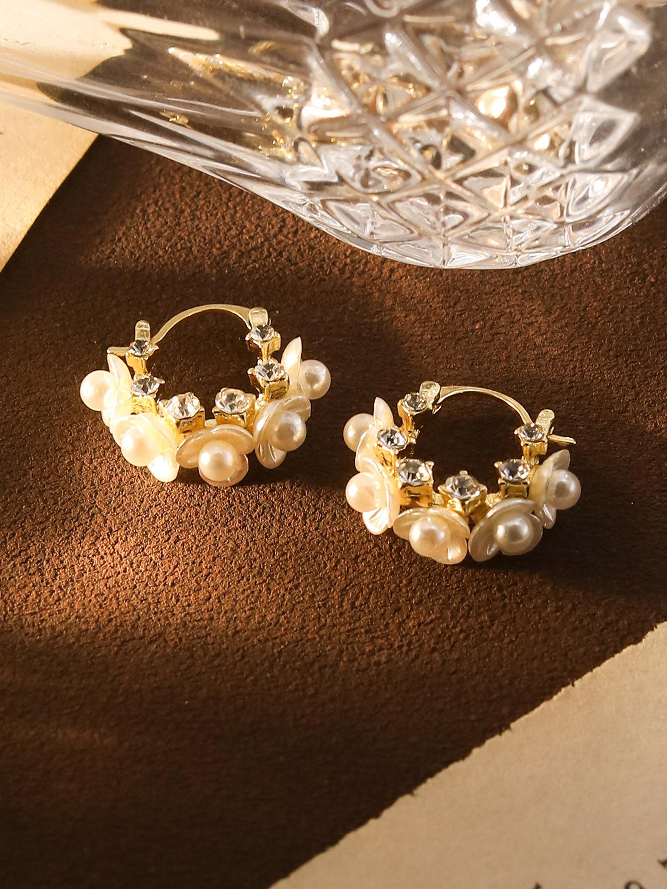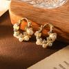 Aretes coreanos estilo ins dulces y exquisitos de flor de perla, aretes retro versátiles de diamantes de imitación, aretes de nicho de lujo ligero para mujerSuministro al por mayor de joyas