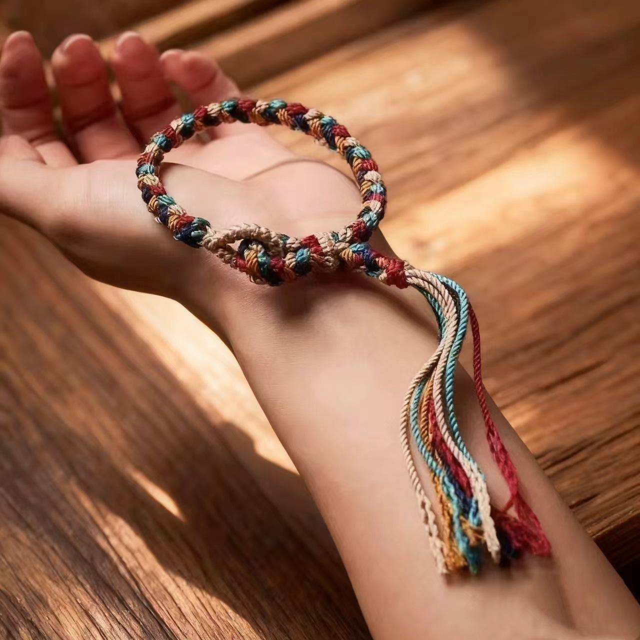 Xizang Cuerda de Mano Colorida Tejida a Mano Cuerda Simple Pulsera de Algodón Enrollada a Mano Joyería Pulsera de Estilo Étnico Ajustable Regalo