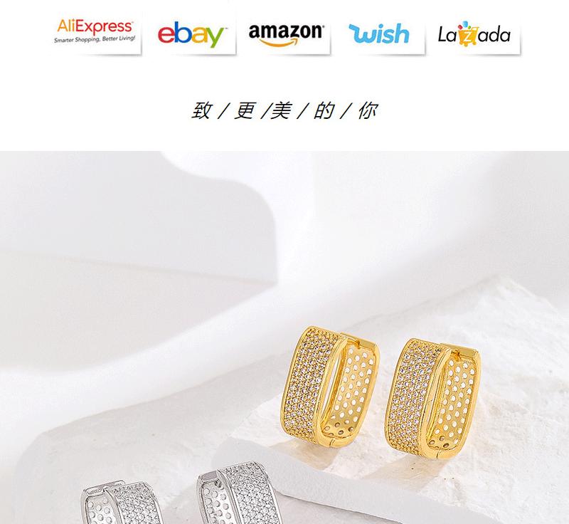 Pendientes de Nuevo Estilo Estilo Lujo Ligero Pendientes de Moda Verano Zirconia Rectangular Hebilla de Oreja en Forma de U para Mujer Sensación de Alta Gama Pendientes de Celebridad de Internet al por Mayor