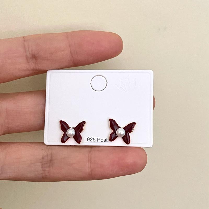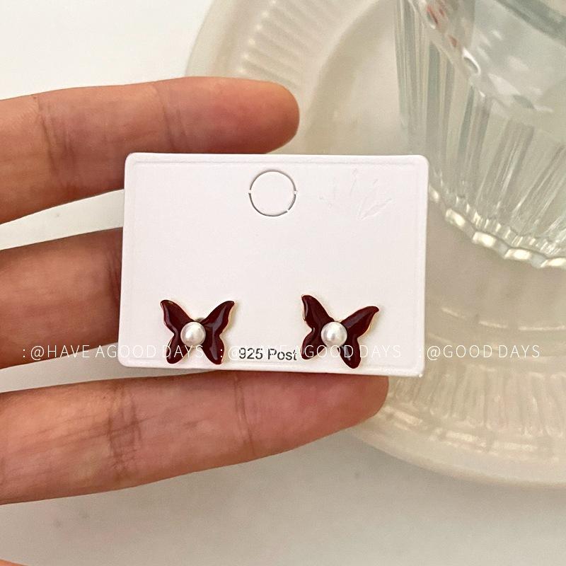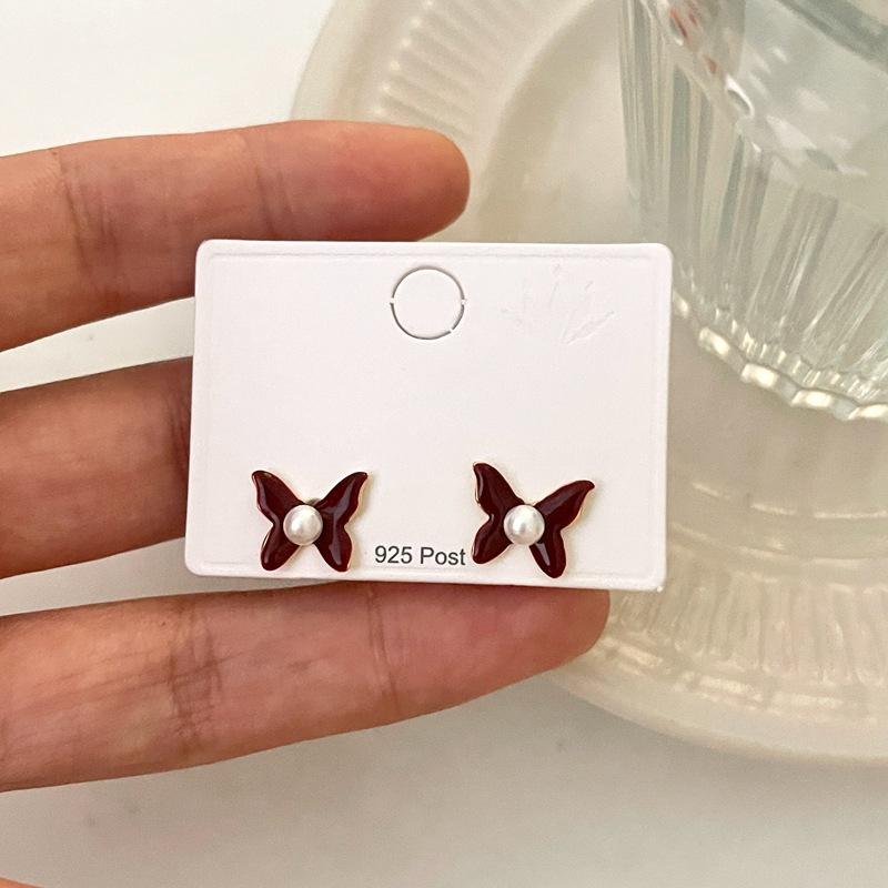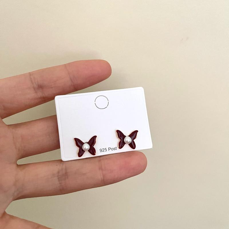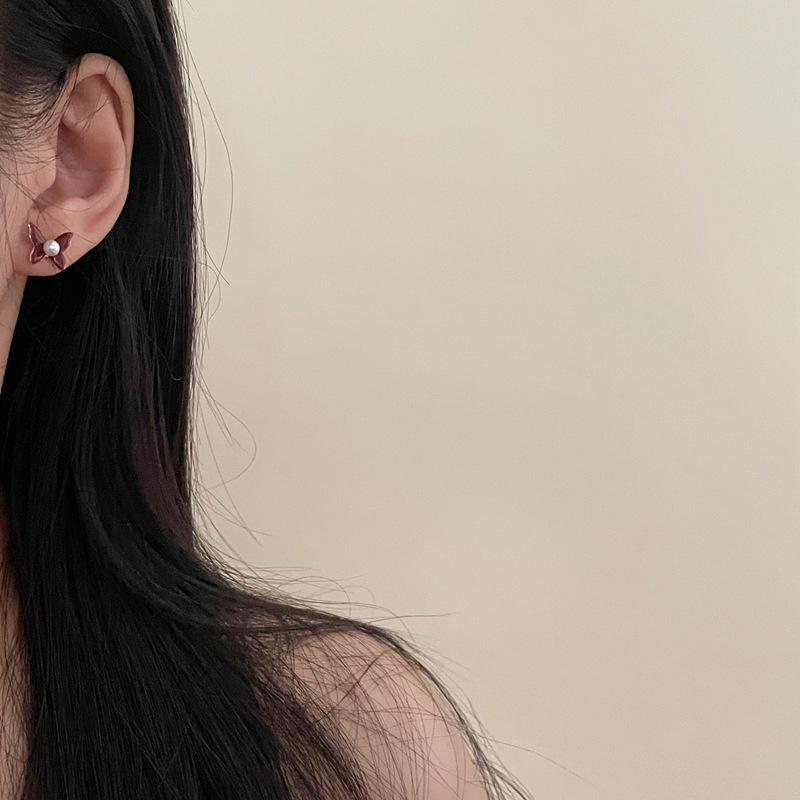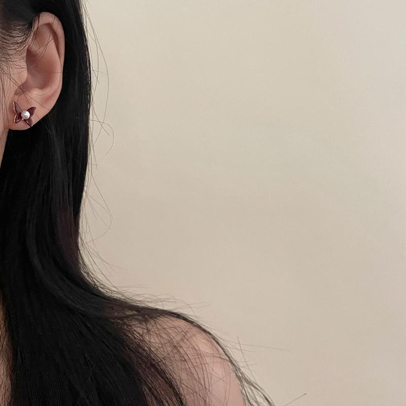 Aretes de Personalidad de Diseño Nicho de Lujo Ligero Estilo Francés Aretes de Temperamento de Mariposa de Perla Estilo Dulce Cool Aretes de Tuerca de Gama Alta