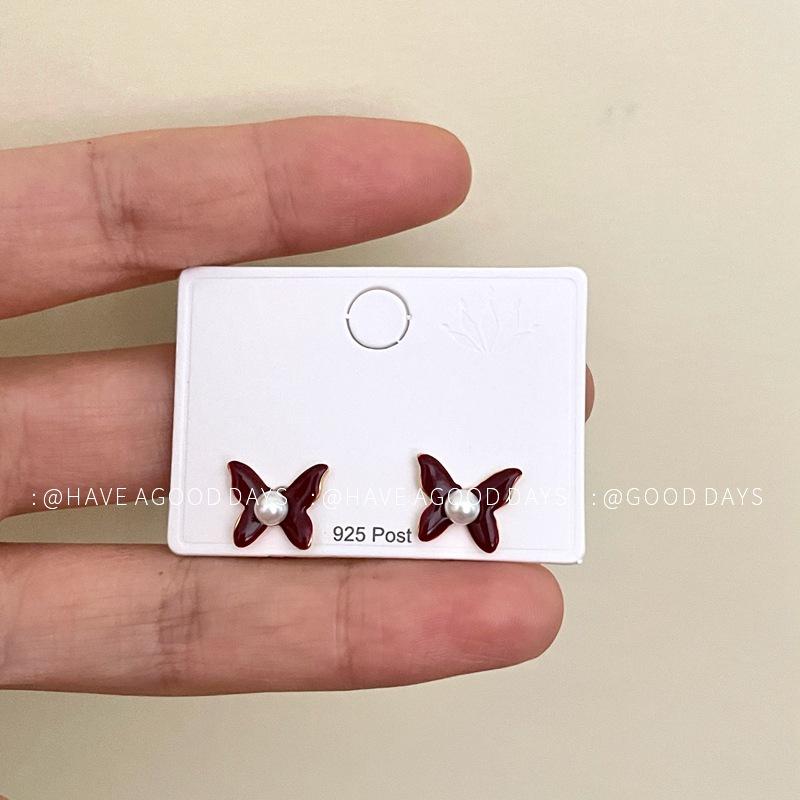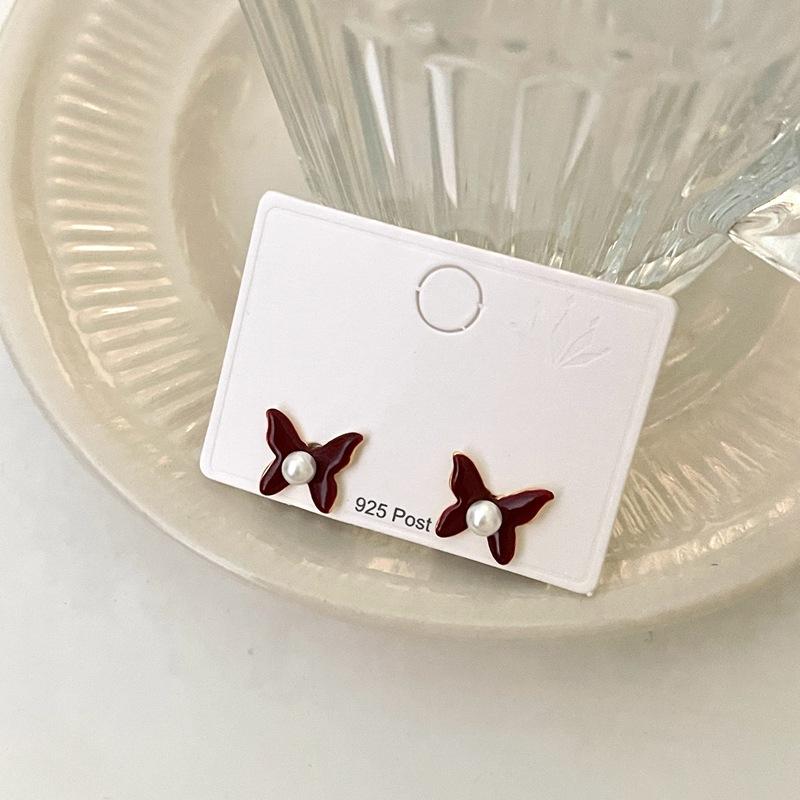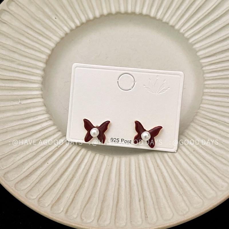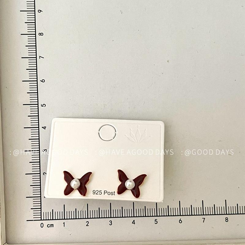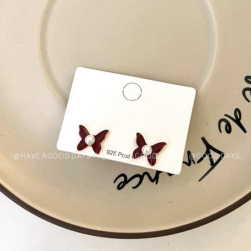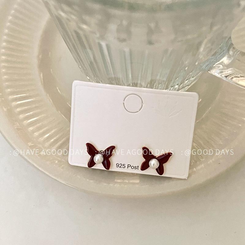 Aretes de Personalidad de Diseño Nicho de Lujo Ligero Estilo Francés Aretes de Temperamento de Mariposa de Perla Estilo Dulce Cool Aretes de Tuerca de Gama Alta