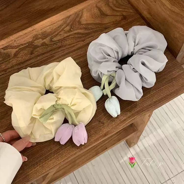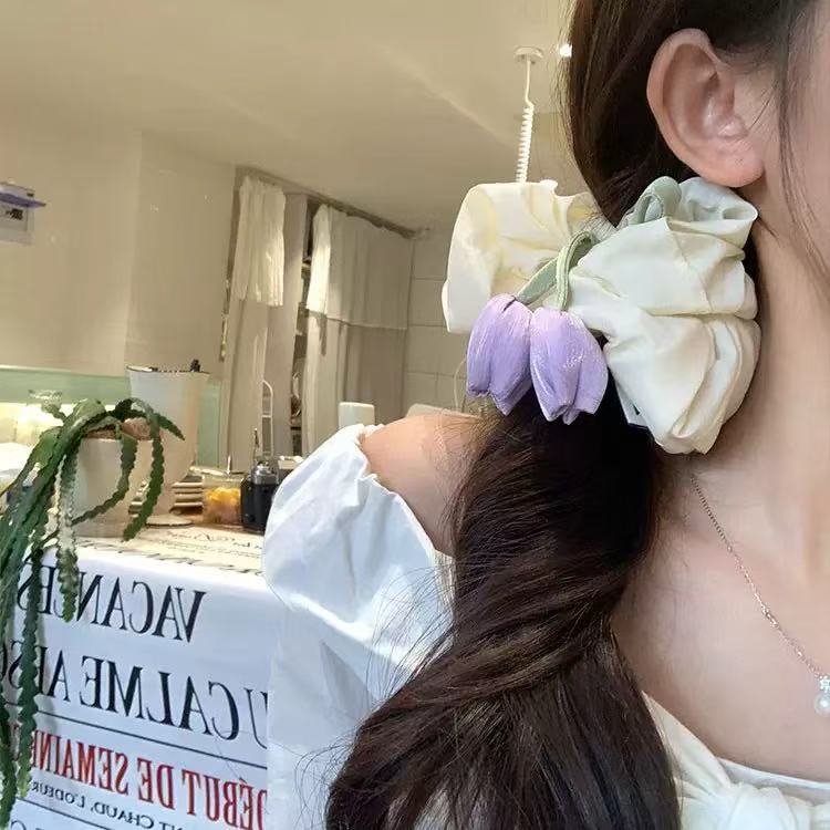 Anillo para el cabello con forma de flor de tulipán de primavera coreana, cinta para el cabello con forma de intestino grueso, súper hada, dulce, cuerda para el cabello, bola de cola de caballo, cuerda para la cabeza, nuevo estilo