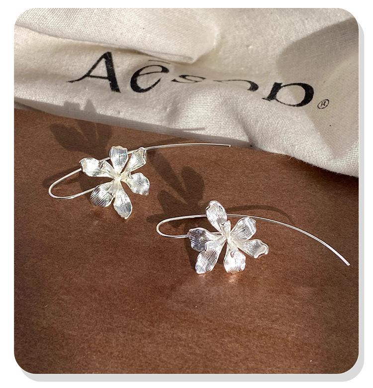 Fire tree and silver flower ear hooks, Empty valley orchid-matte silver, Empty valley orchid-gold, "one step a...
