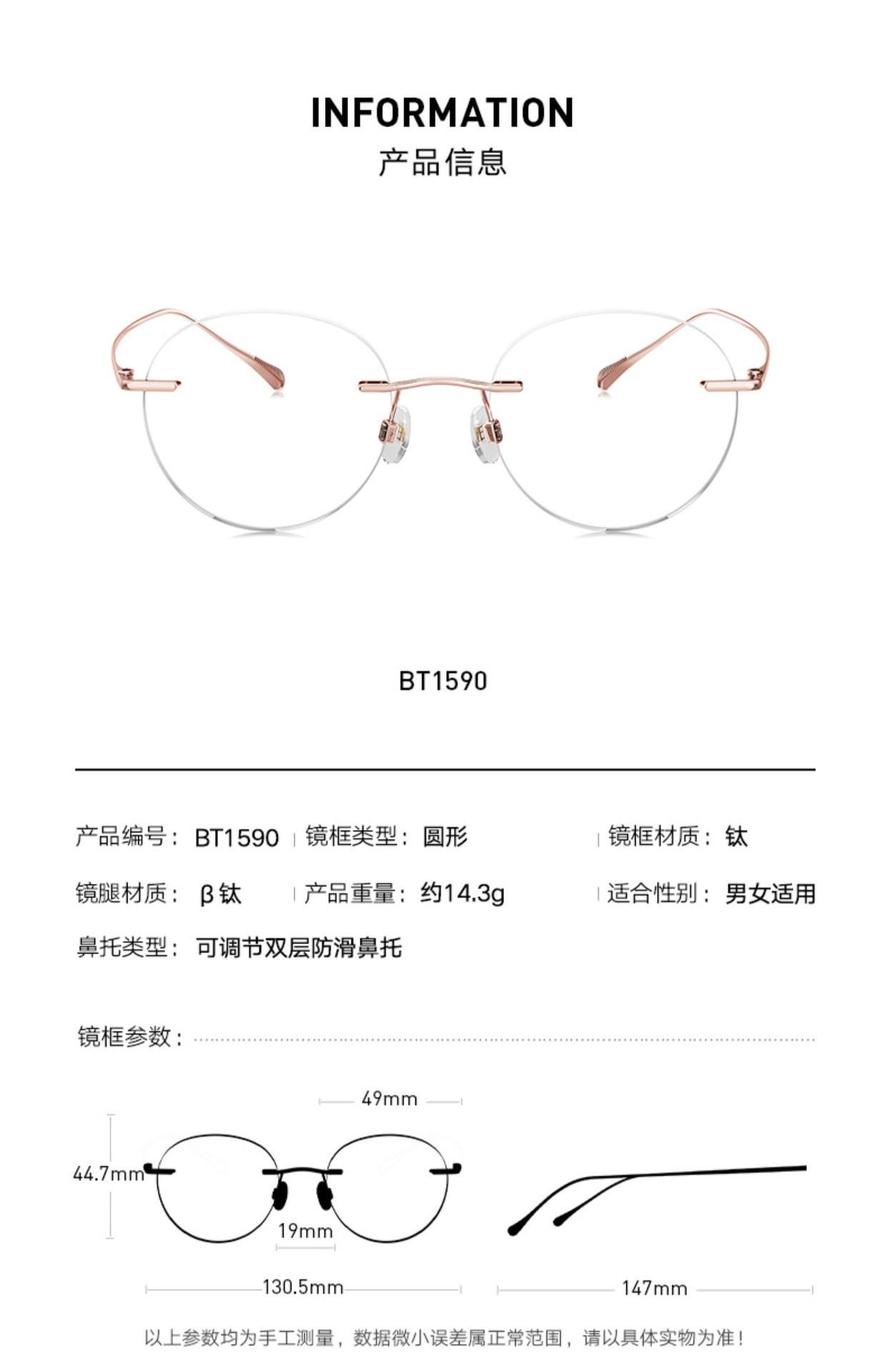 BOLON/Tyrannosaurus anteojos anteojos para miopía montura de anteojos de beta titanio montura de anteojos sin montura unisex BT1590