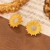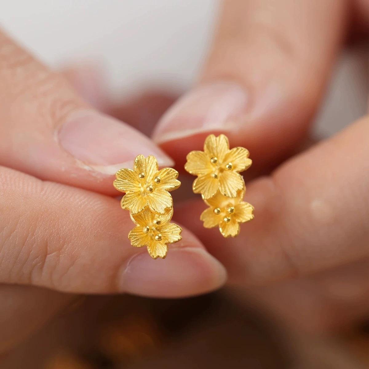 Nicho Ins Elegantes Aretes de Botón de Flor Simple Estilo Francés para Mujer Aretes de Pendientes Tridimensionales de Flor Pequeña de Moda para Novia