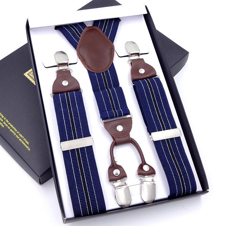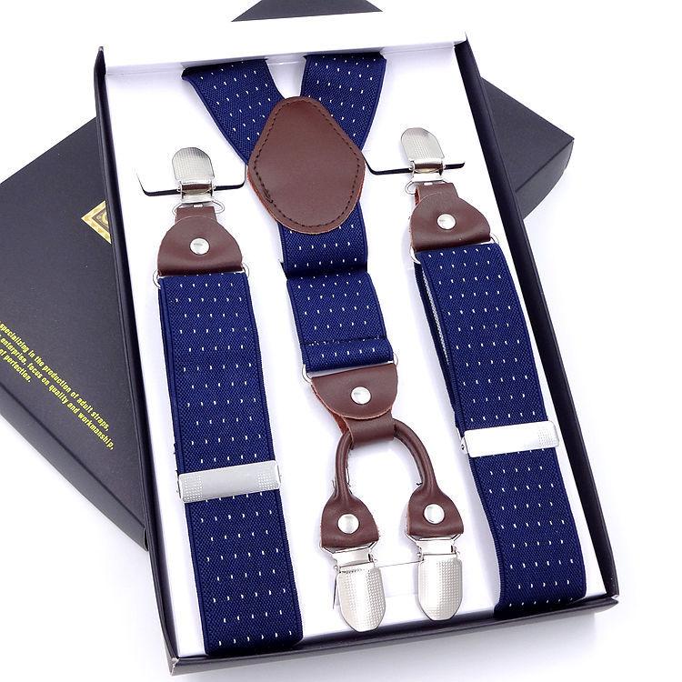 Venta Directa de Fábrica Tirantes Jacquard de 3.5 con 4 Clips para Hombre 3.5*110m Tirantes Elásticos de Cinta Estampada de Cuatro Clips