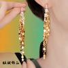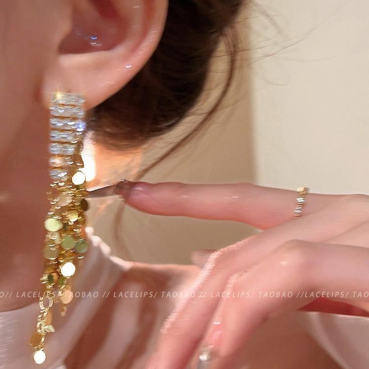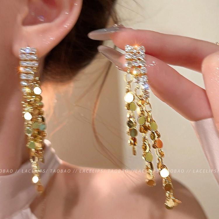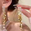 Aretes Largos con Borla de Lentejuelas Doradas y Zircón para Mujer 2025 Nuevo Estilo Caliente Lujo Accesible Aretes Elegantes Aretes Exagerados