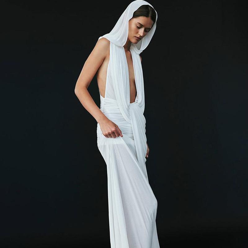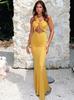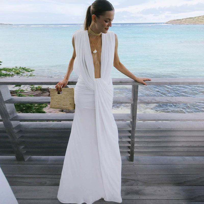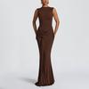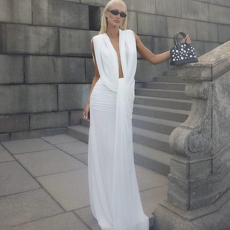 Estilo Europeo y Americano Transfronterizo 2025 Verano Nuevo Moda Femenina Sexy Elegante Vestido Elegante Ajustado al Cuerpo de Color Sólido para Mujer