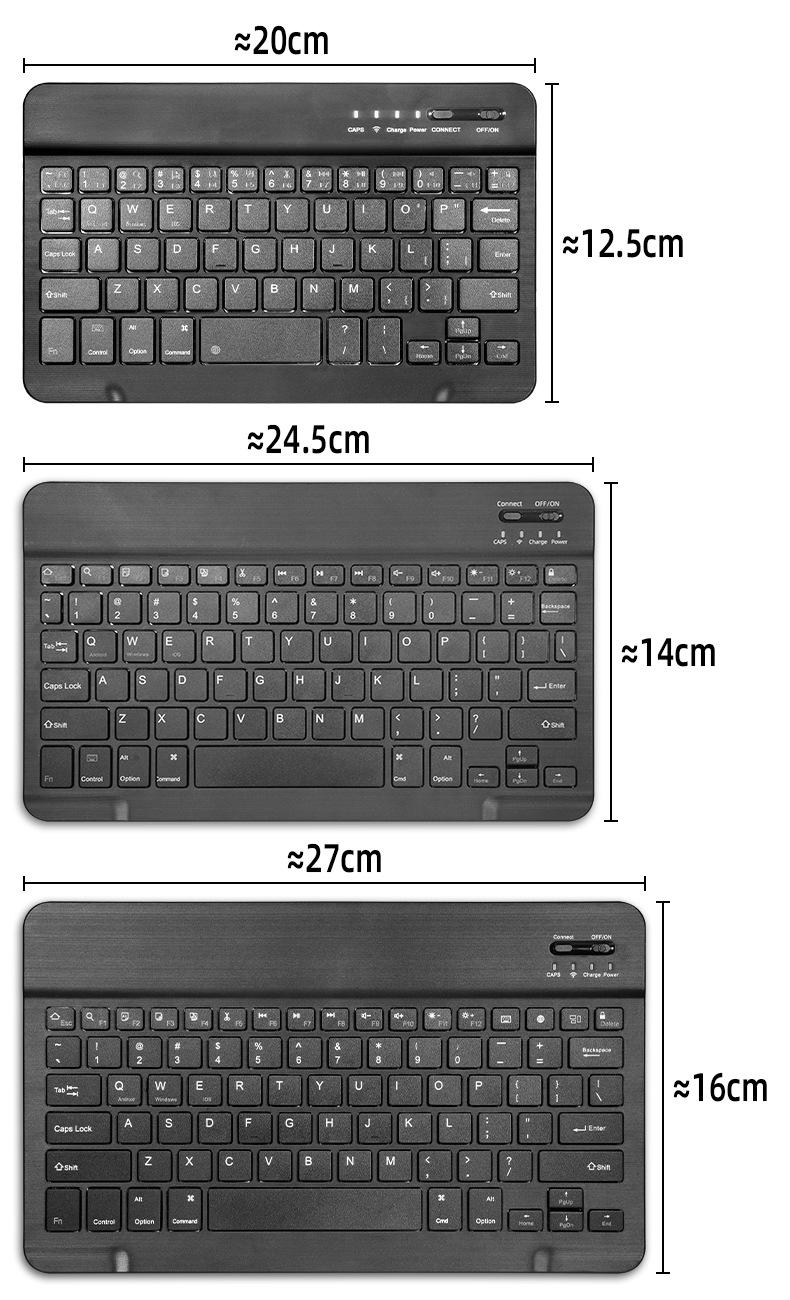 Los siguientes son los tamaños de teclados pequeños, medianos y grandes.