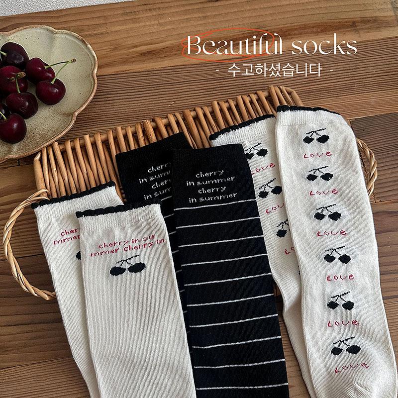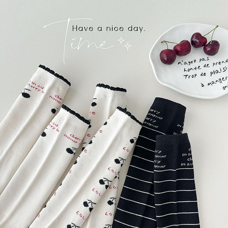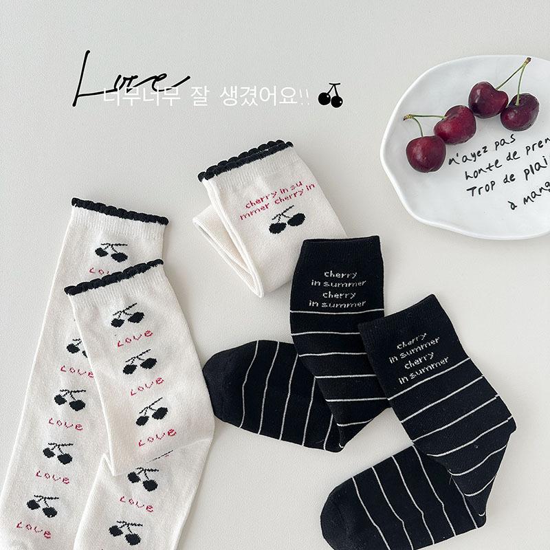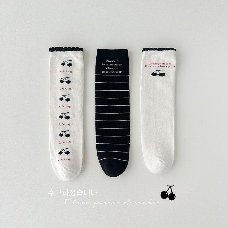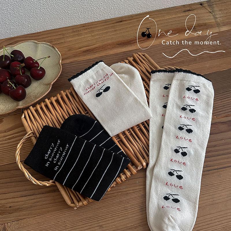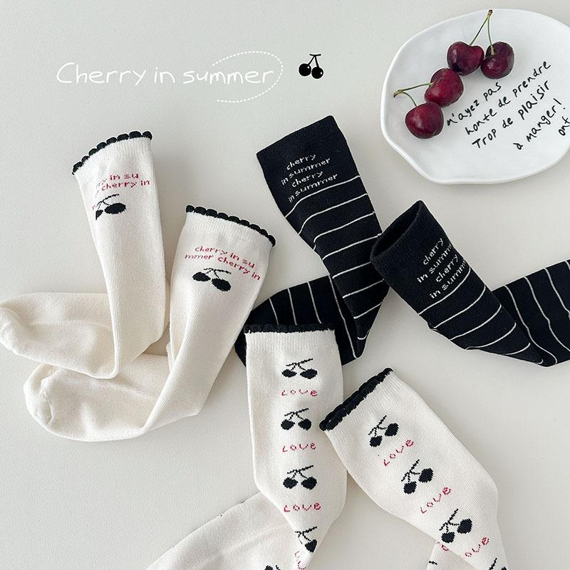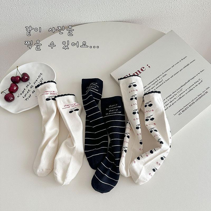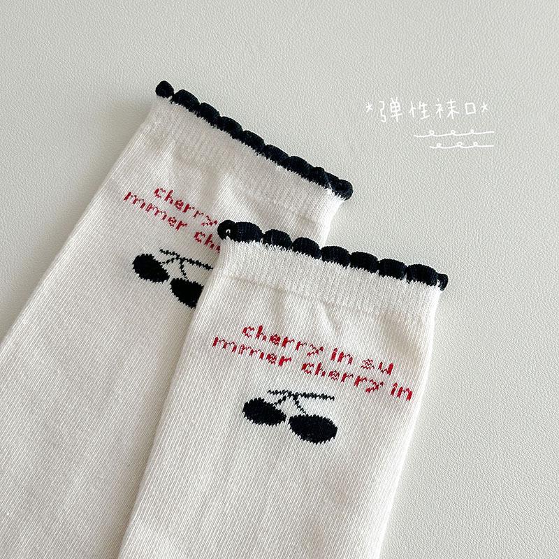 Calcetines de Media Caña para Niñas Otoño/Invierno 2025 Estilo Coreano Calcetines Flojos Cereza Letra Calcetines para Niños Calcetines de Algodón para Bebé para Niñas