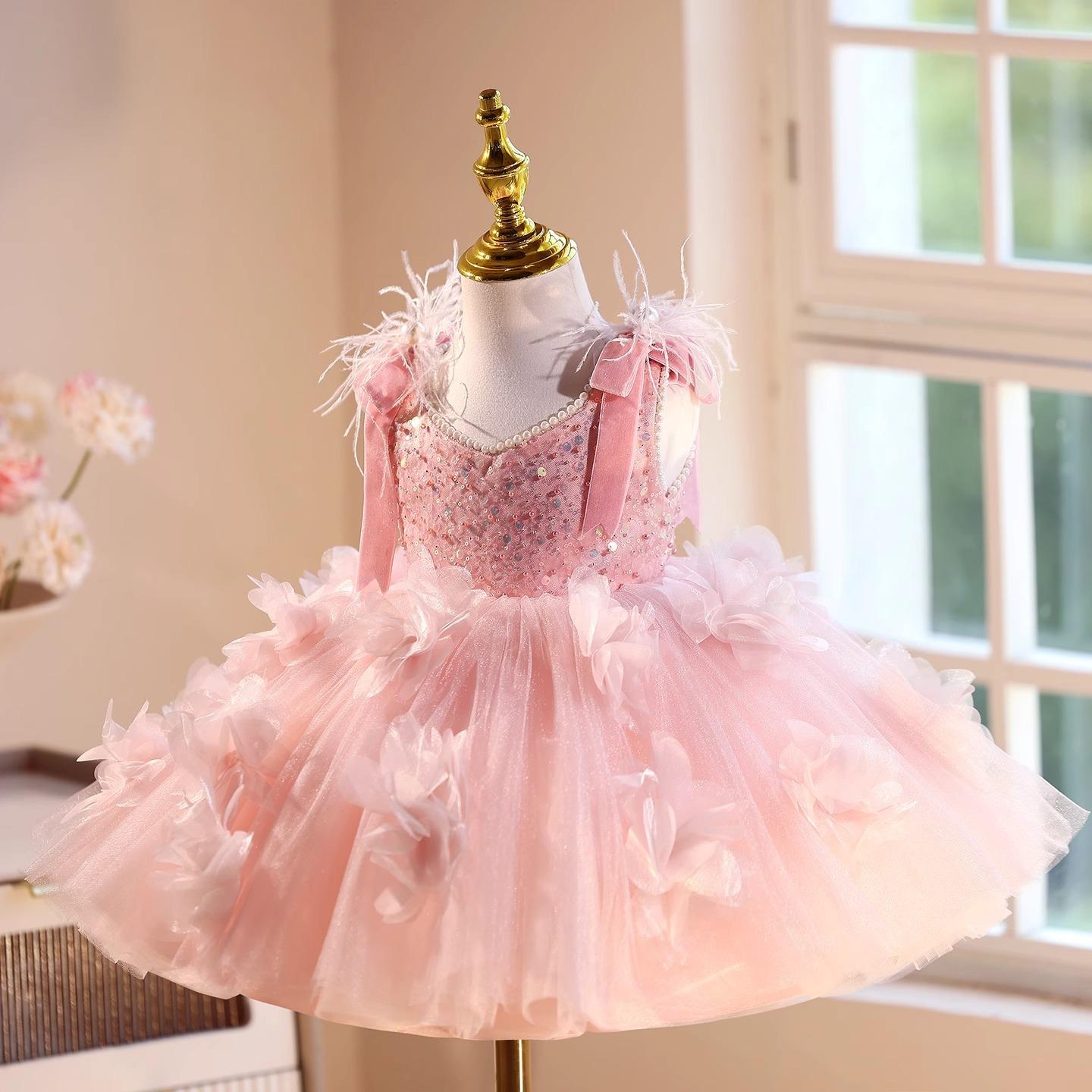 Vestido para Niñas 2025 Nuevo Rosa Vestido de Gala Pomposo para Actuación de Piano de Niñas Anfitriona Vestido de Princesa para Niñita