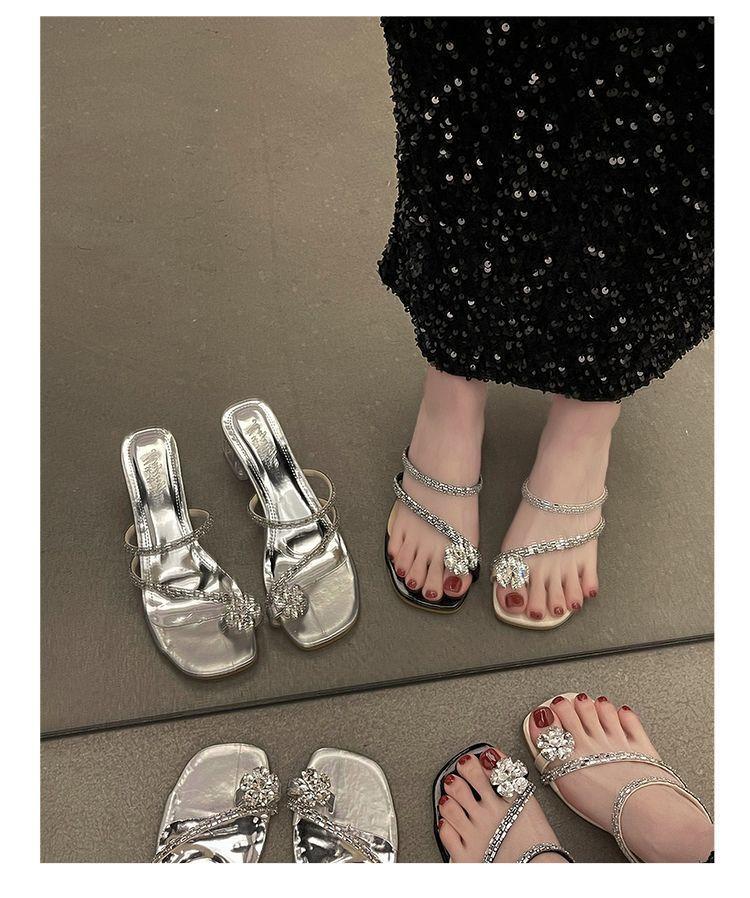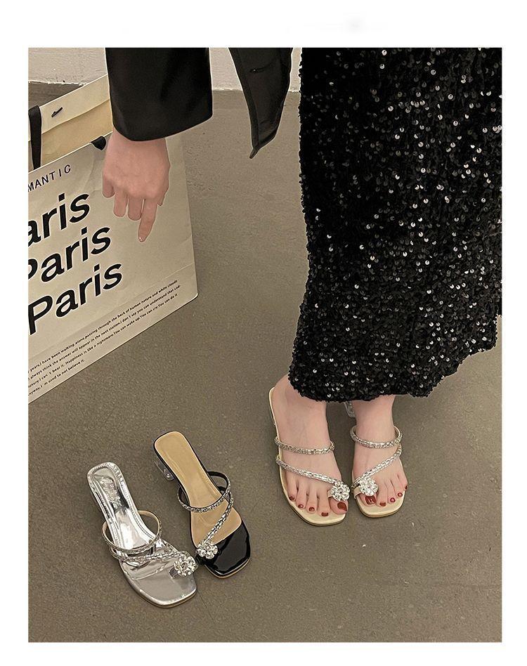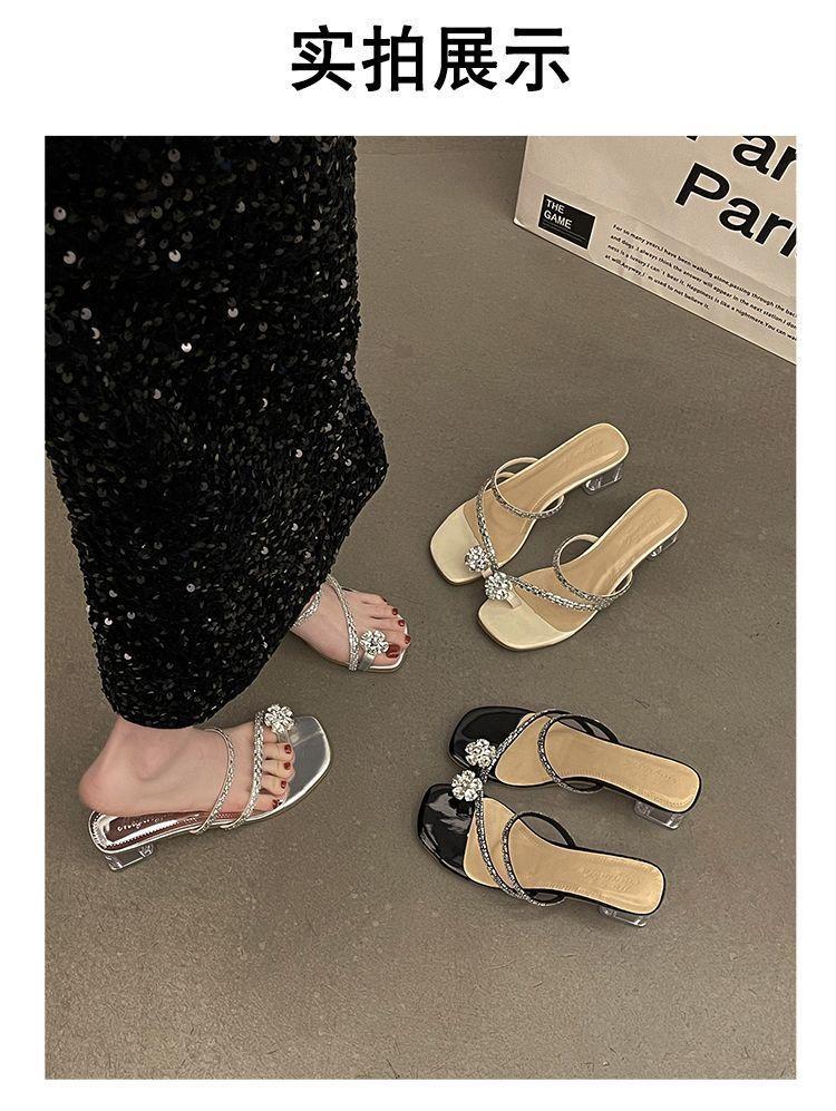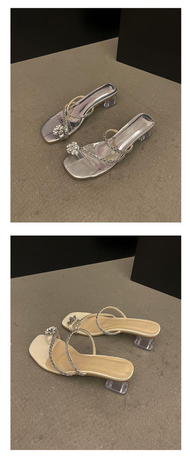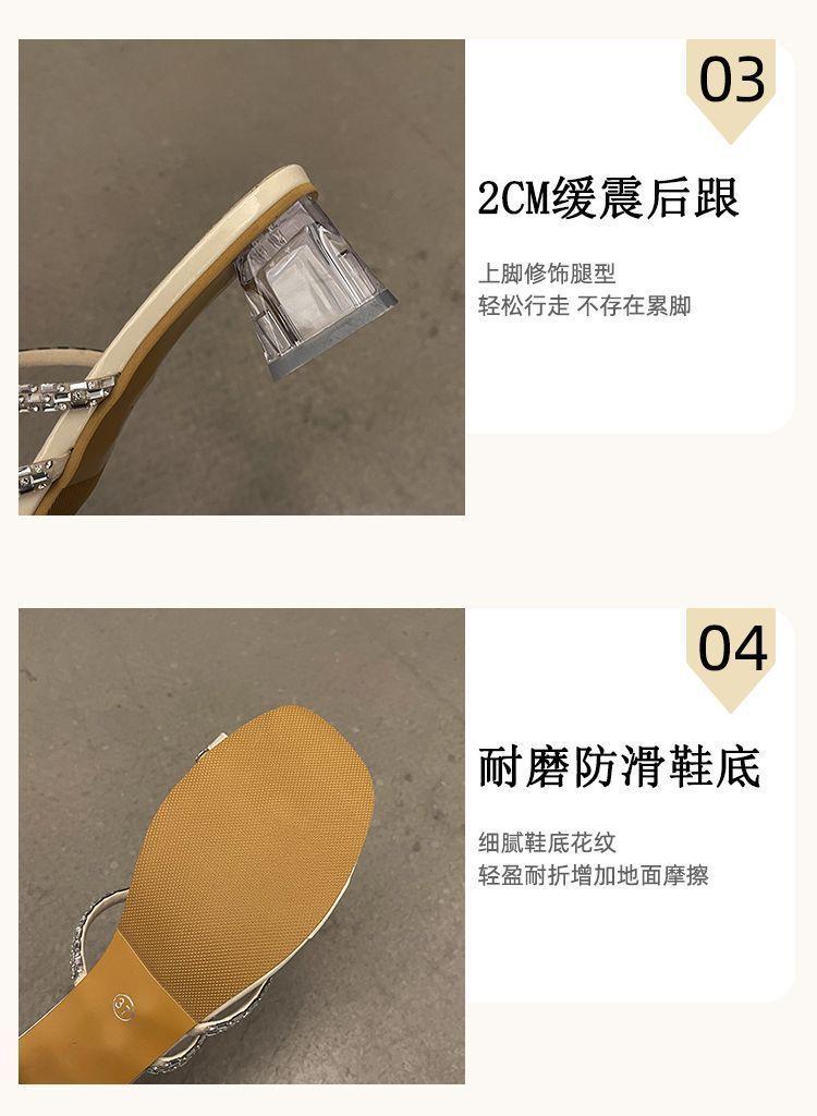 Sandalias de Pedrería Huevo de Paloma Tacón Grueso Sandalias Romanas 2025 Verano Nuevo Estilo Chanclas Versátiles Francesas para Mujer para Usar en el Exterior