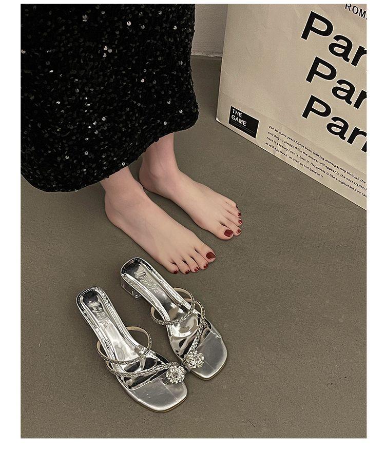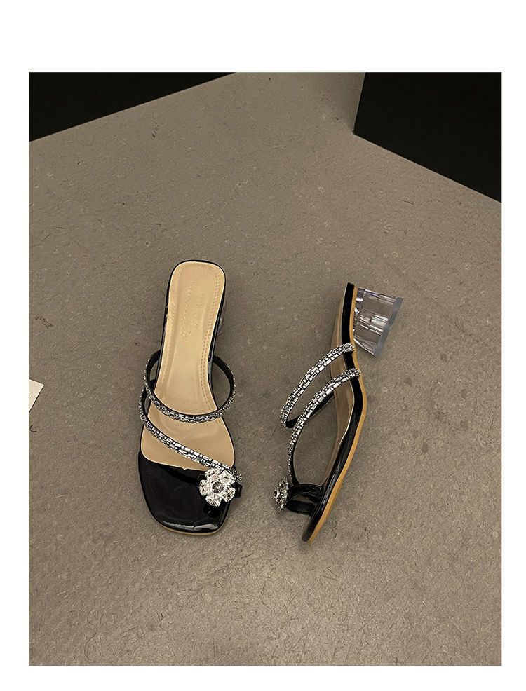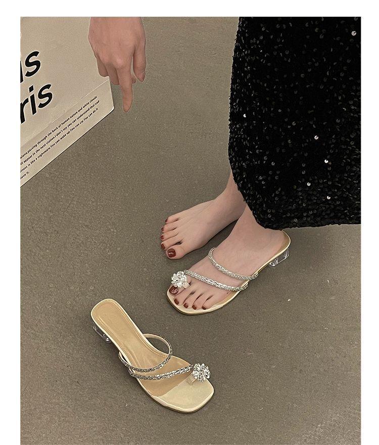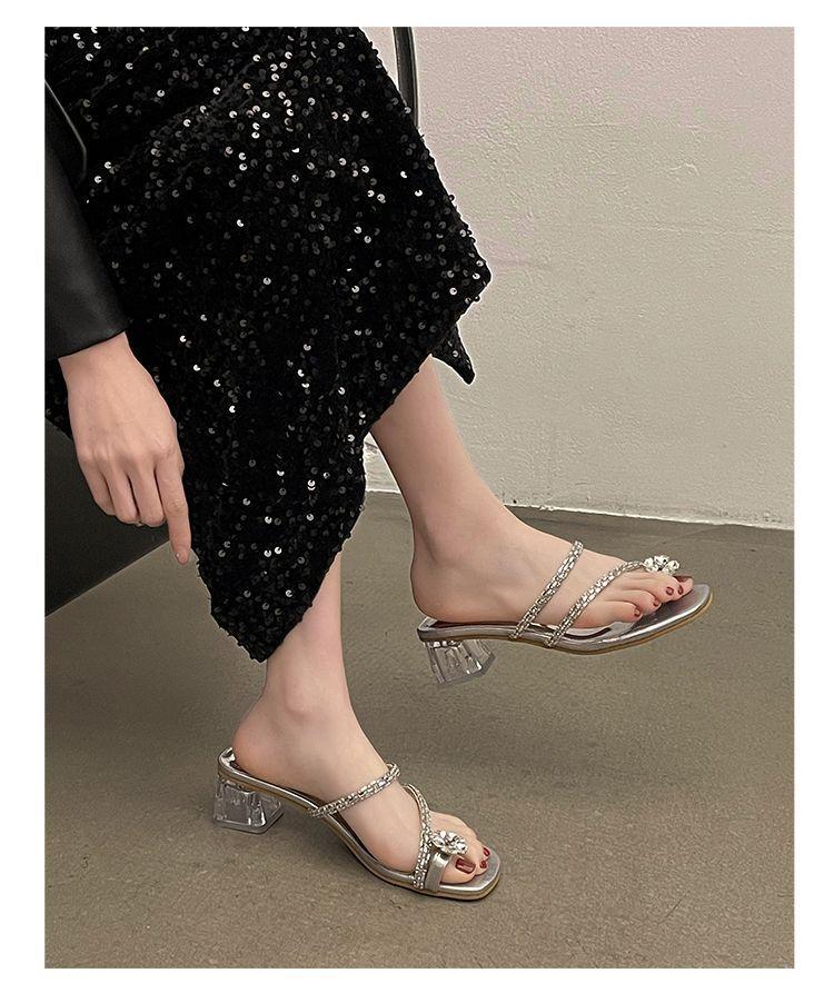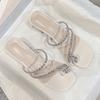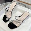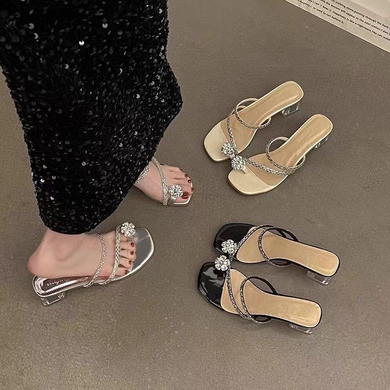 Sandalias de Pedrería Huevo de Paloma Tacón Grueso Sandalias Romanas 2025 Verano Nuevo Estilo Chanclas Versátiles Francesas para Mujer para Usar en el Exterior