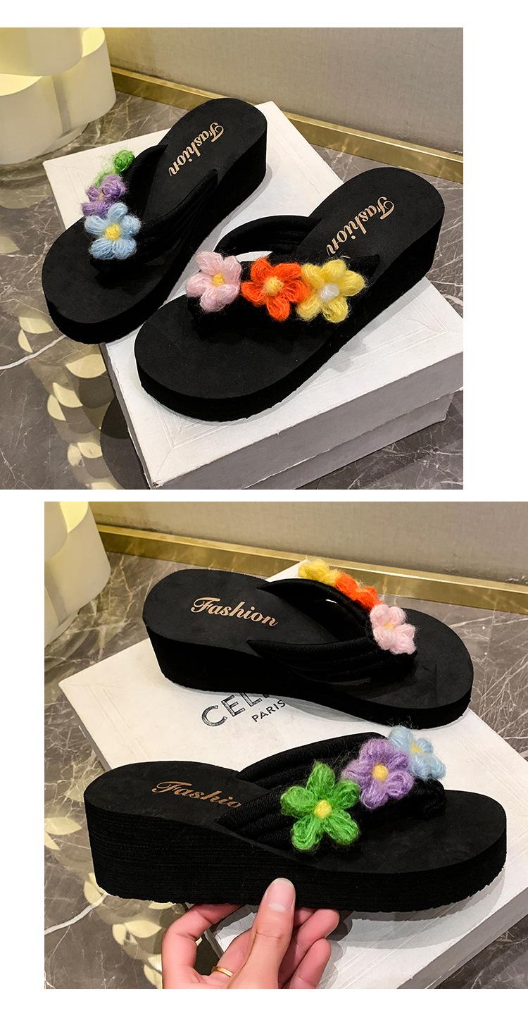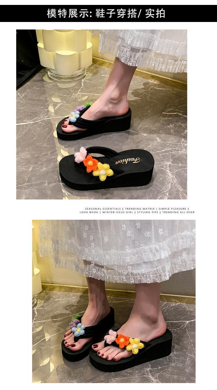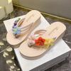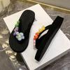 Sandalias de Verano 2025 Transfronterizas Nuevas de Flores Arcoíris de Suela Gruesa Tacón Alto Celebridad de Internet Coloridas para Exterior Zapatos de Mujer Casual Playa