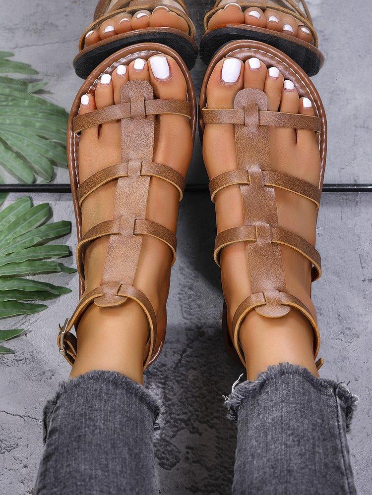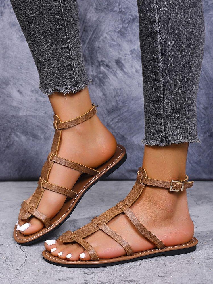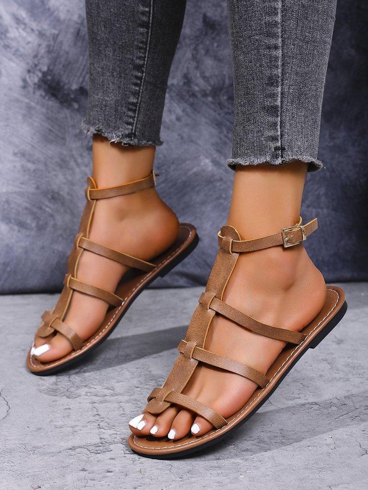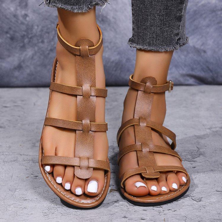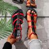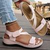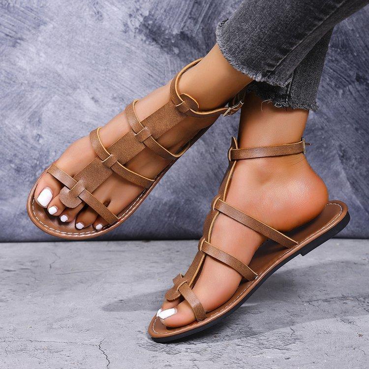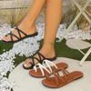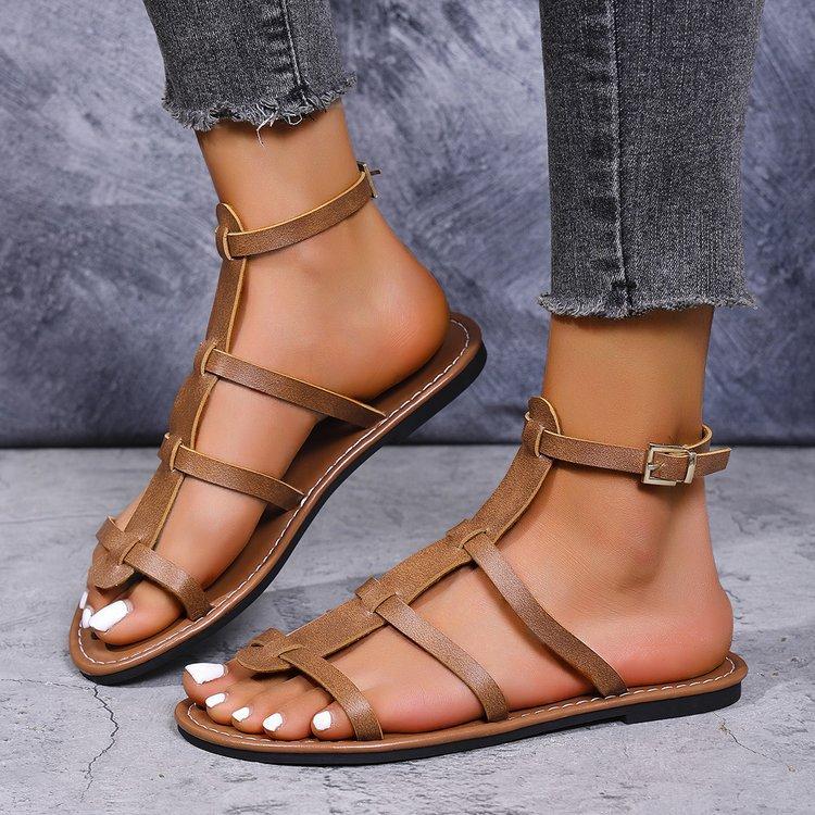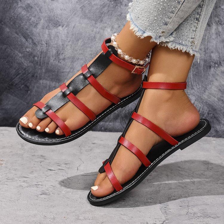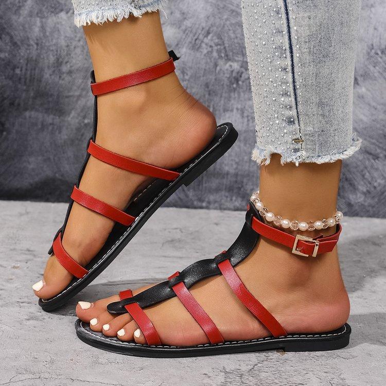 Nuevas Sandalias Tejidas de Color Block Plano de Talla Grande Transfronterizas para Mujer, Hebilla de Comercio Exterior, Ligeras, para Playa, Sandalias y Pantuflas, Suministro Wish
