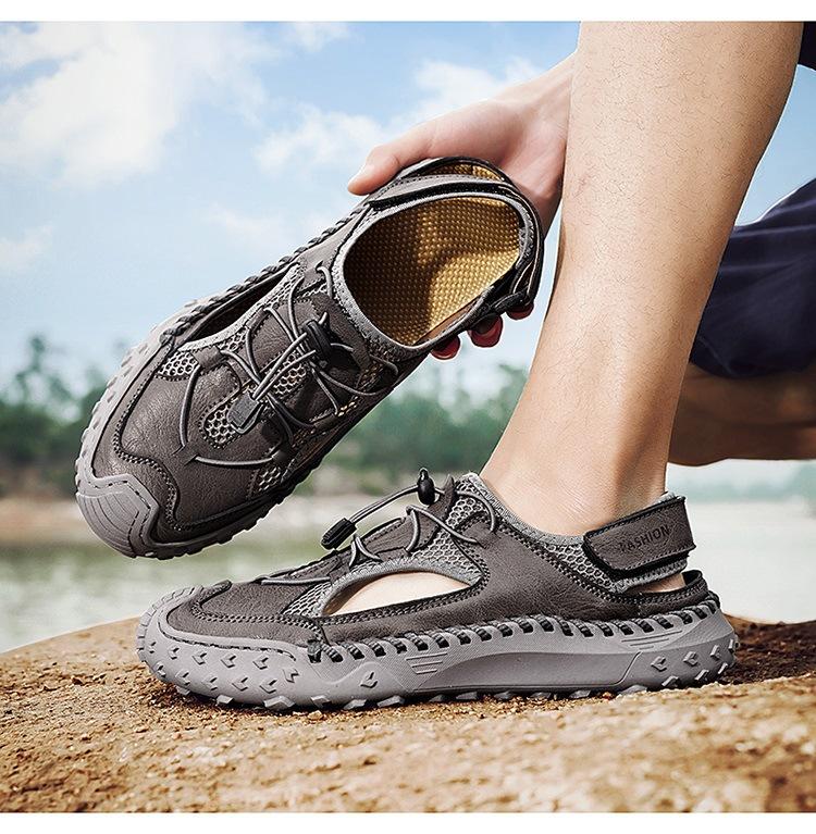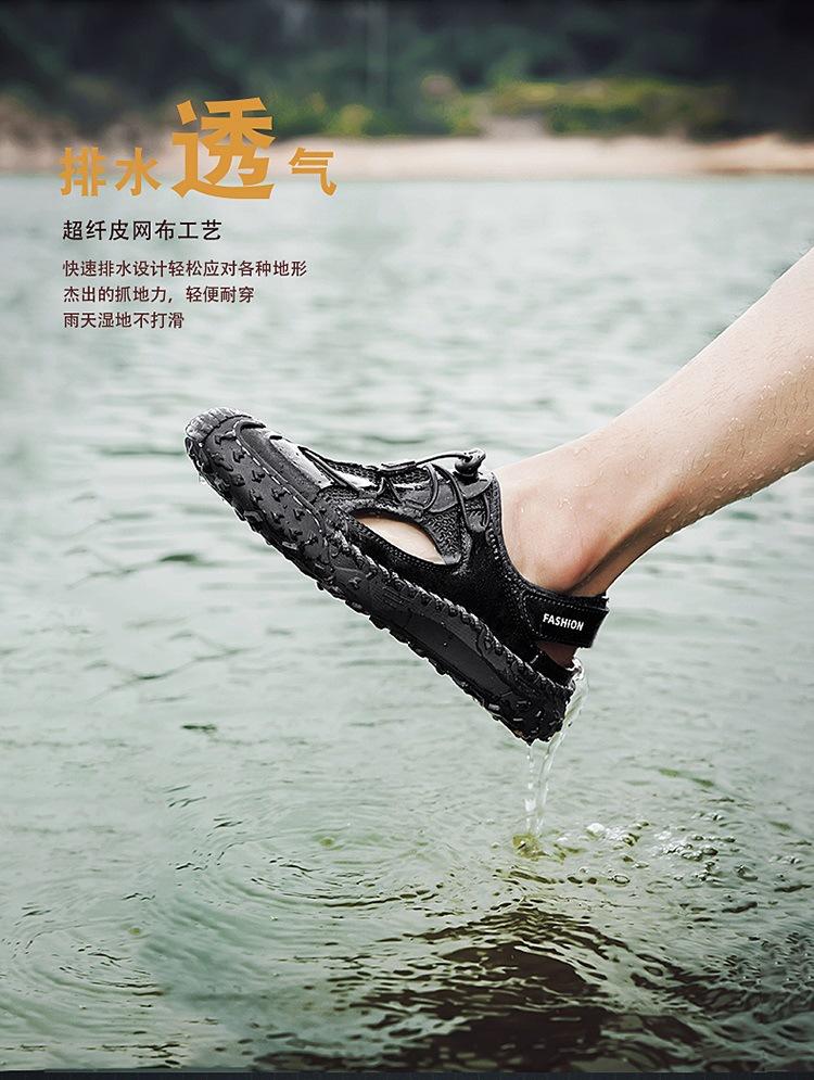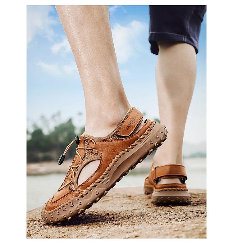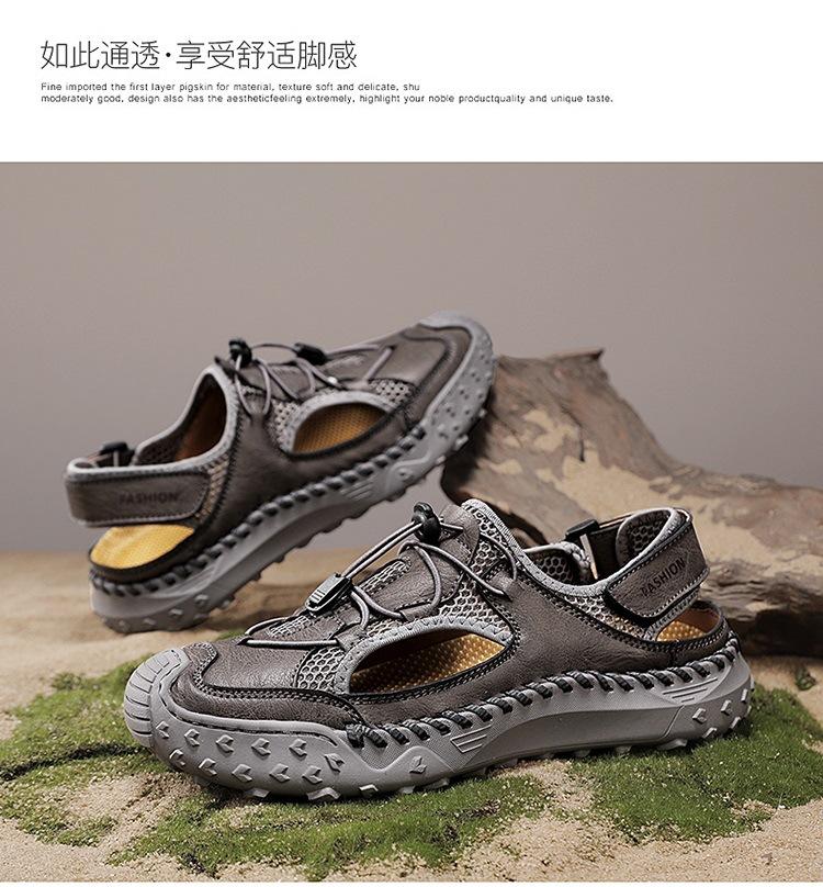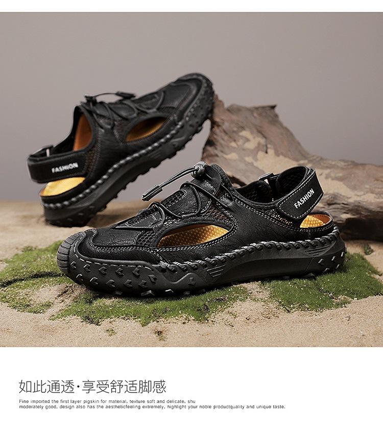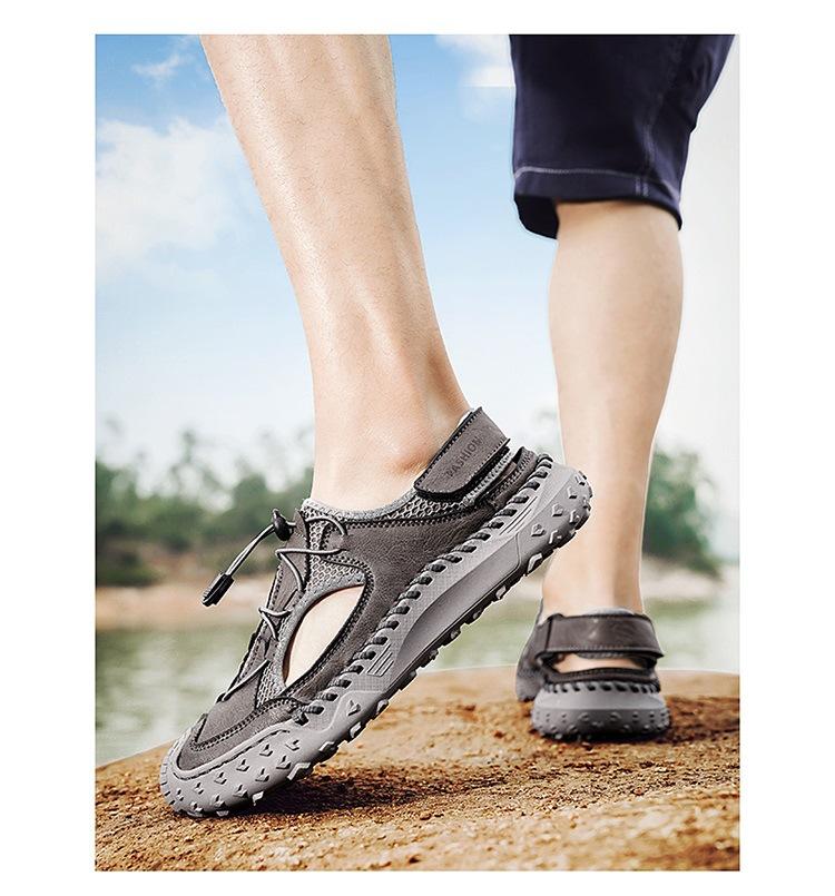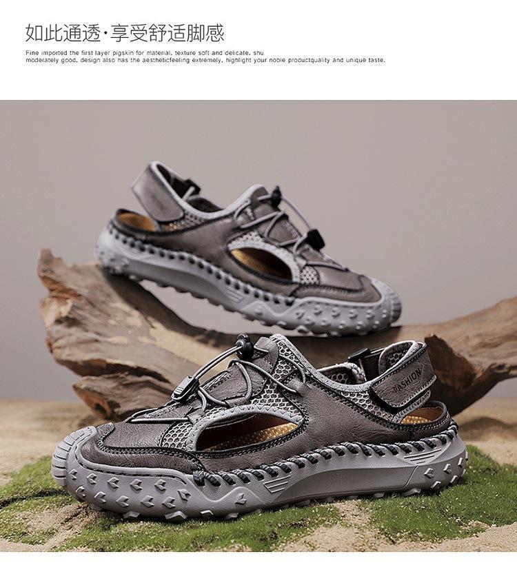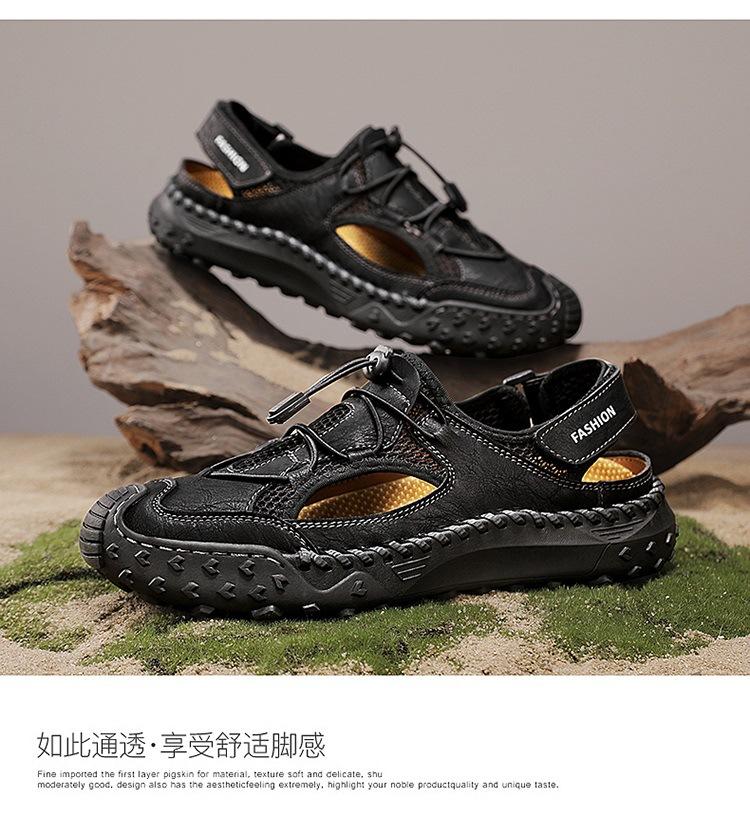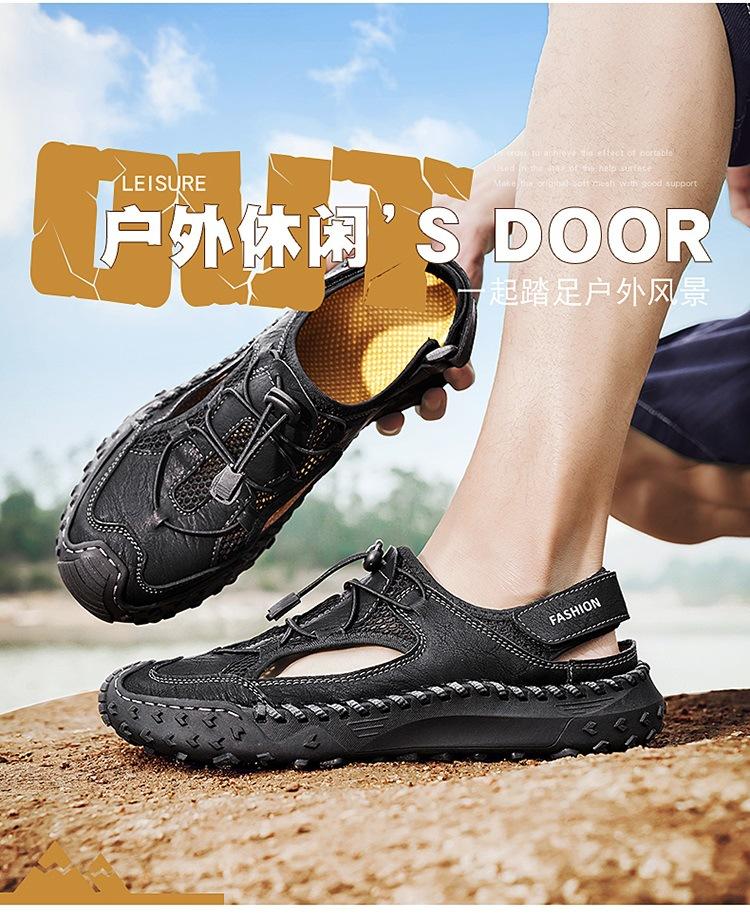 Compra Sandalias de Primavera y Verano Nuevas Ventas Calientes Transfronterizas Talla Grande Zapatos de Playa para Hombre Exterior Cuero Genuino Malla Parte Superior Transpirable Zapatos de Hombre al por mayor en Joom.pro