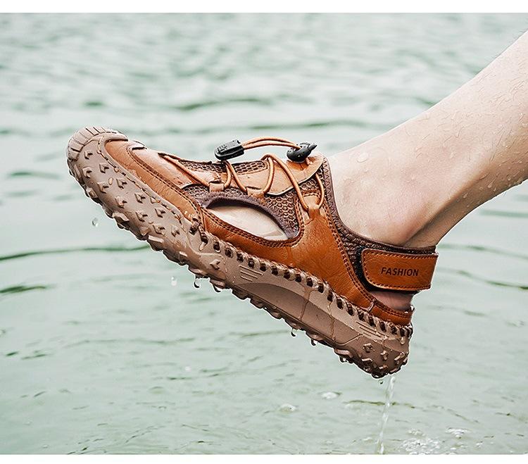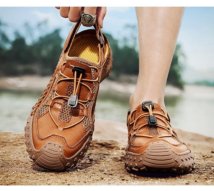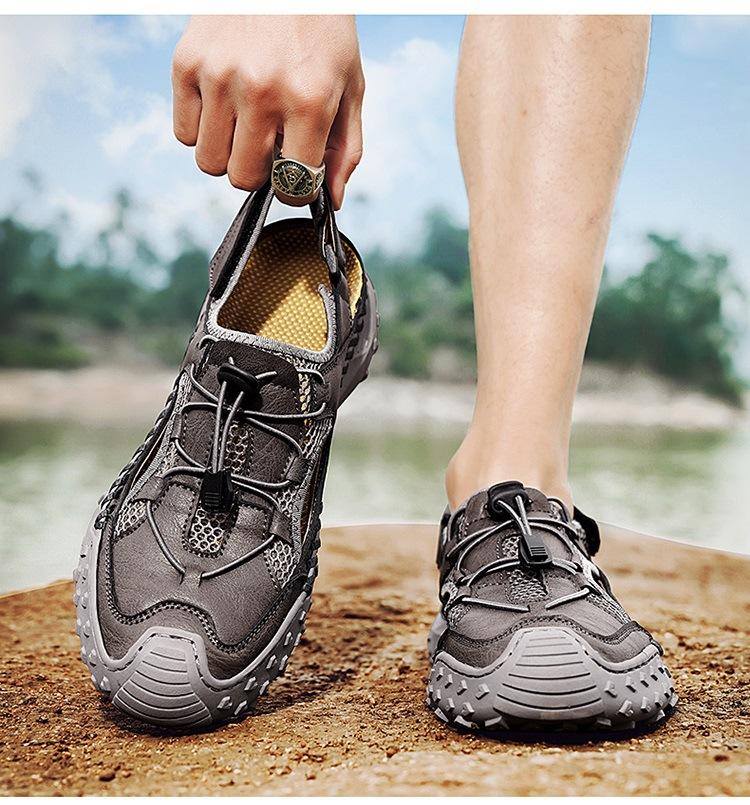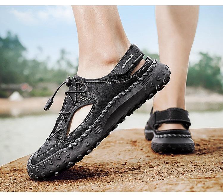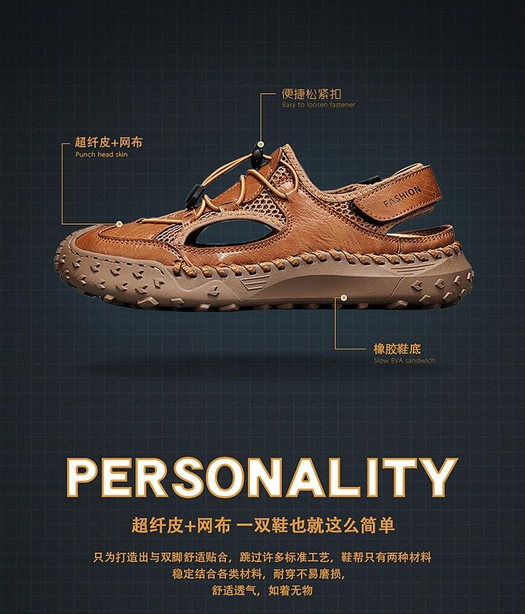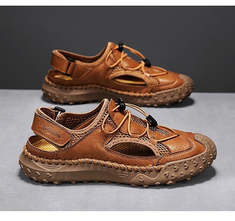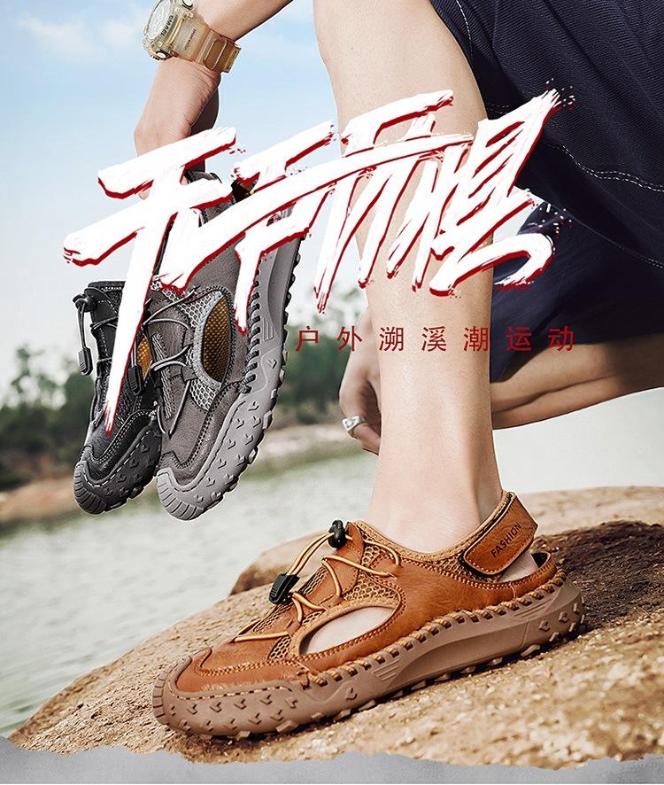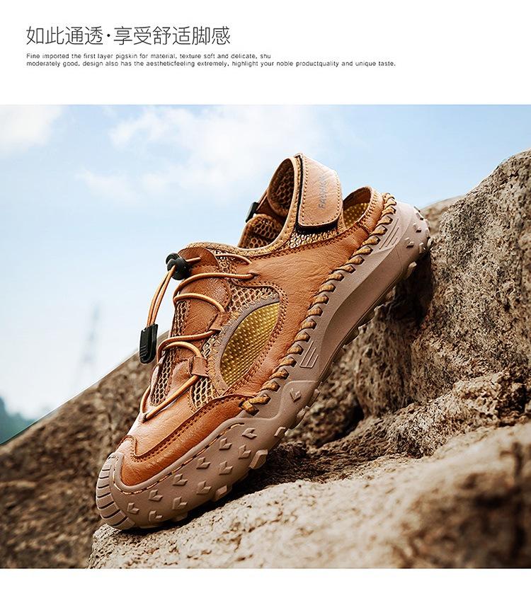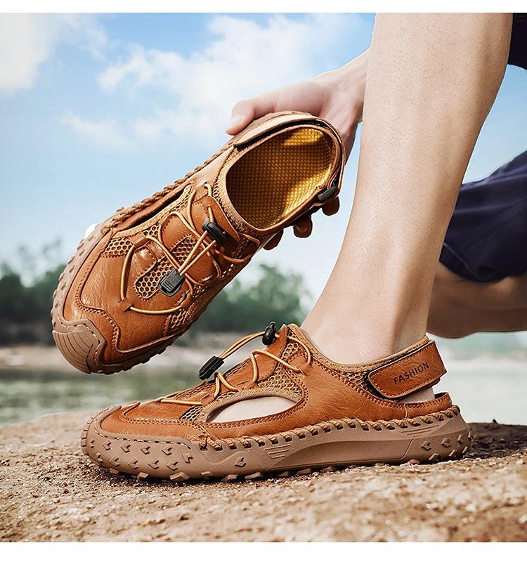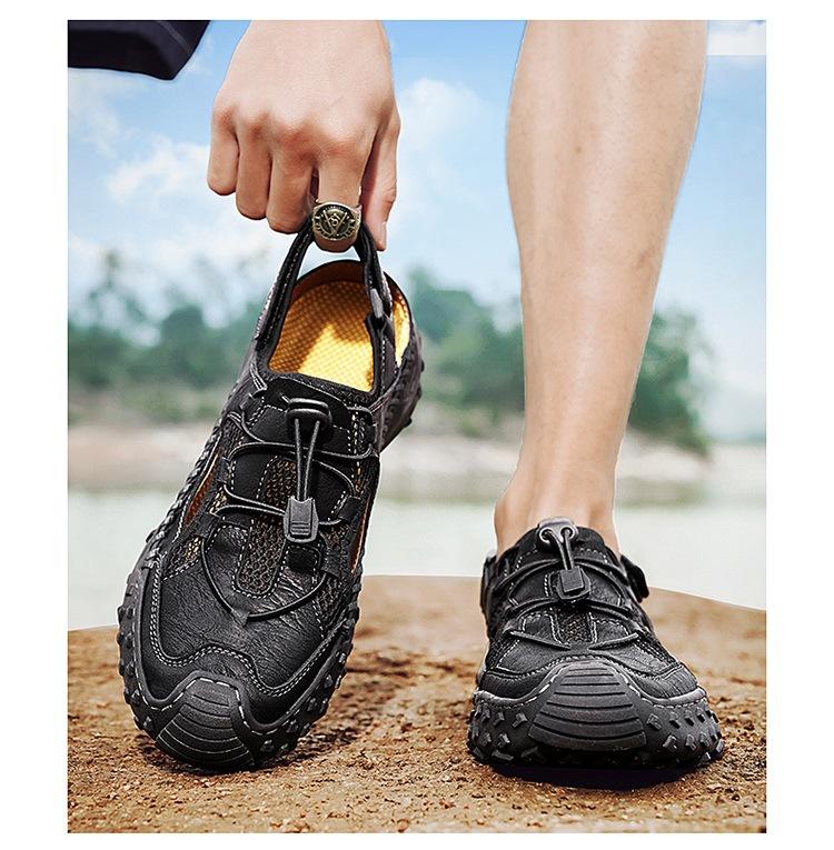 Compra Sandalias de Primavera y Verano Nuevas Ventas Calientes Transfronterizas Talla Grande Zapatos de Playa para Hombre Exterior Cuero Genuino Malla Parte Superior Transpirable Zapatos de Hombre al por mayor en Joom.pro
