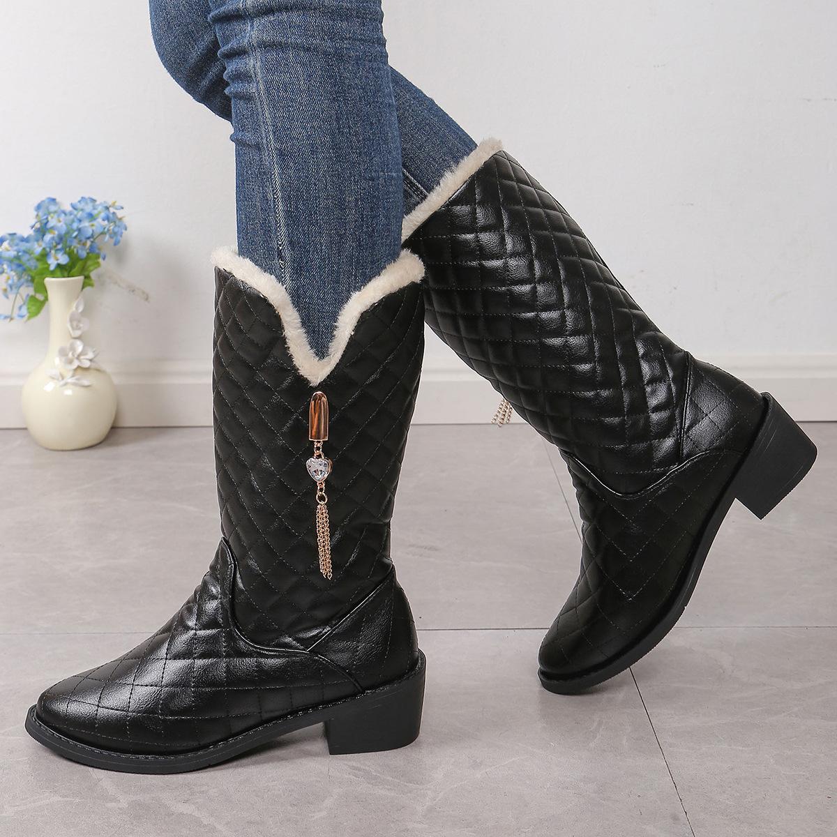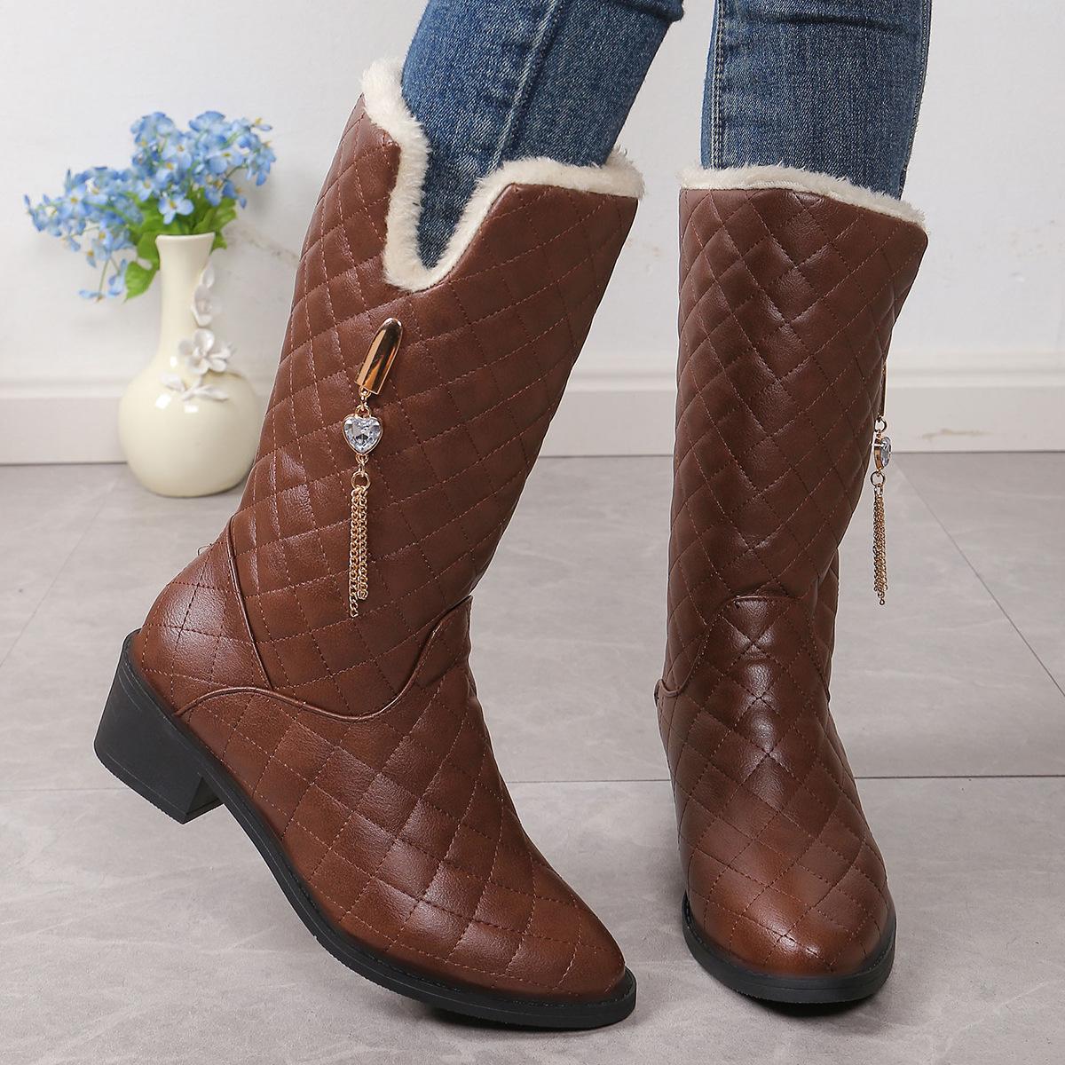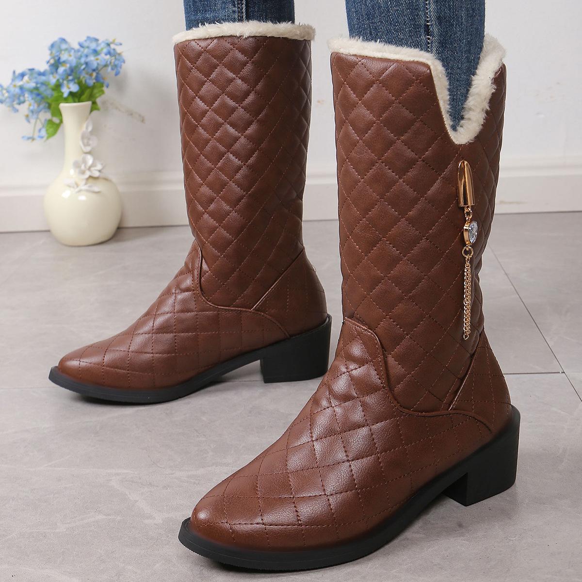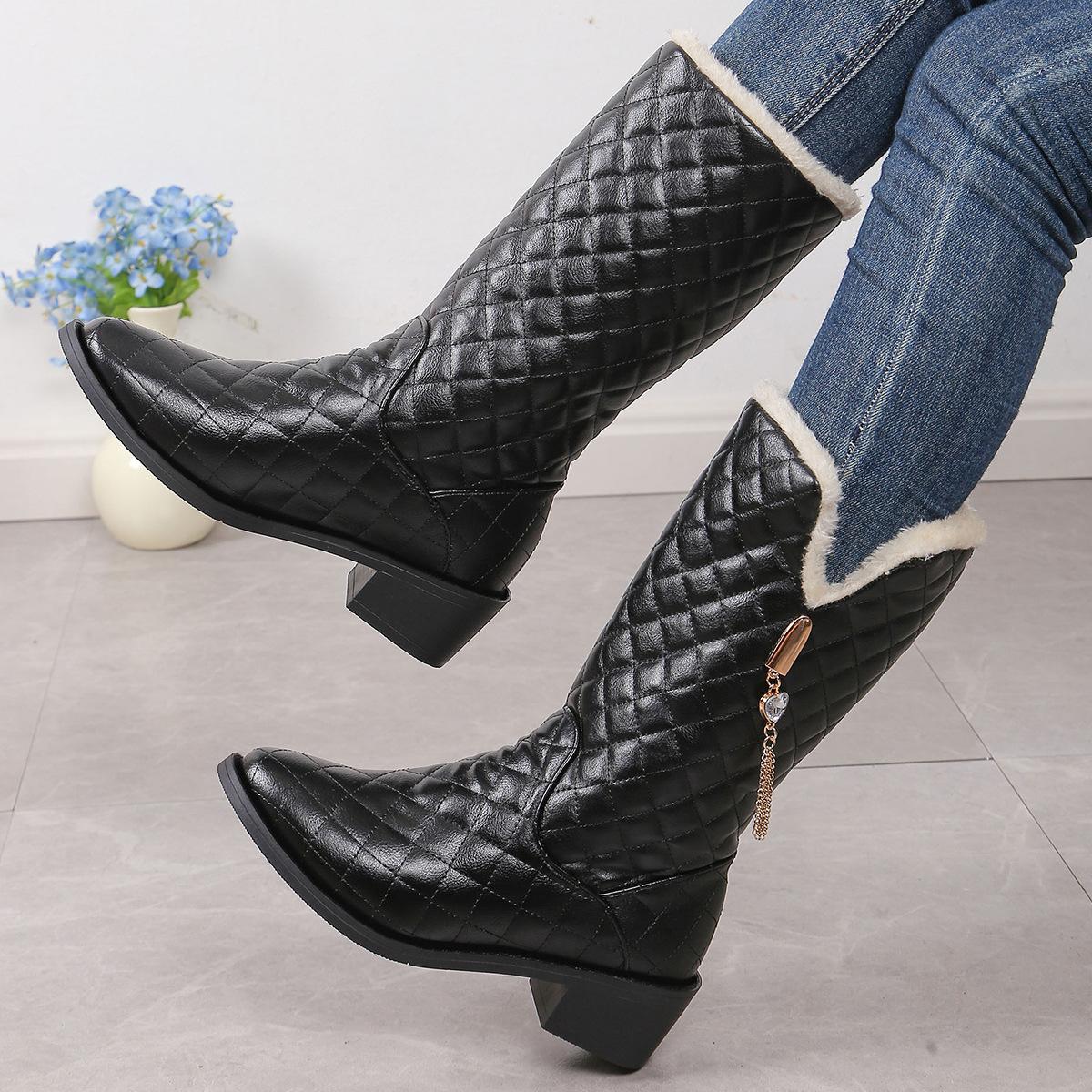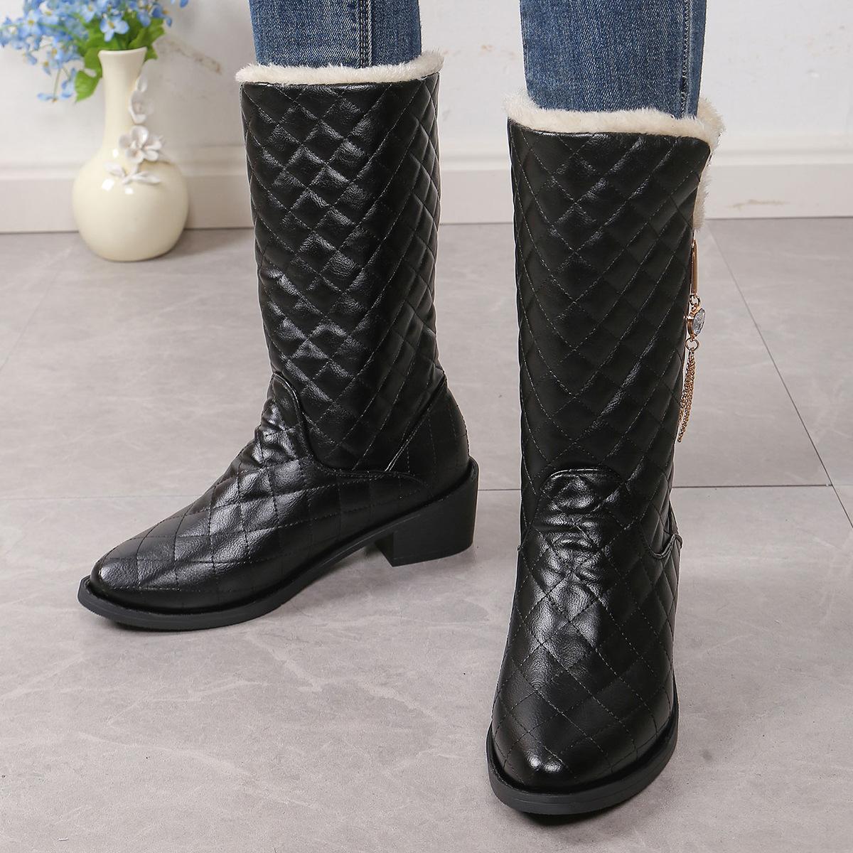 Comercio Exterior Invierno Nuevas Botas de Nieve para Mujer 2025 Nuevo Punta Redonda Tacón Grueso Moda Media Caña Talla Grande Botas de Mujer Botas de Moda