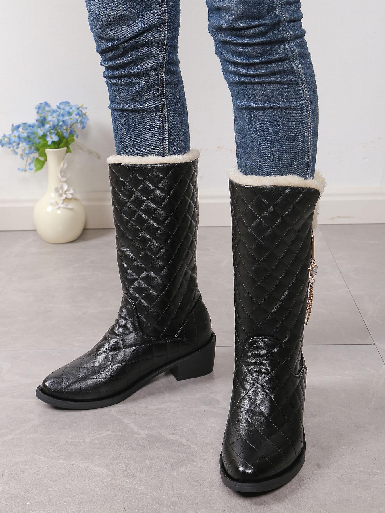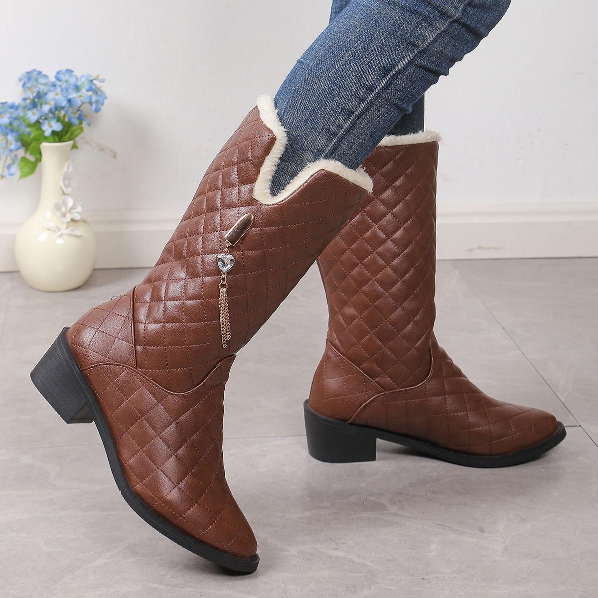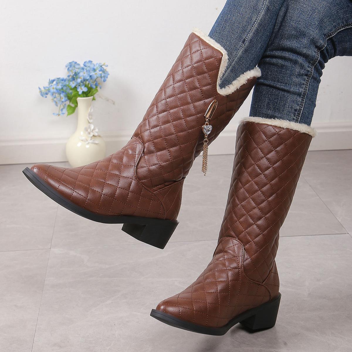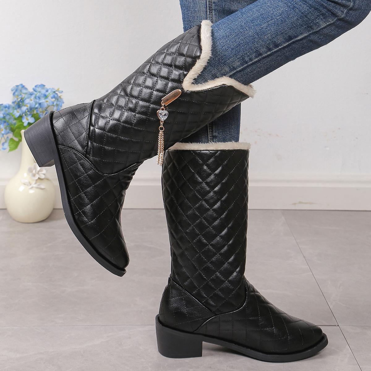 Comercio Exterior Invierno Nuevas Botas de Nieve para Mujer 2025 Nuevo Punta Redonda Tacón Grueso Moda Media Caña Talla Grande Botas de Mujer Botas de Moda