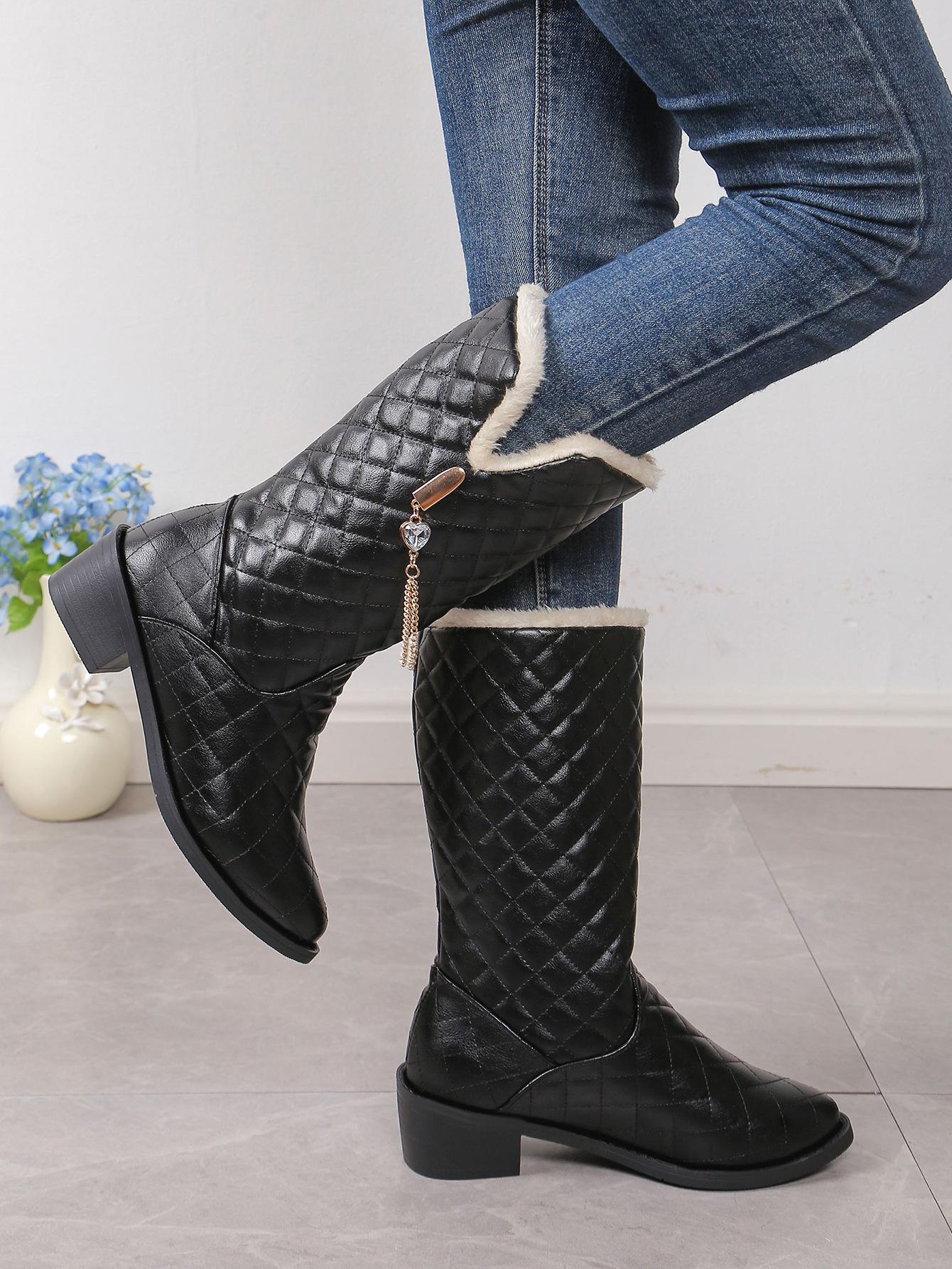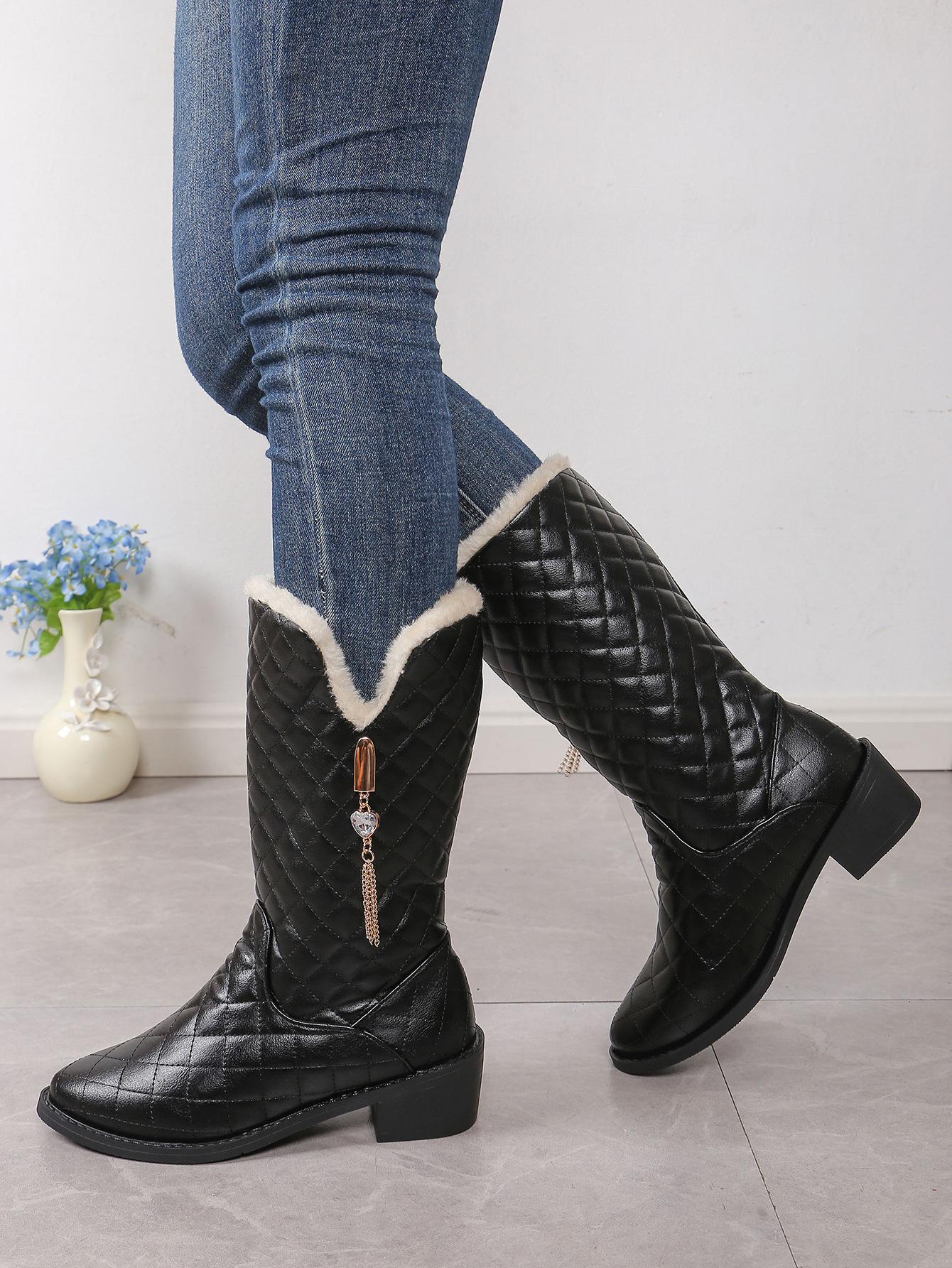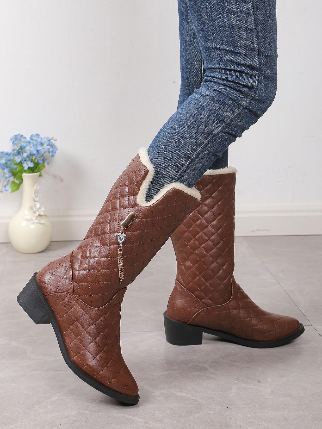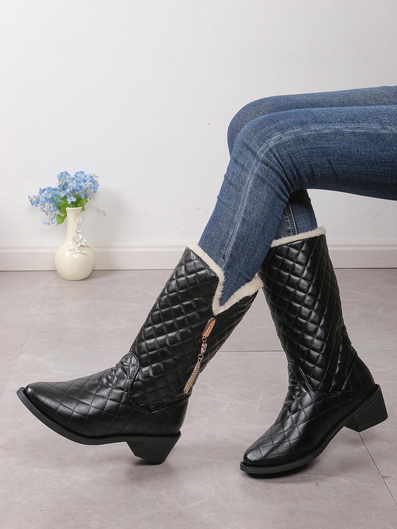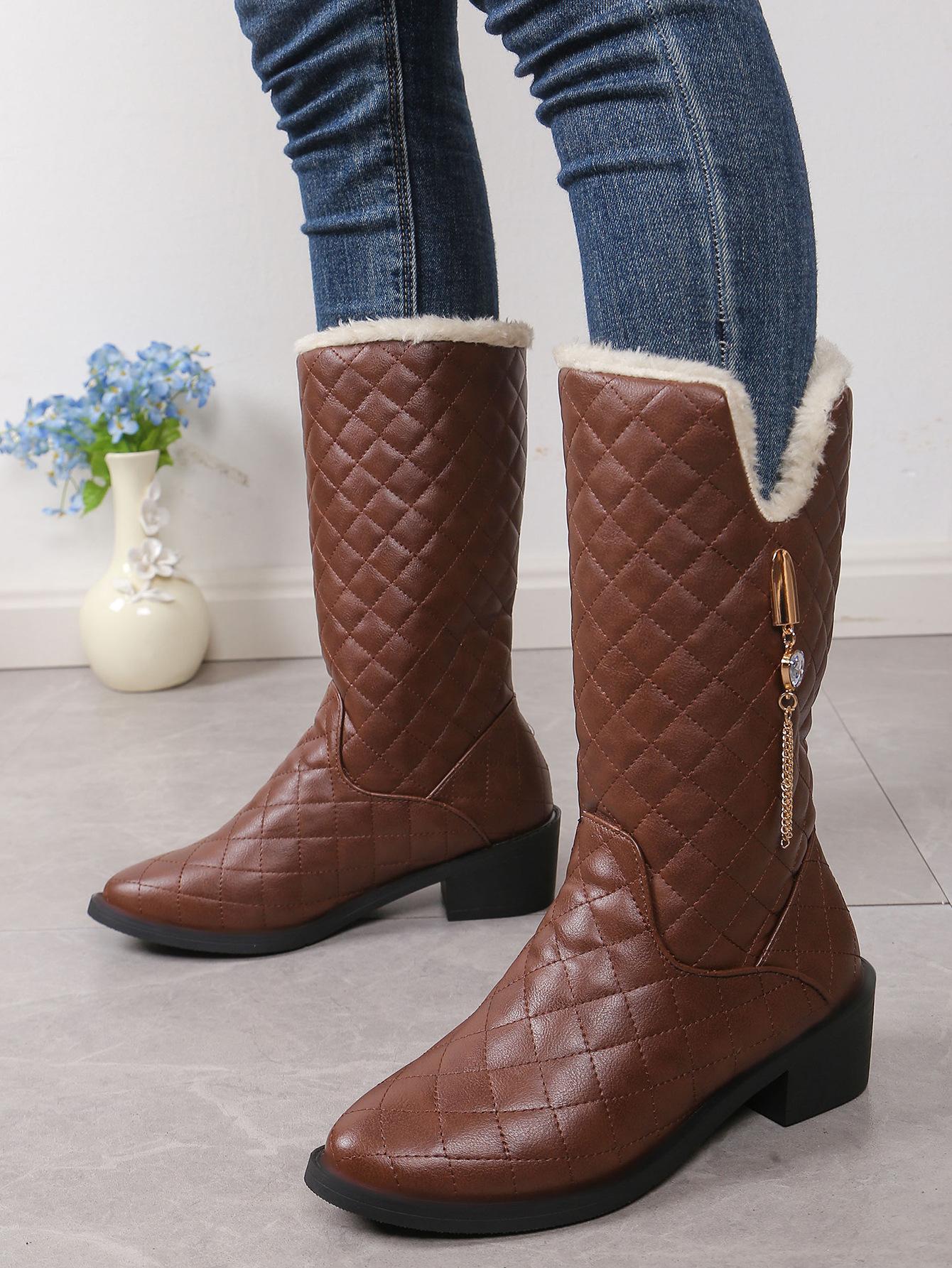Comercio Exterior Invierno Nuevas Botas de Nieve para Mujer 2025 Nuevo Punta Redonda Tacón Grueso Moda Media Caña Talla Grande Botas de Mujer Botas de Moda