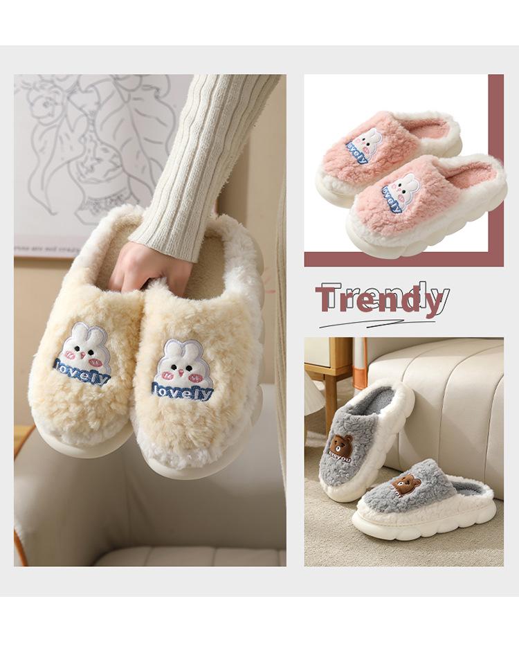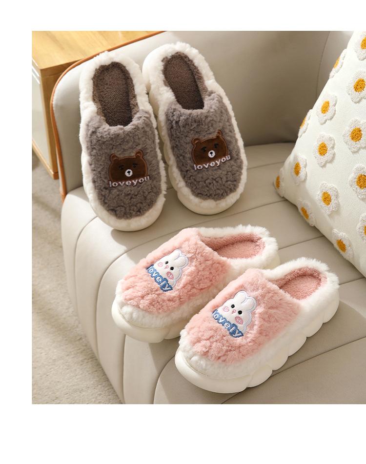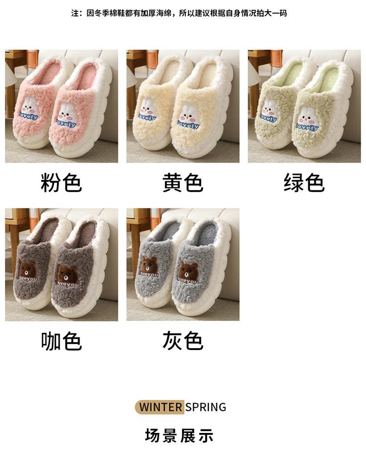 2024 Nuevas Pantuflas de Algodón para Mujer Invierno Interior Hogar y Hogar Dibujos Animados Lindas Suela Gruesa Cálidas Pareja Pantuflas Mao Mao para Hombre