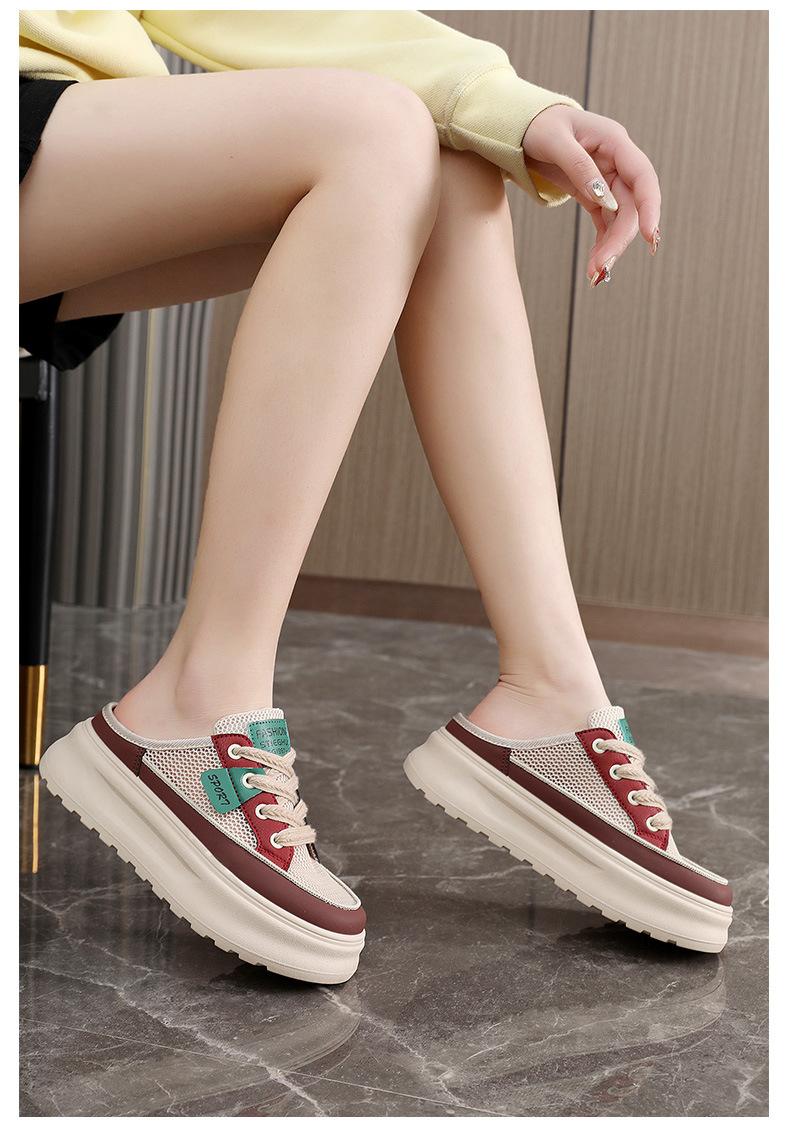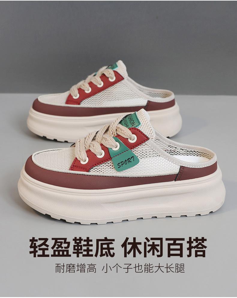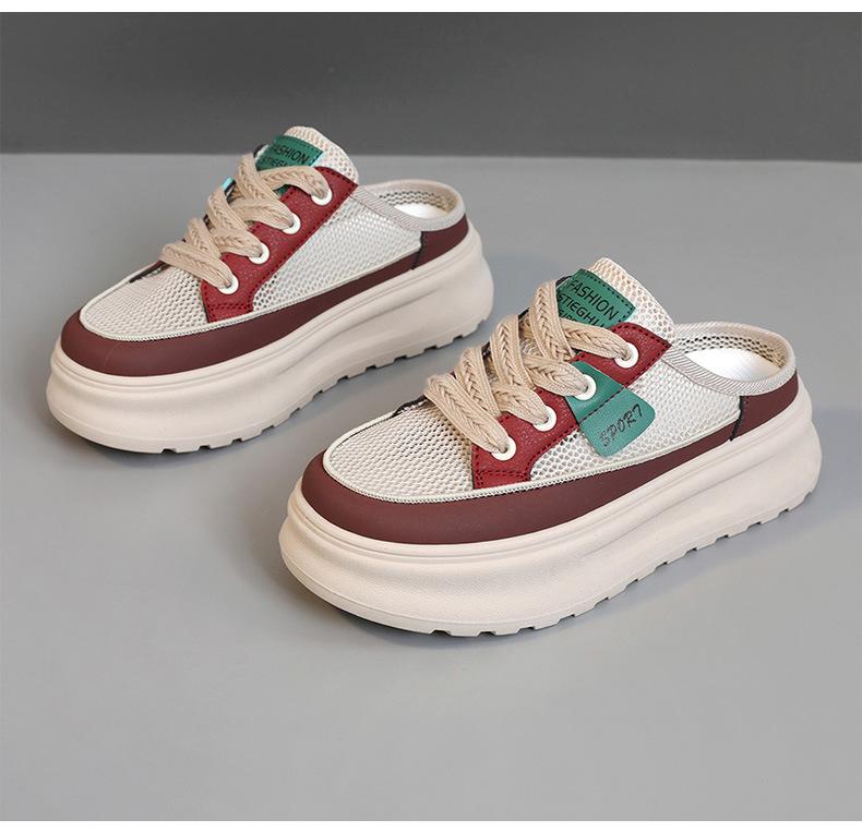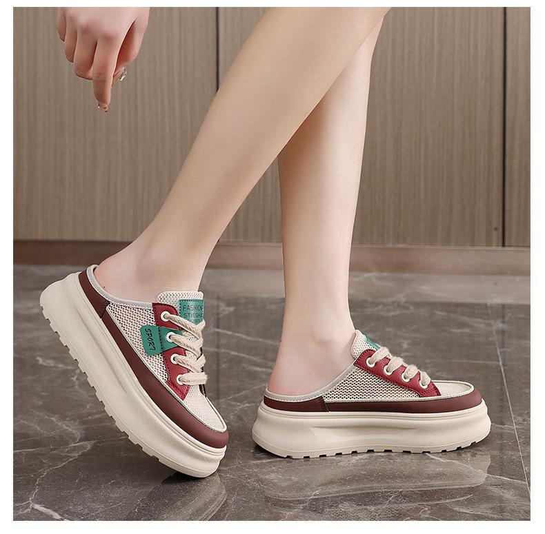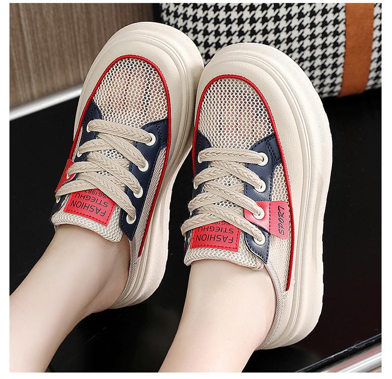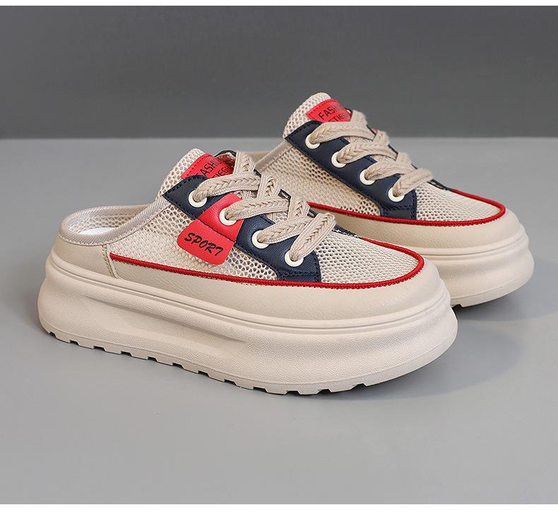 Kt282 Zapatos Nuevos de Medio Arrastre para Mujer 2025 Verano Casual Malla Transpirable Pantuflas Suela Delgada Versátiles Tenis
