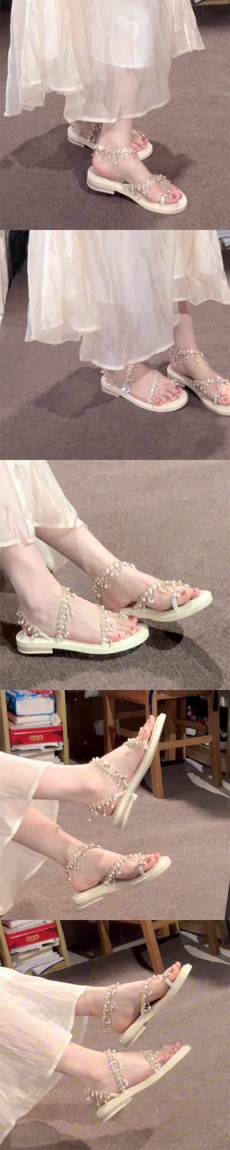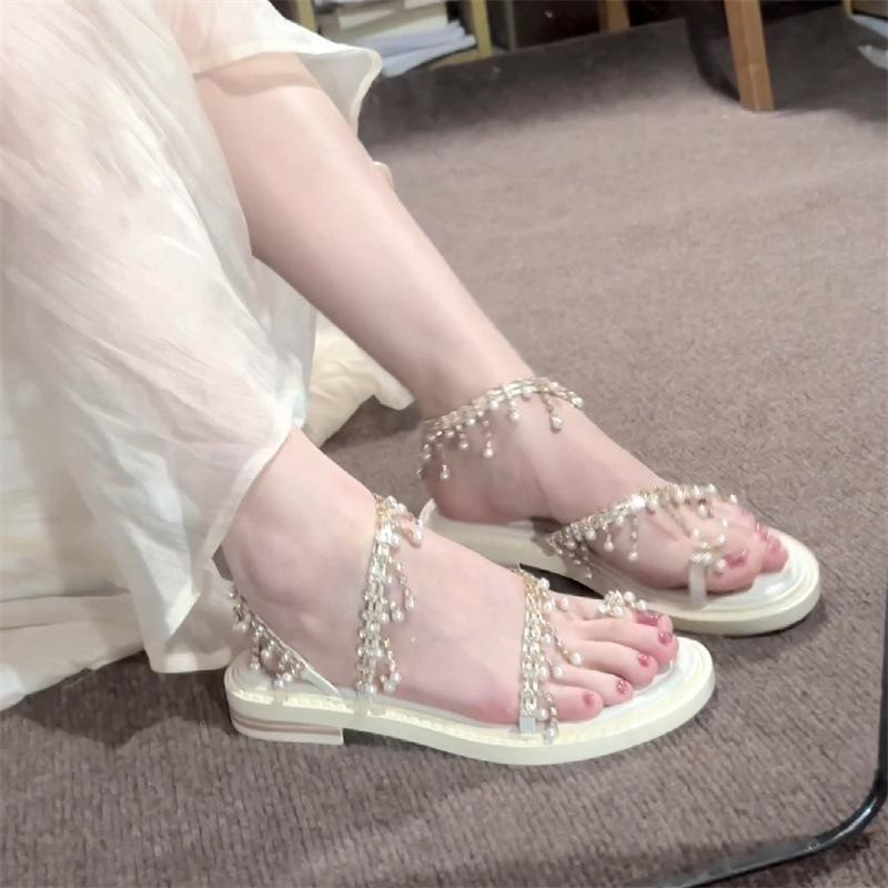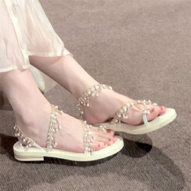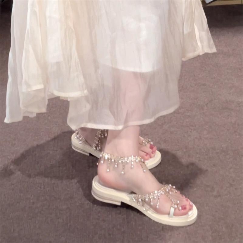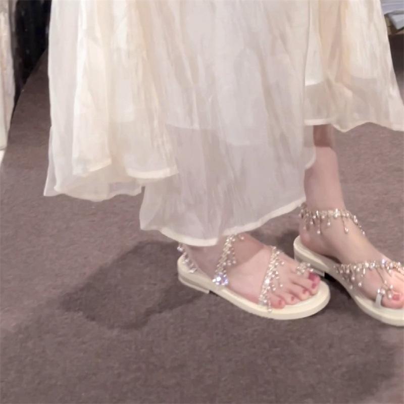 Sandalias de hada con borlas de pedrería brillante para uso exterior 2024 verano nuevo estilo bohemio con falda sandalias romanas para mujer