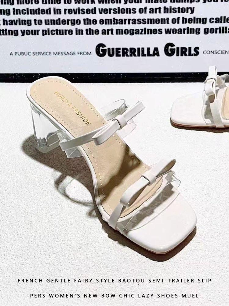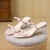 Moño Cristal Transparente Nueva Moda 2025 Primavera Sandalias Rosa Dulce Punta Abierta Tacón Alto Medias Pantuflas para Mujer