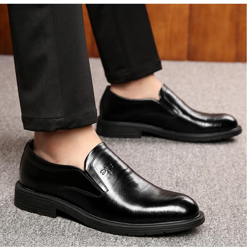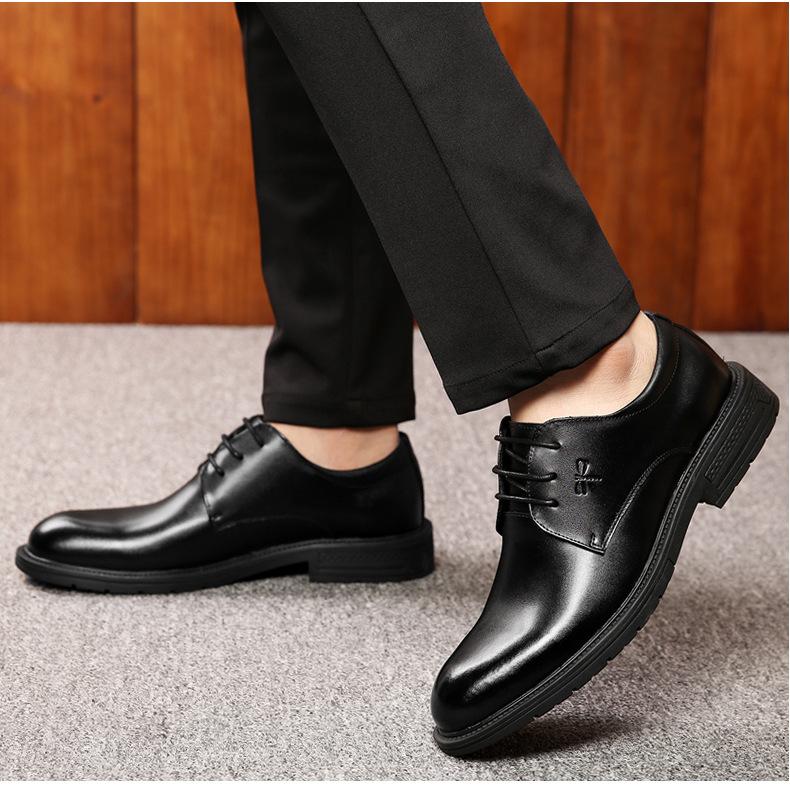 Zapatos formales de cuero para hombre de otoño e invierno, zapatos de oficina de cuero genuino estilo coreano para hombre, zapatos de piel de vaca negros para hombre para negocios, venta al por mayor