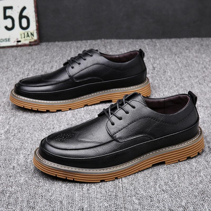 Zapatos Brogue de Cuero para Negocios Transfronterizos Otoño/Invierno 2021 Zapatos Casuales de Cuero Genuino para Hombre de Estilo Coreano Moderno Británico Combinable Zapatos de Hombre