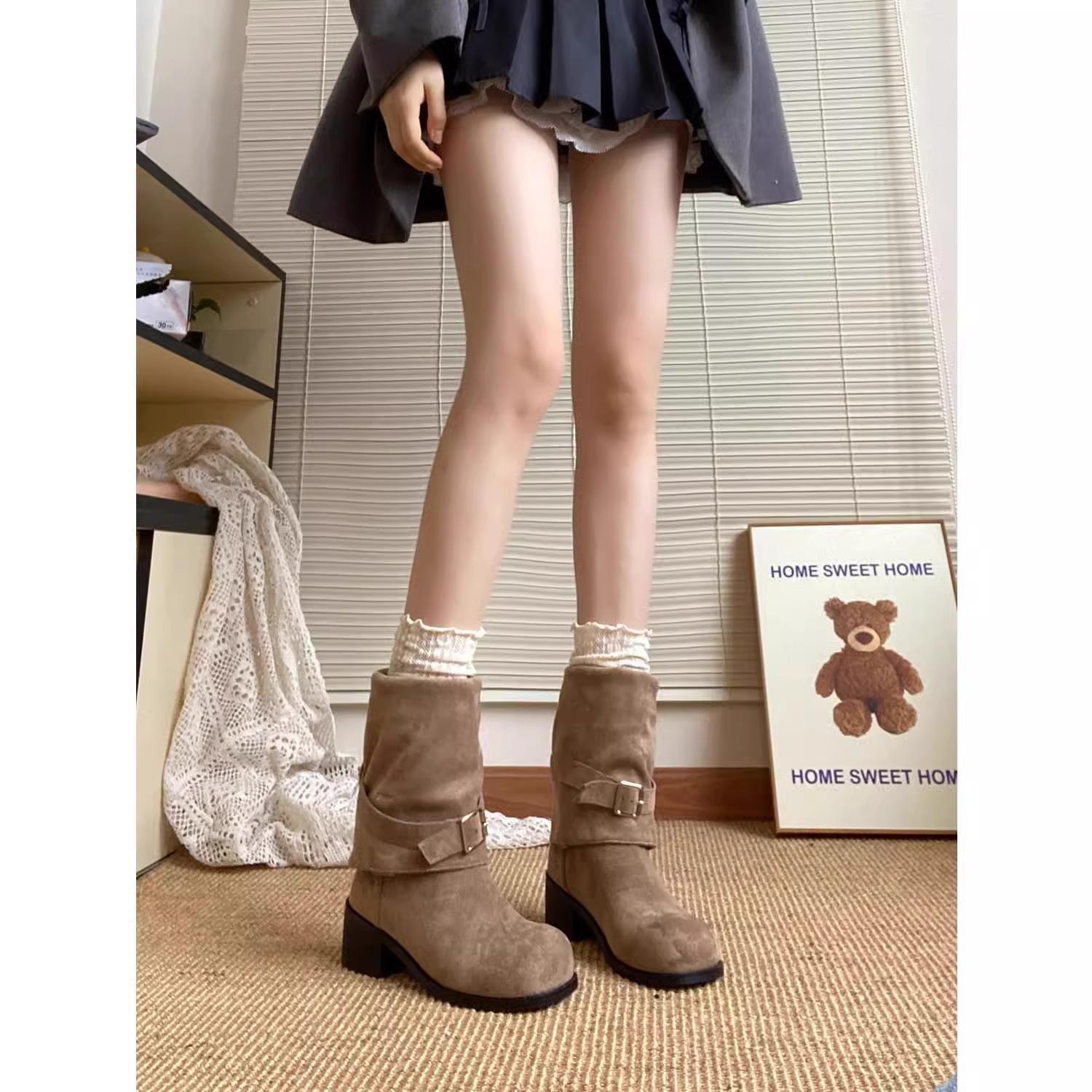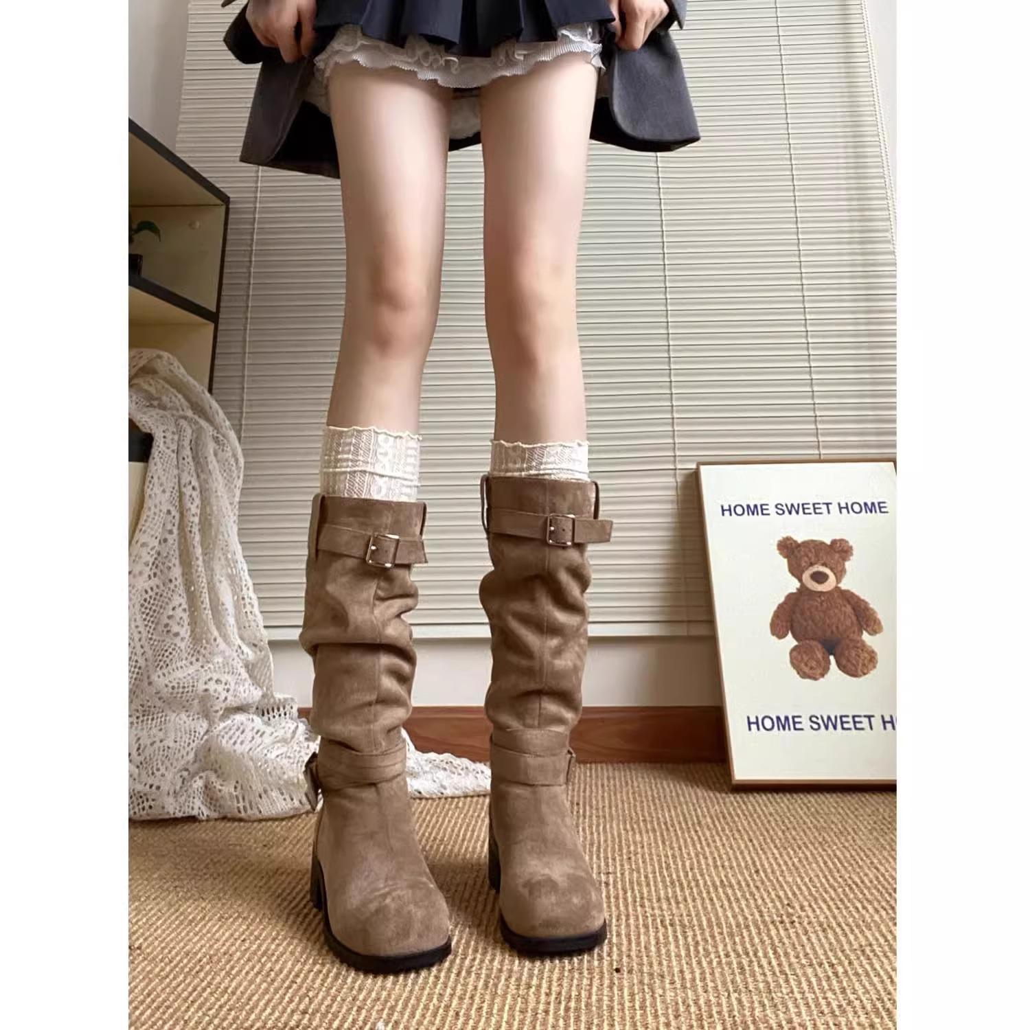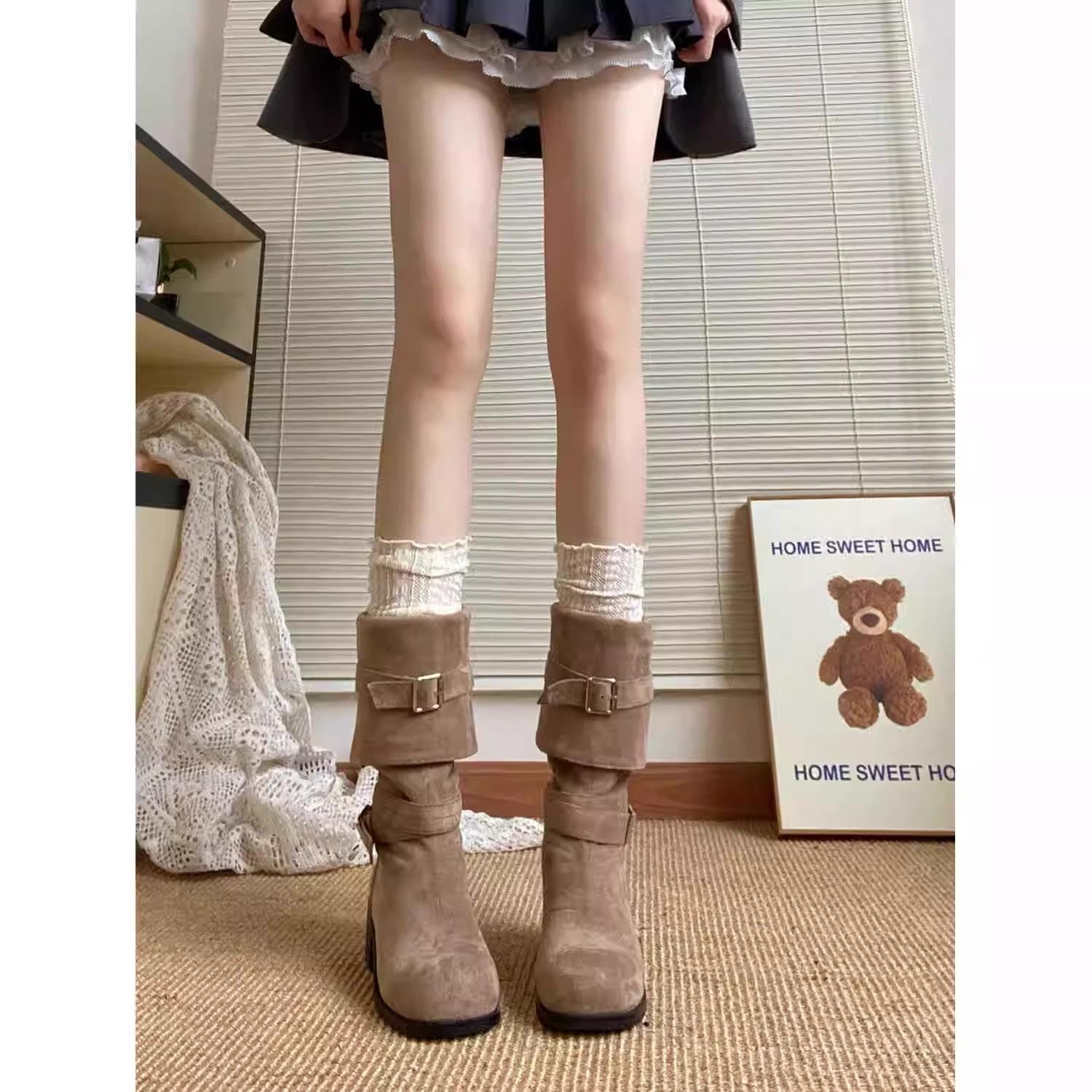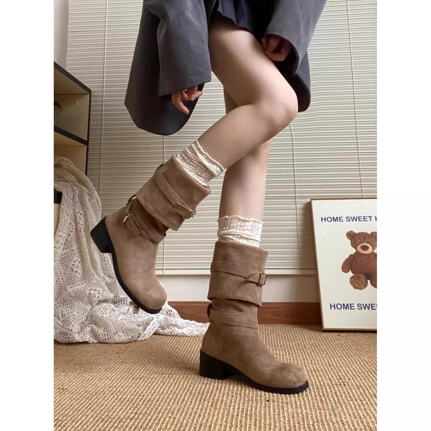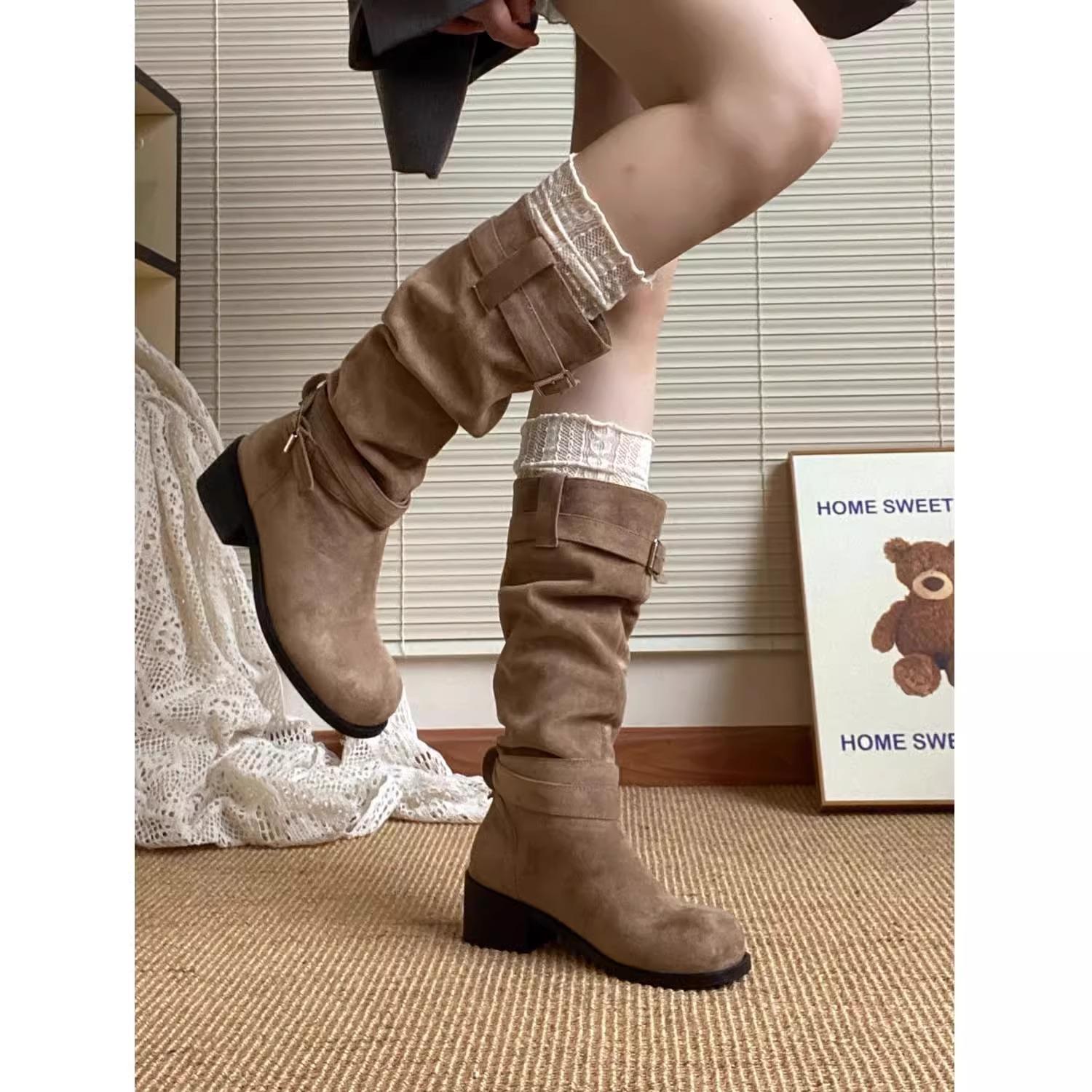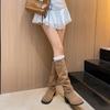 Otoño 2025 Nuevas Botas Vaqueras Occidentales de Dos Usos para Mujer Tacón Grueso de Pila Delgadas Botas Largas Botas de Caballero Botas Maillard
