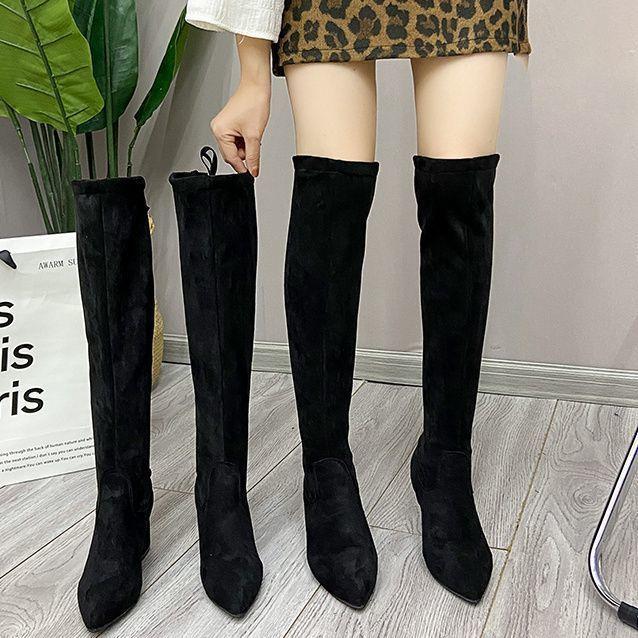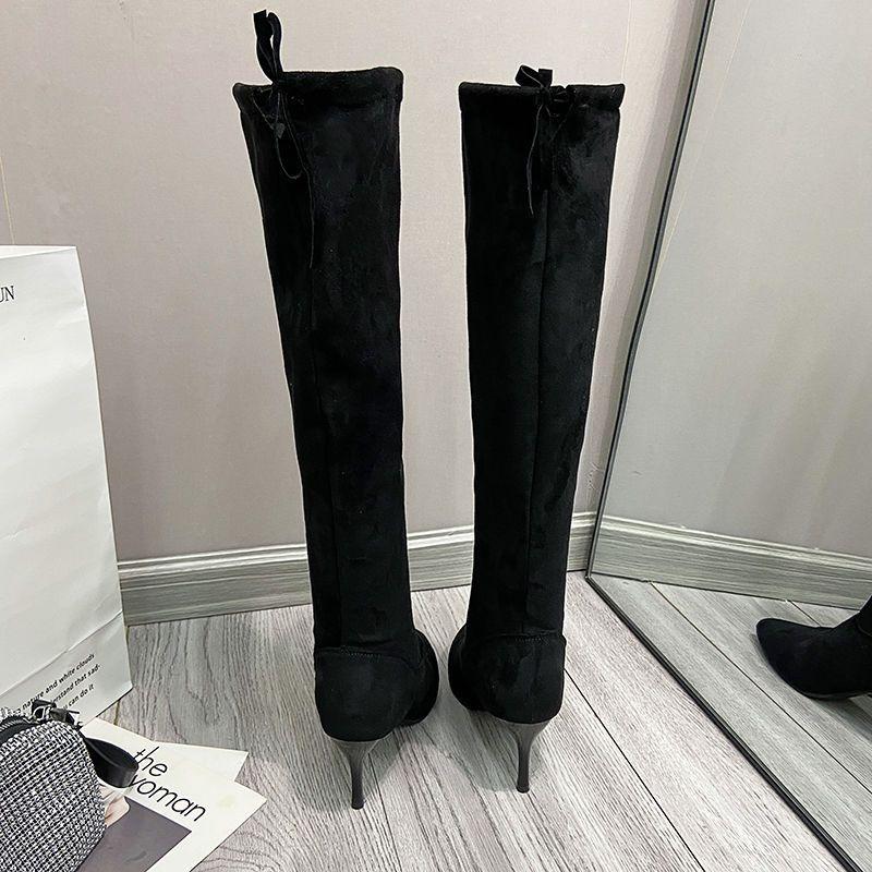 Botas por encima de la rodilla para mujeres pequeñas 2025 Nuevo Otoño e Invierno Stiletto Elásticas Botas Slim Botas para Mujeres Botas de Tacón Alto