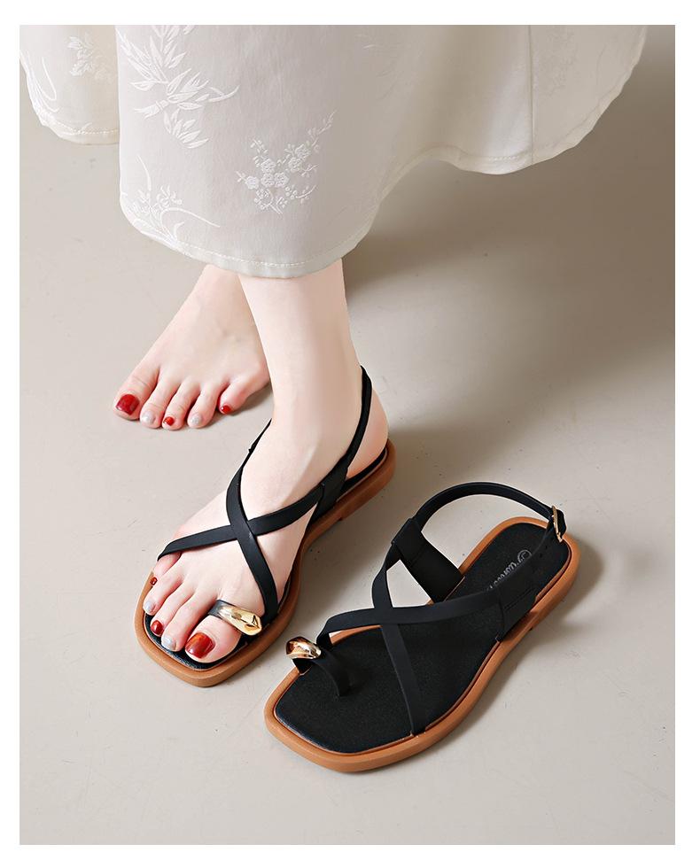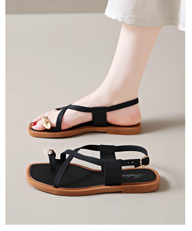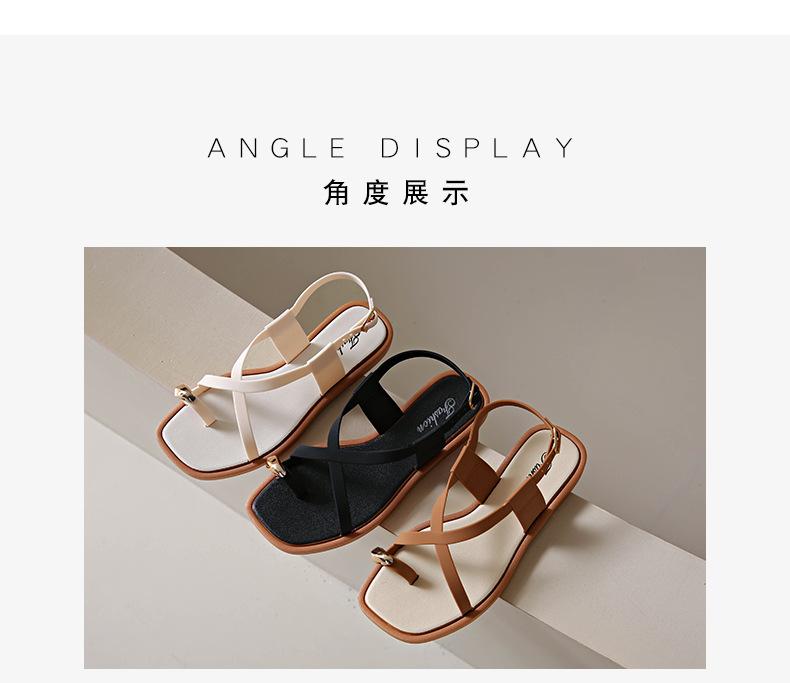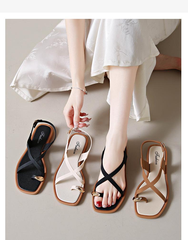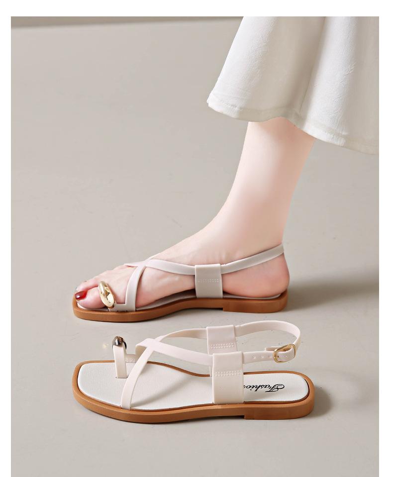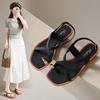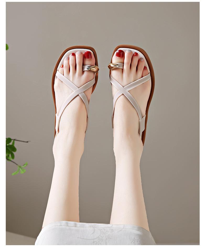 Sandalias de Tanga de Nuevo Estilo Transfronterizo para Mujer, Uso Exterior de Verano, Sandalias Romanas Planas de Moda Ins, Sandalias de Diapositiva para Mujer