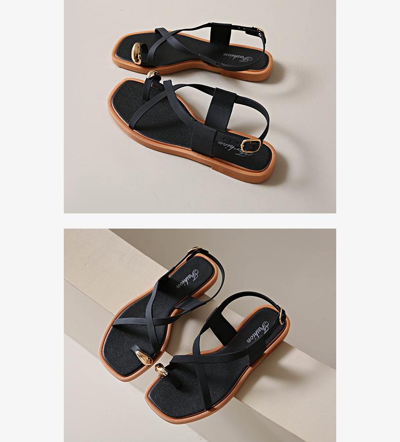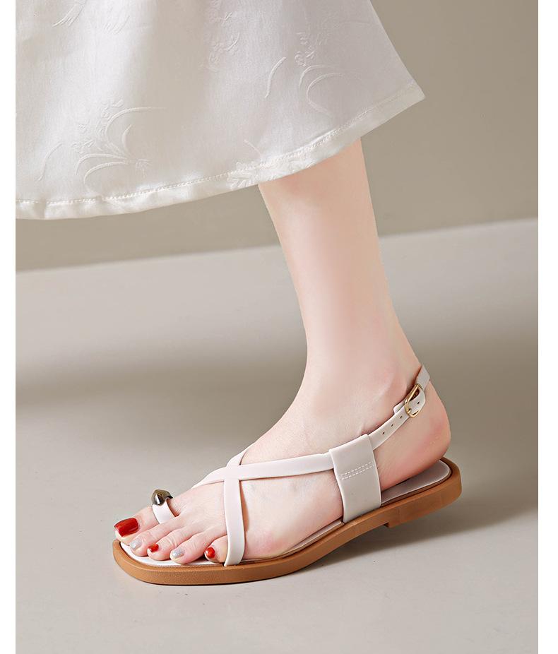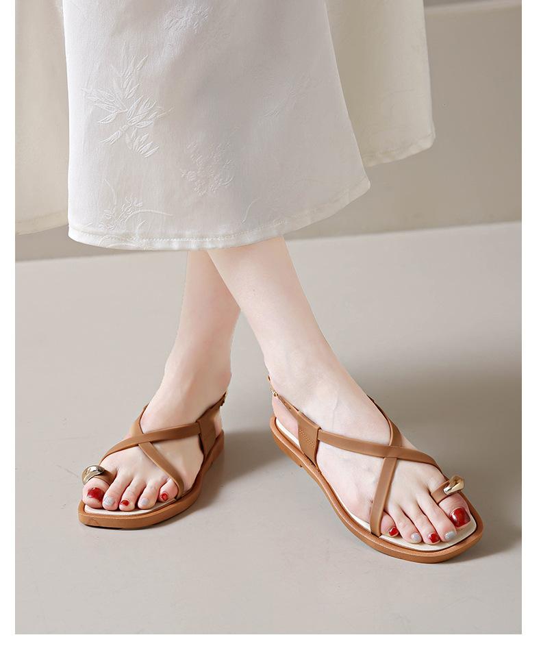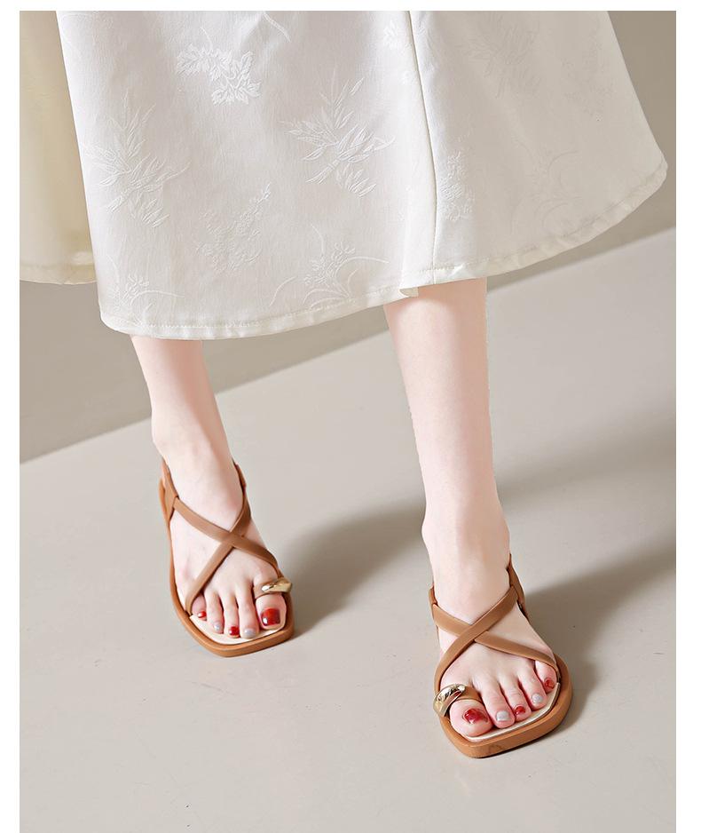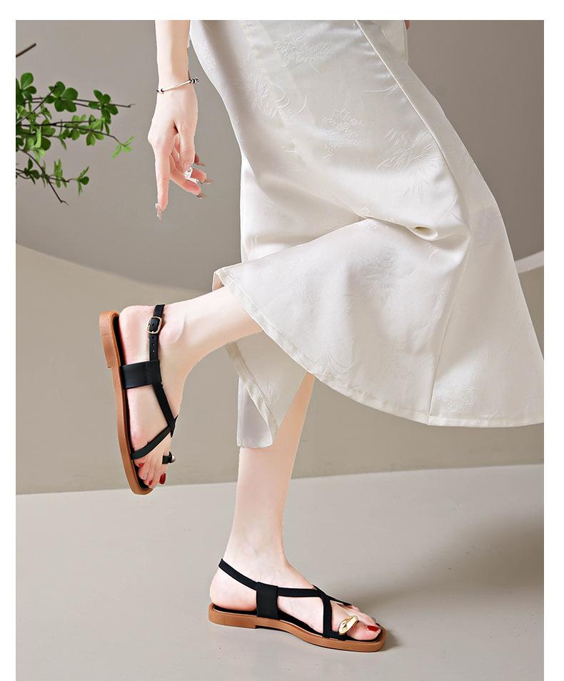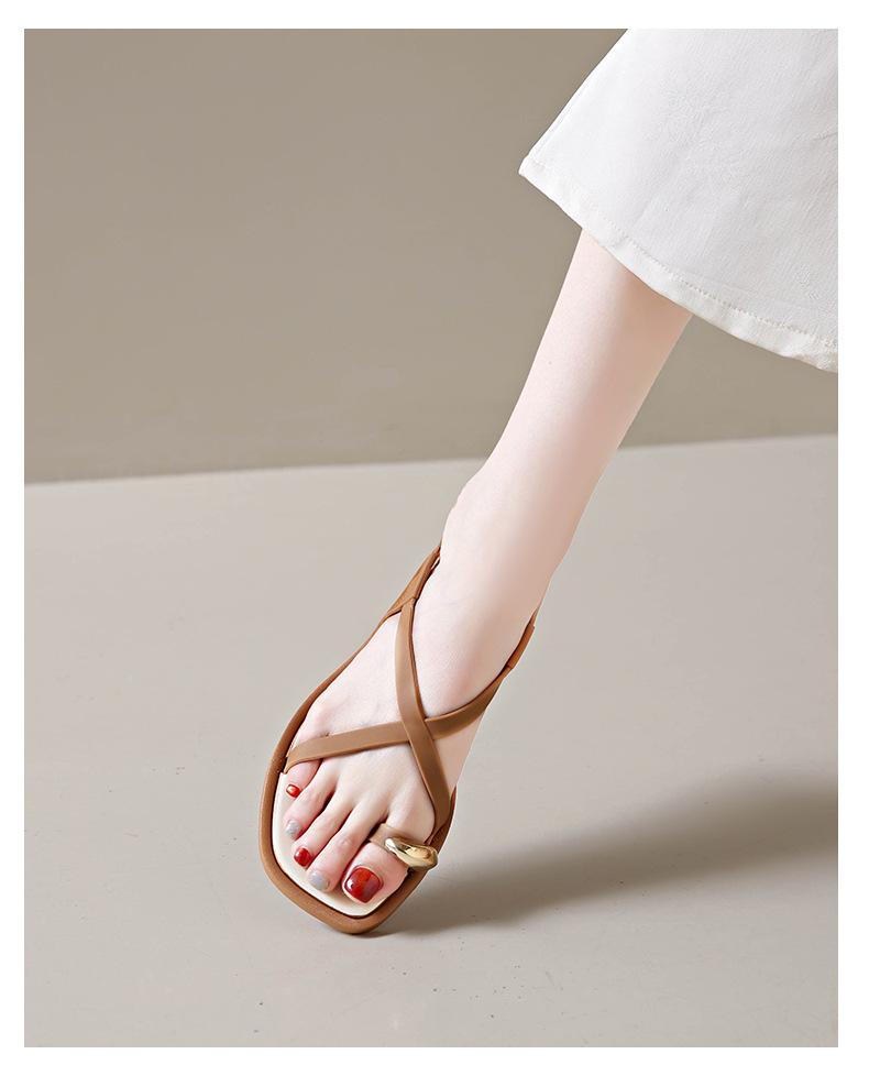 Sandalias de Tanga de Nuevo Estilo Transfronterizo para Mujer, Uso Exterior de Verano, Sandalias Romanas Planas de Moda Ins, Sandalias de Diapositiva para Mujer