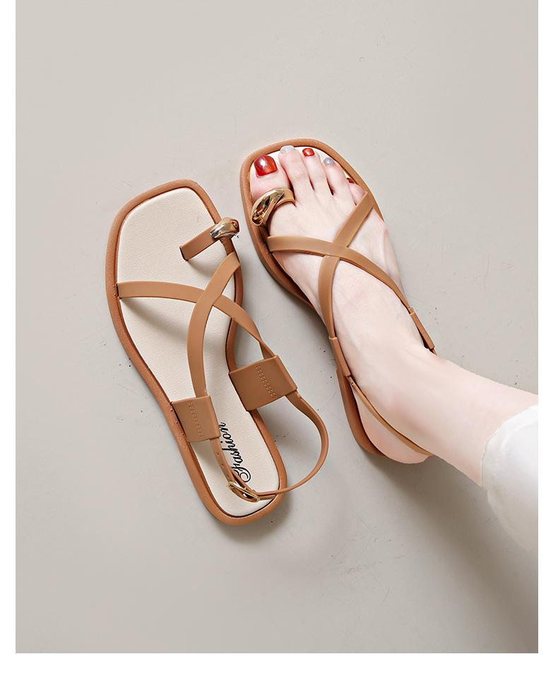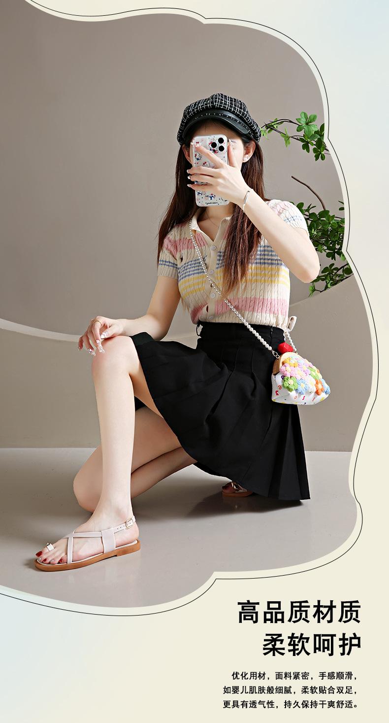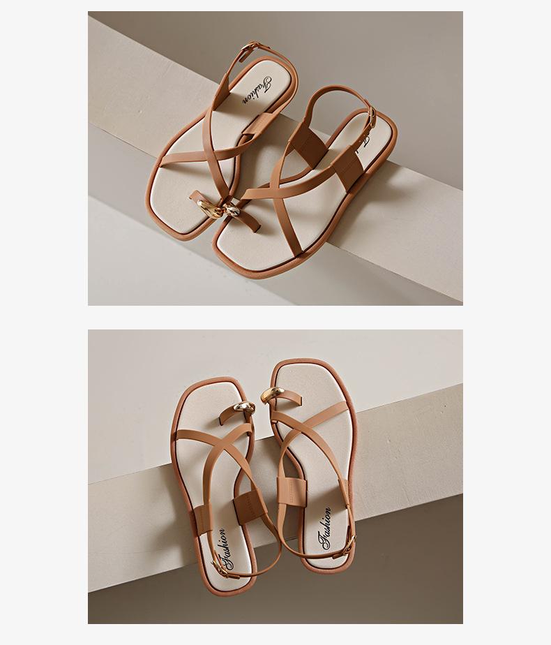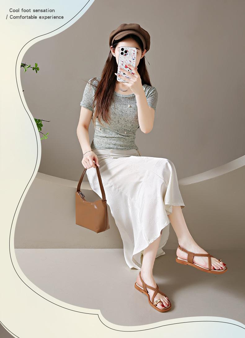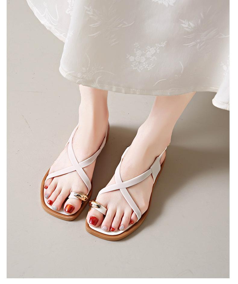 Sandalias de Tanga de Nuevo Estilo Transfronterizo para Mujer, Uso Exterior de Verano, Sandalias Romanas Planas de Moda Ins, Sandalias de Diapositiva para Mujer