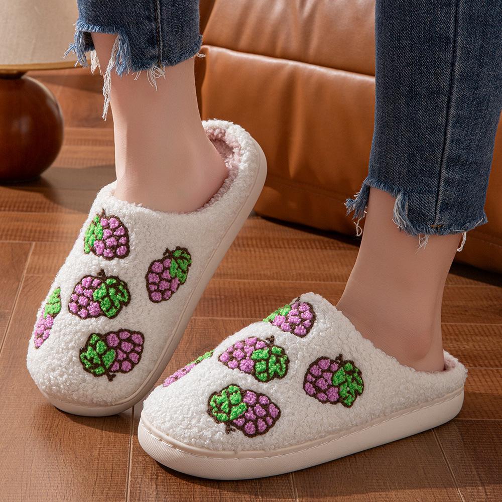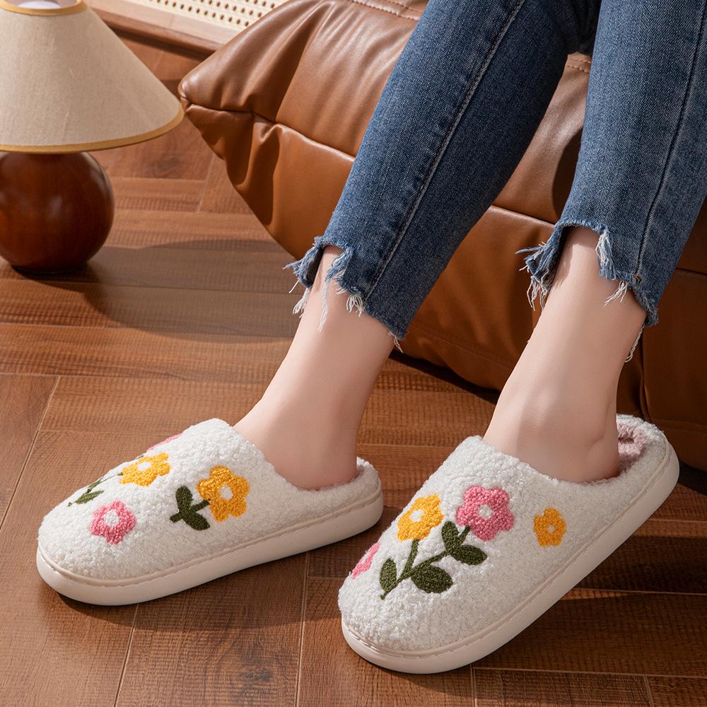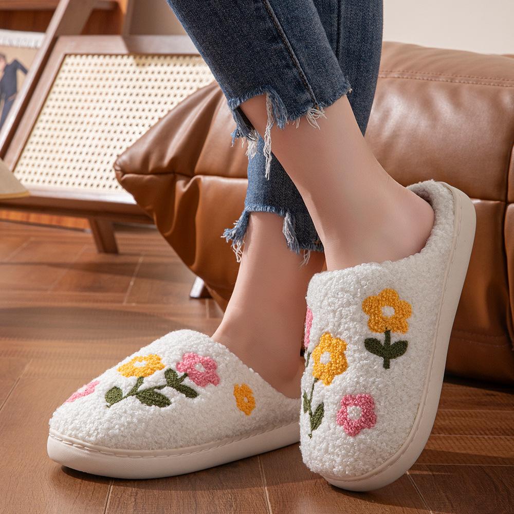 Pantuflas de Algodón Bordadas con Toalla Transfronteriza para Mujer con Diseño Floral, Forradas de Felpa para Otoño e Invierno, Antideslizantes, Cálidas, Silenciosas, de Felpa para Hombre al por Mayor