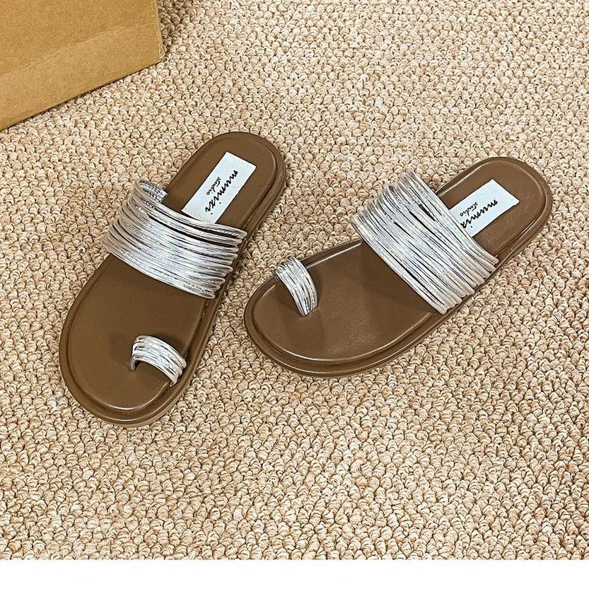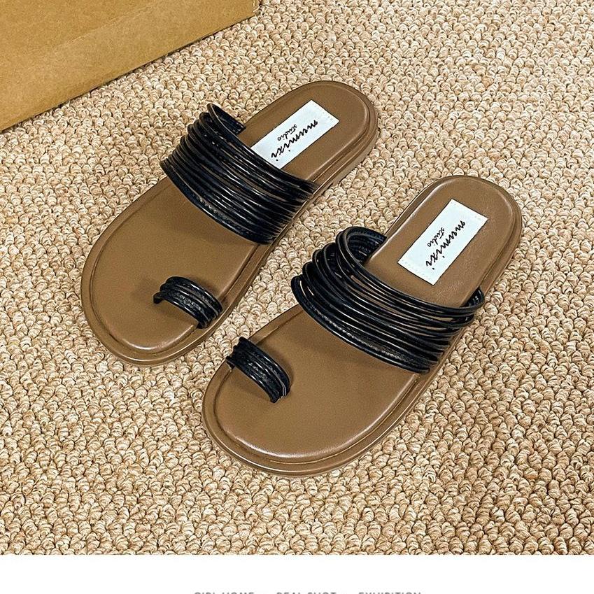 Zapatos Romanos Flip-Toe para Mujer Verano 2025 Nuevo Estilo de Hada Ropa Exterior con Falda Flats Punta Cuadrada Sandalias y Pantuflas de Playa