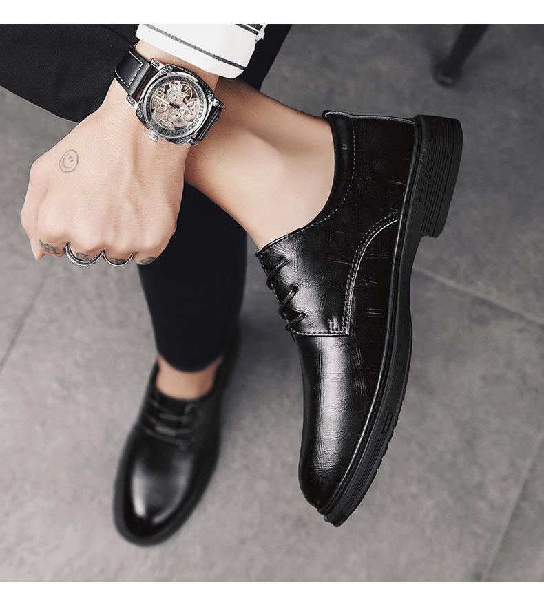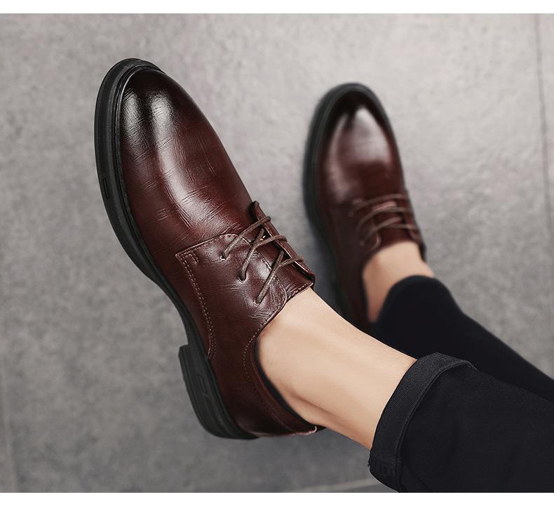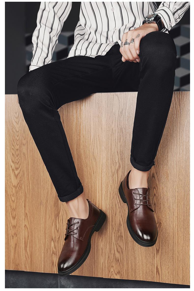 Talla Grande 38-48 Venta Caliente Primavera y Verano Nuevos Zapatos Formales de Negocios de Cuero Estilo Británico Zapatos de Hombre Punta Redonda Cuero Genuino Zapatos de Trabajo