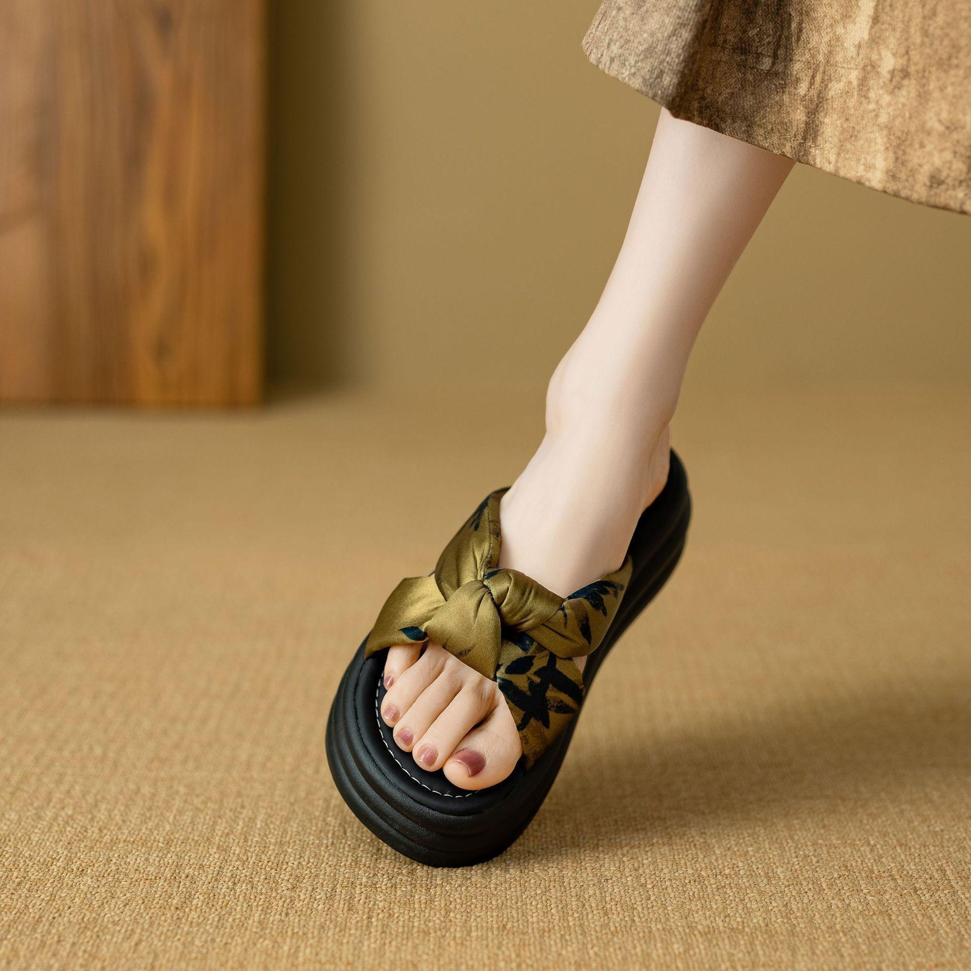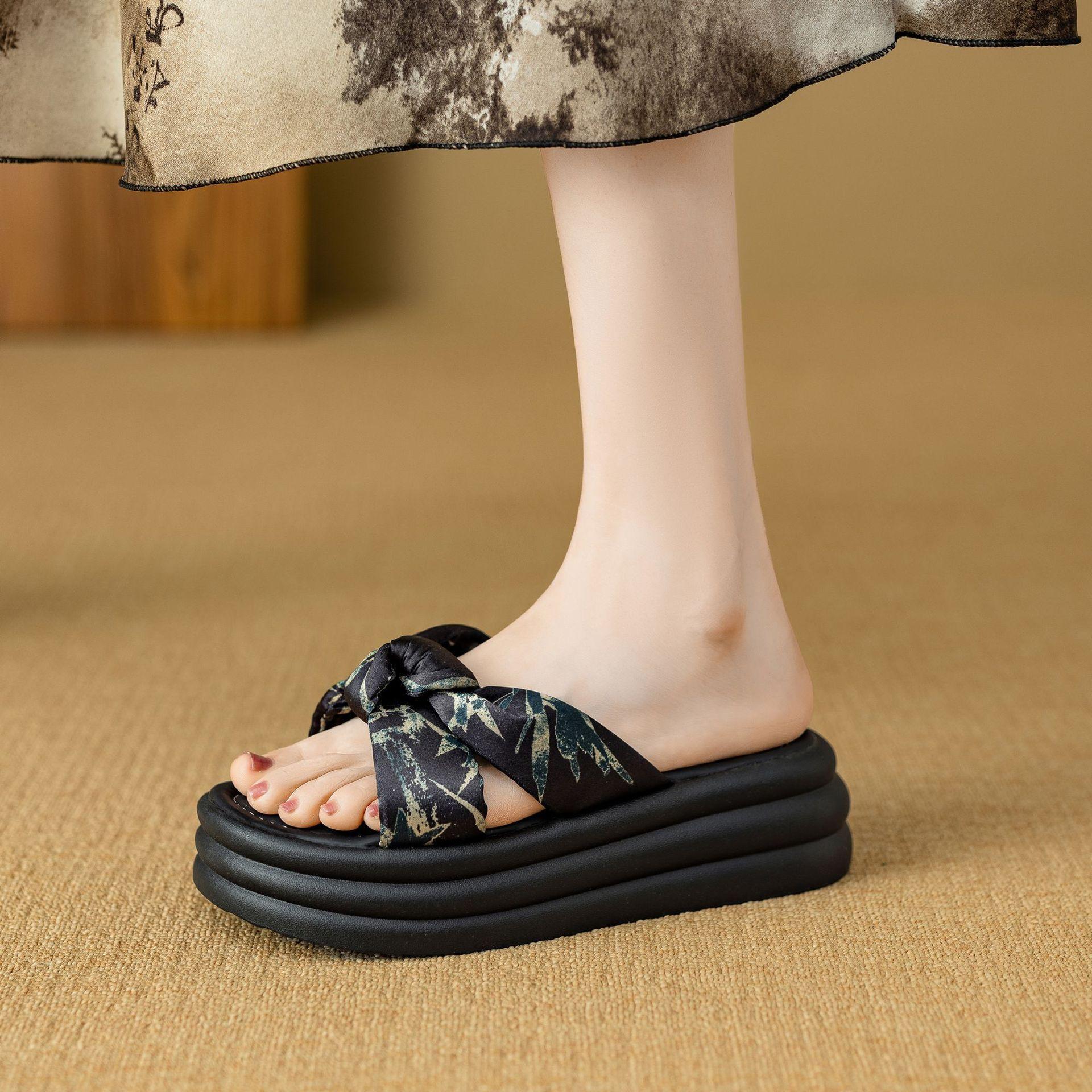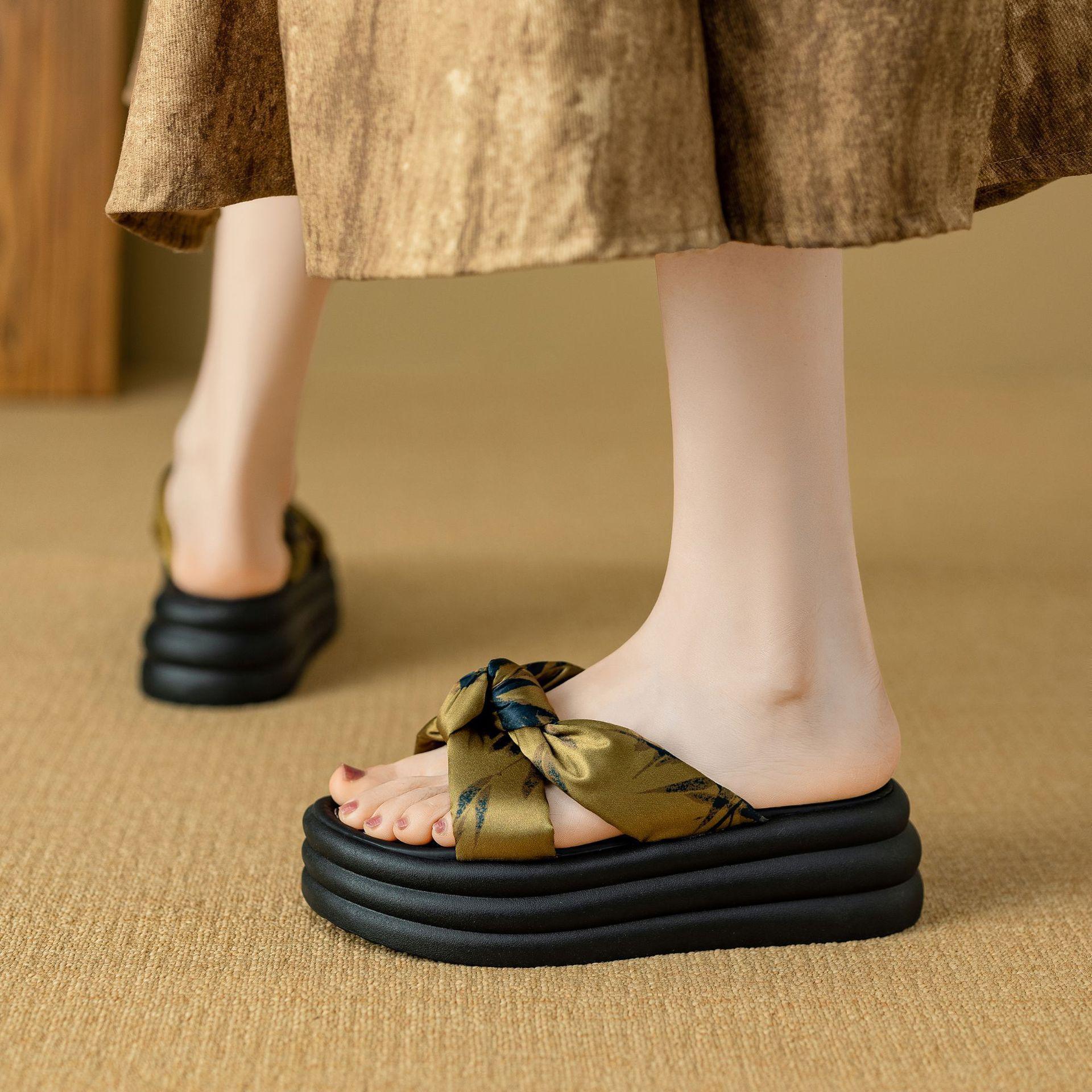 Falda de Moda Roma 2025 Zapatillas Nuevas de Suela Gruesa Estilo Chino para Mujer Verano Ropa Exterior Playa Marítima con Sandalias de Estudiante