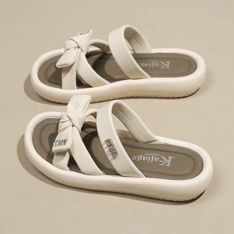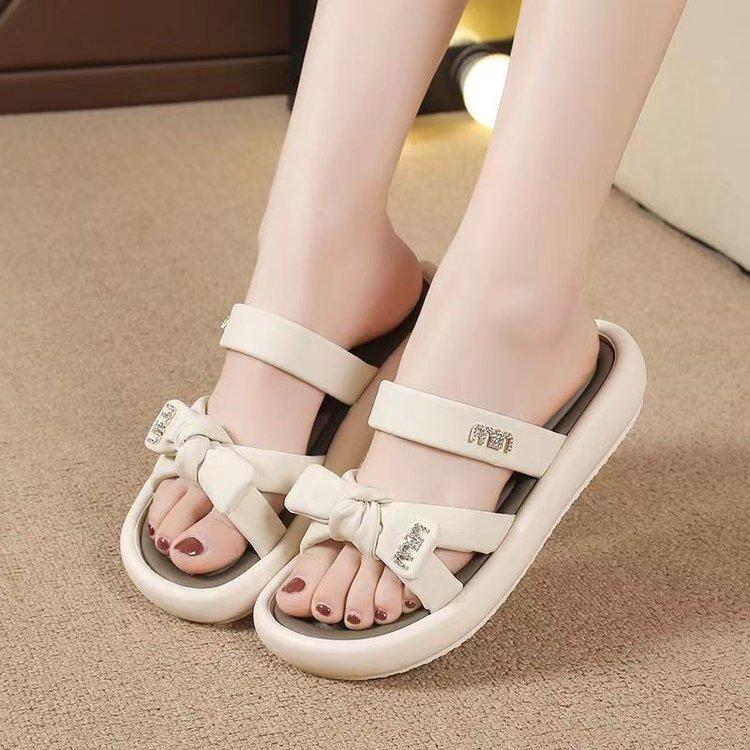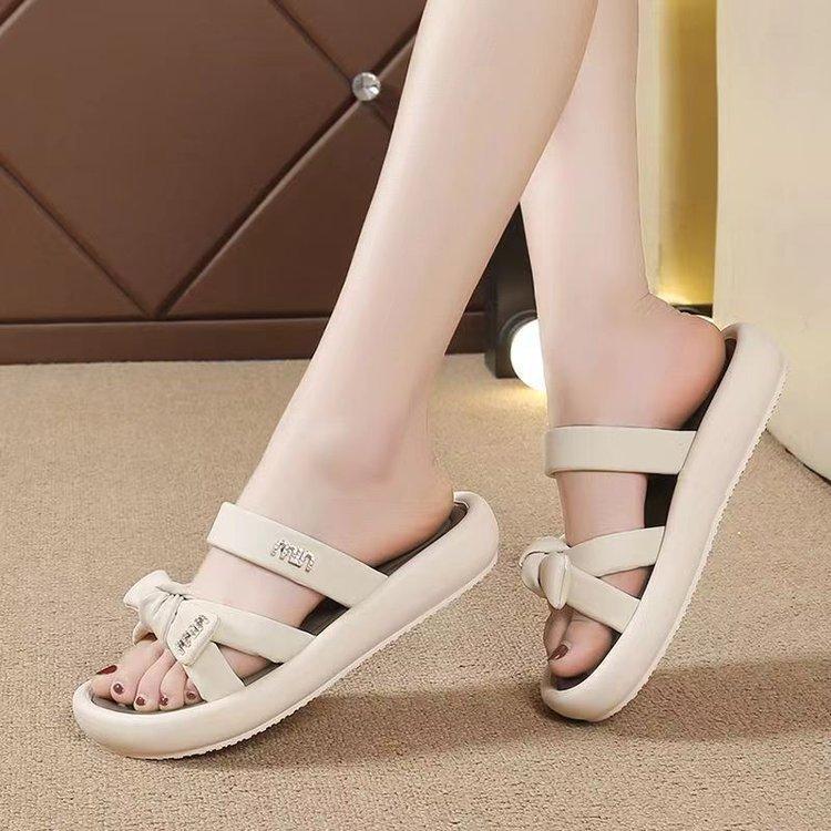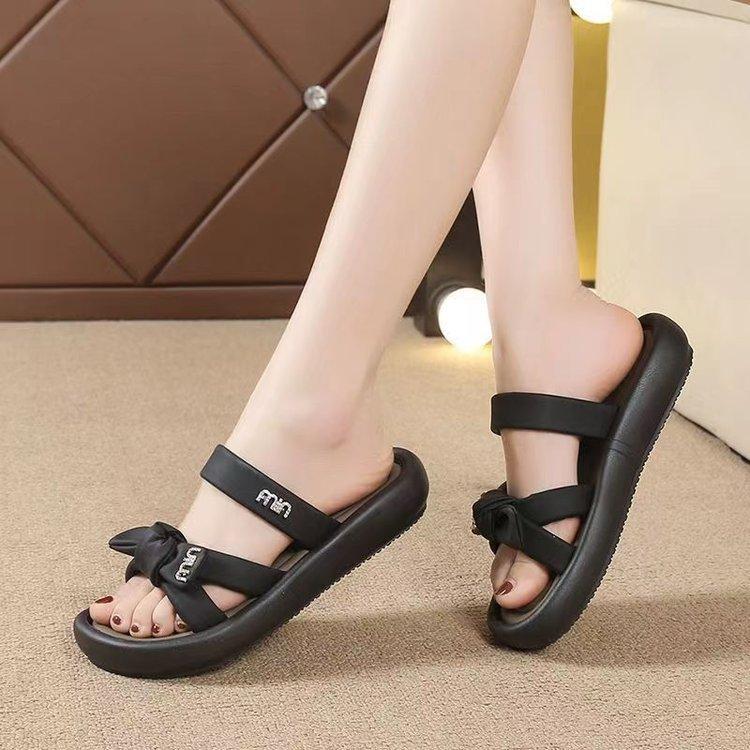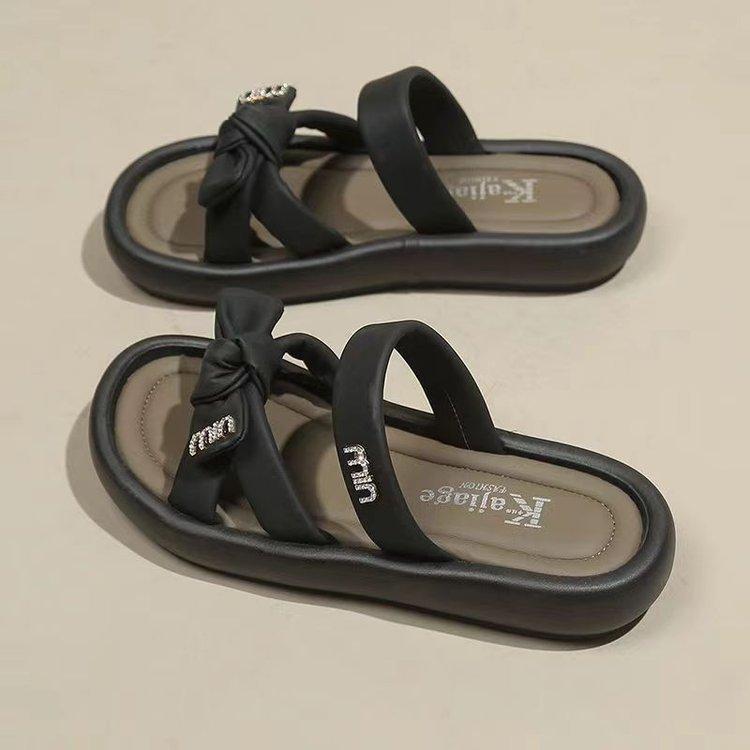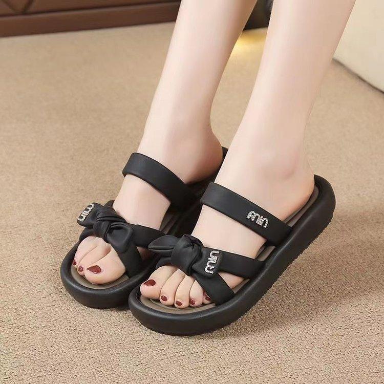 Nuevo Estilo de Verano 2024 Lazo de Hada Ropa Exterior Sandalias de Playa Versátiles para Niñas, Sandalias de Suela Gruesa para Mujeres