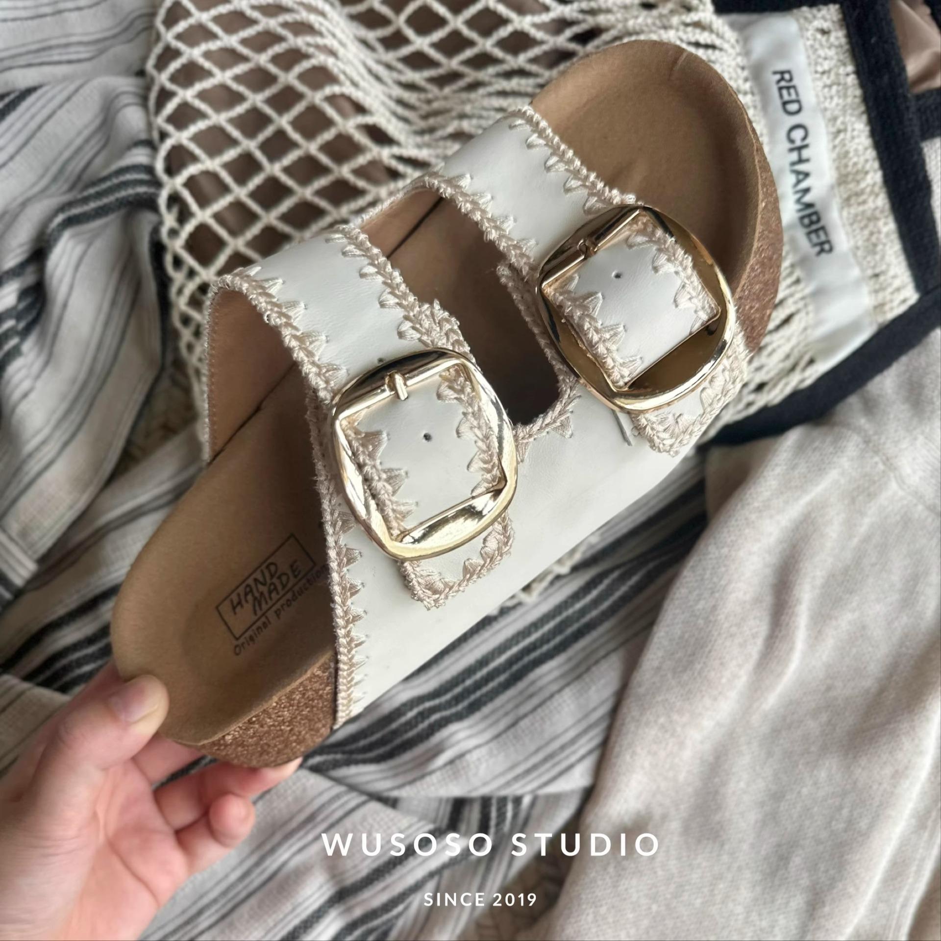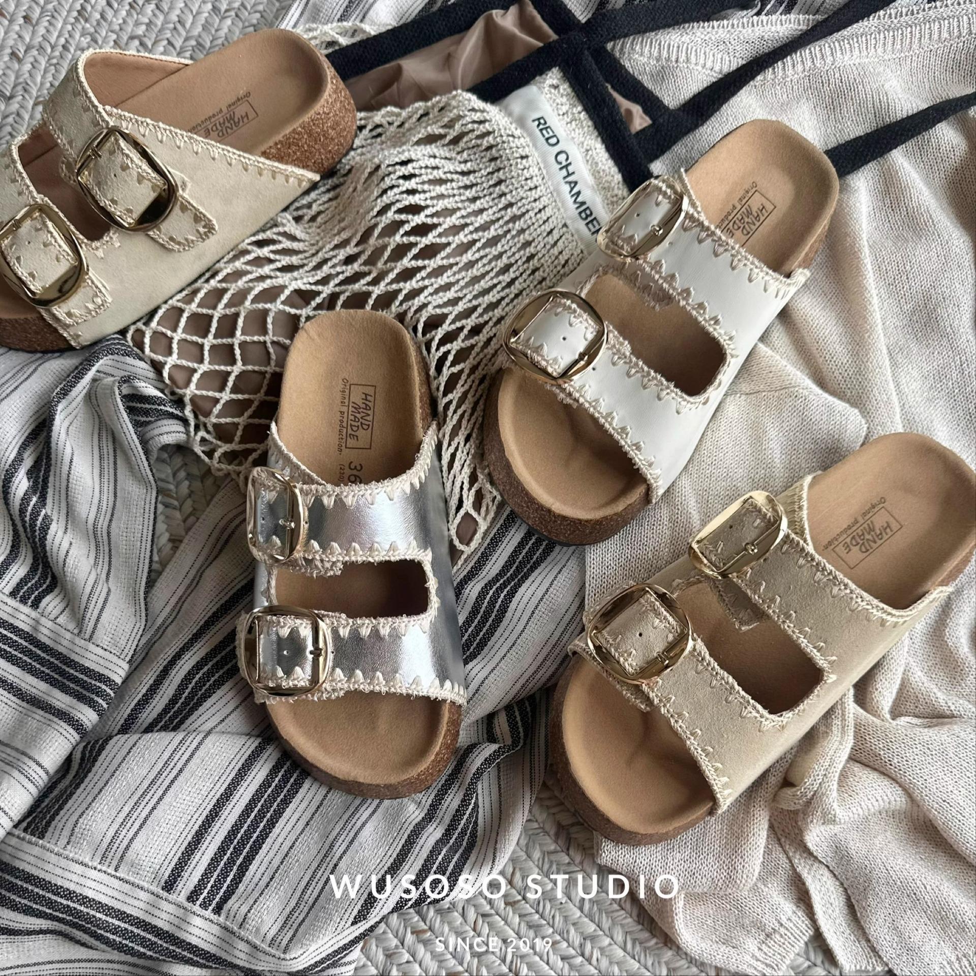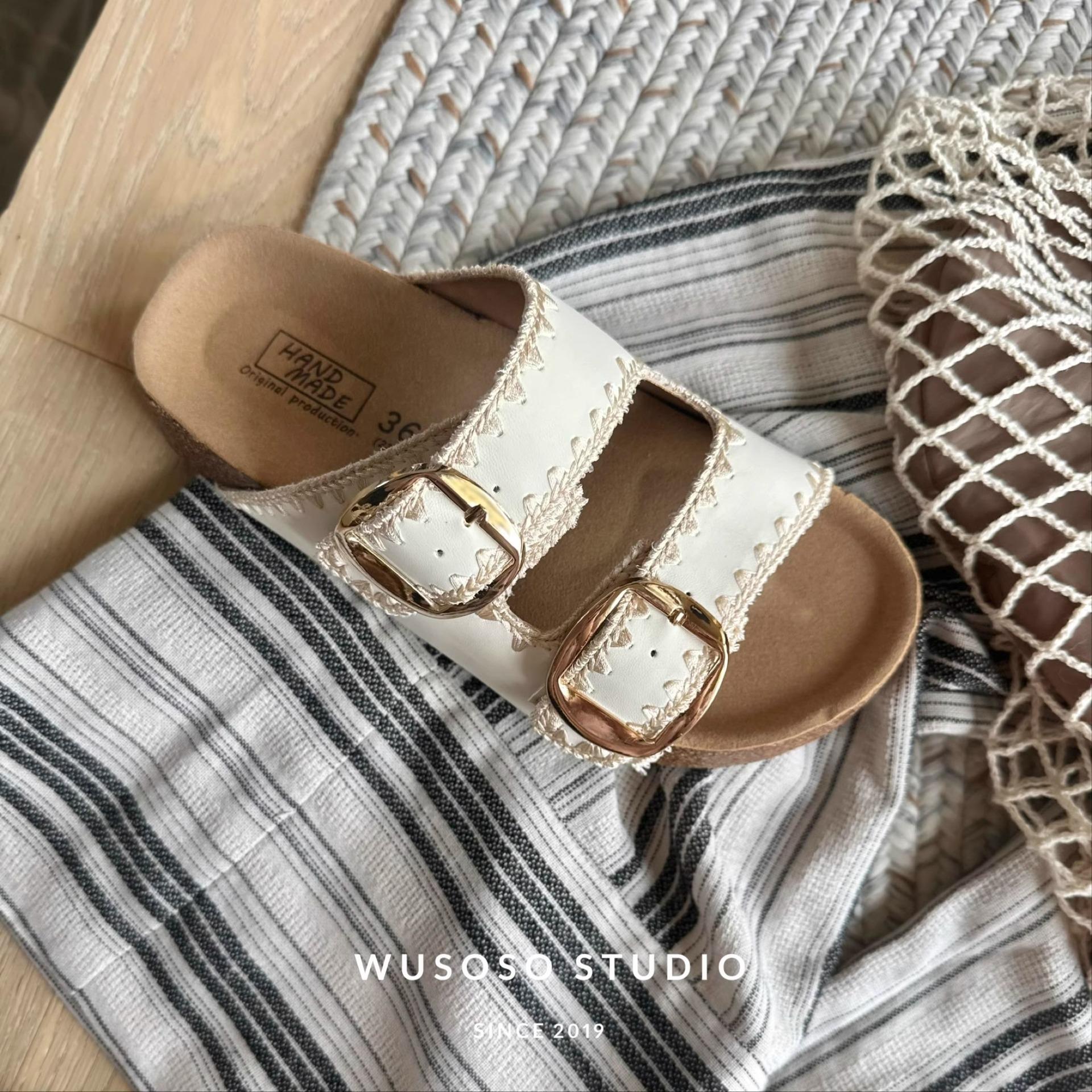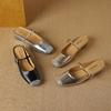 Edición Piel de Vaca ~ Tacón Alto con Suela Gruesa Hebilla de Cinturón Tejida Zapatos Burken Ropa Exterior Retro Sandalias de Una Palabra Pantuflas de Playa para Mujer