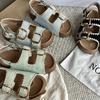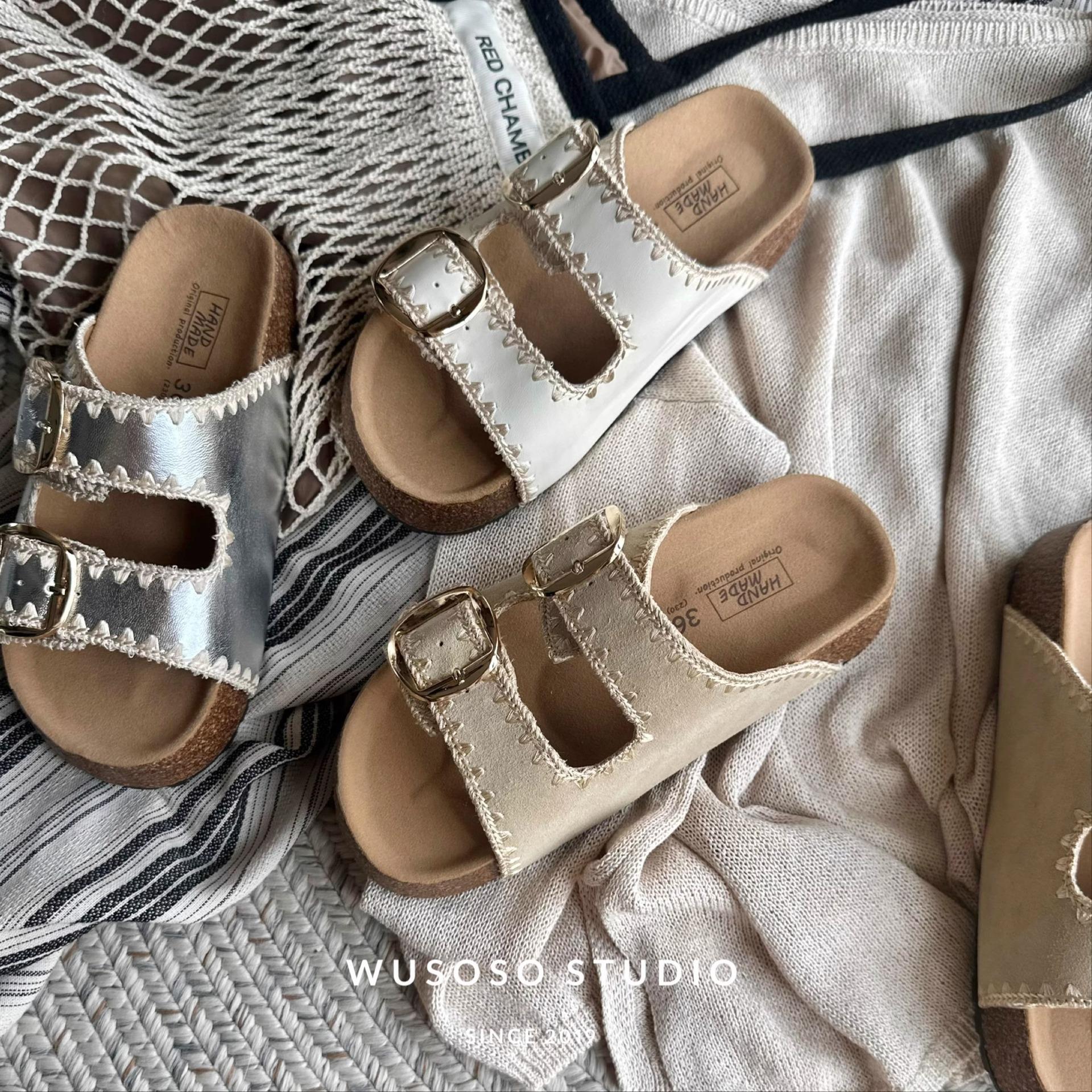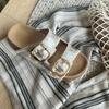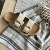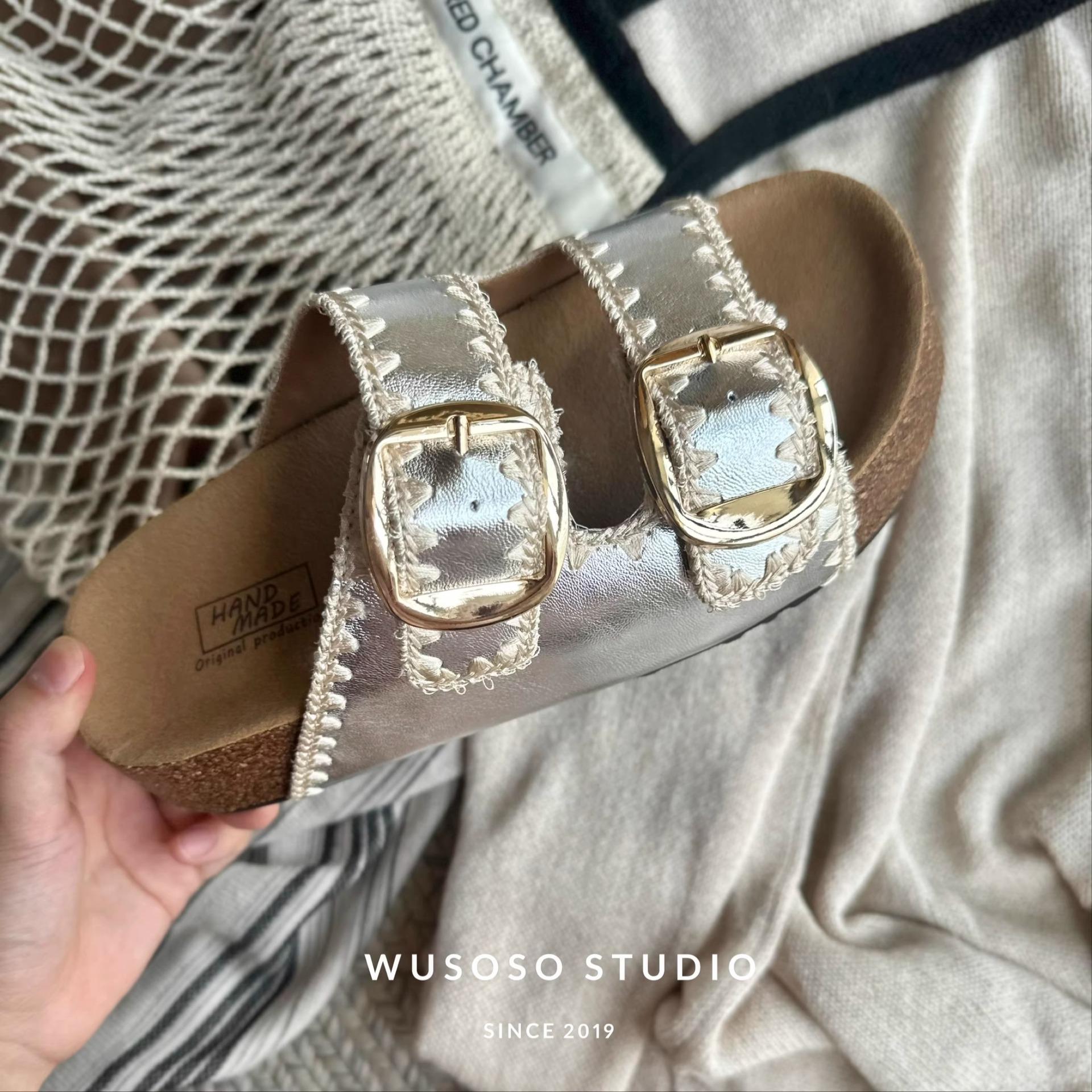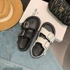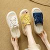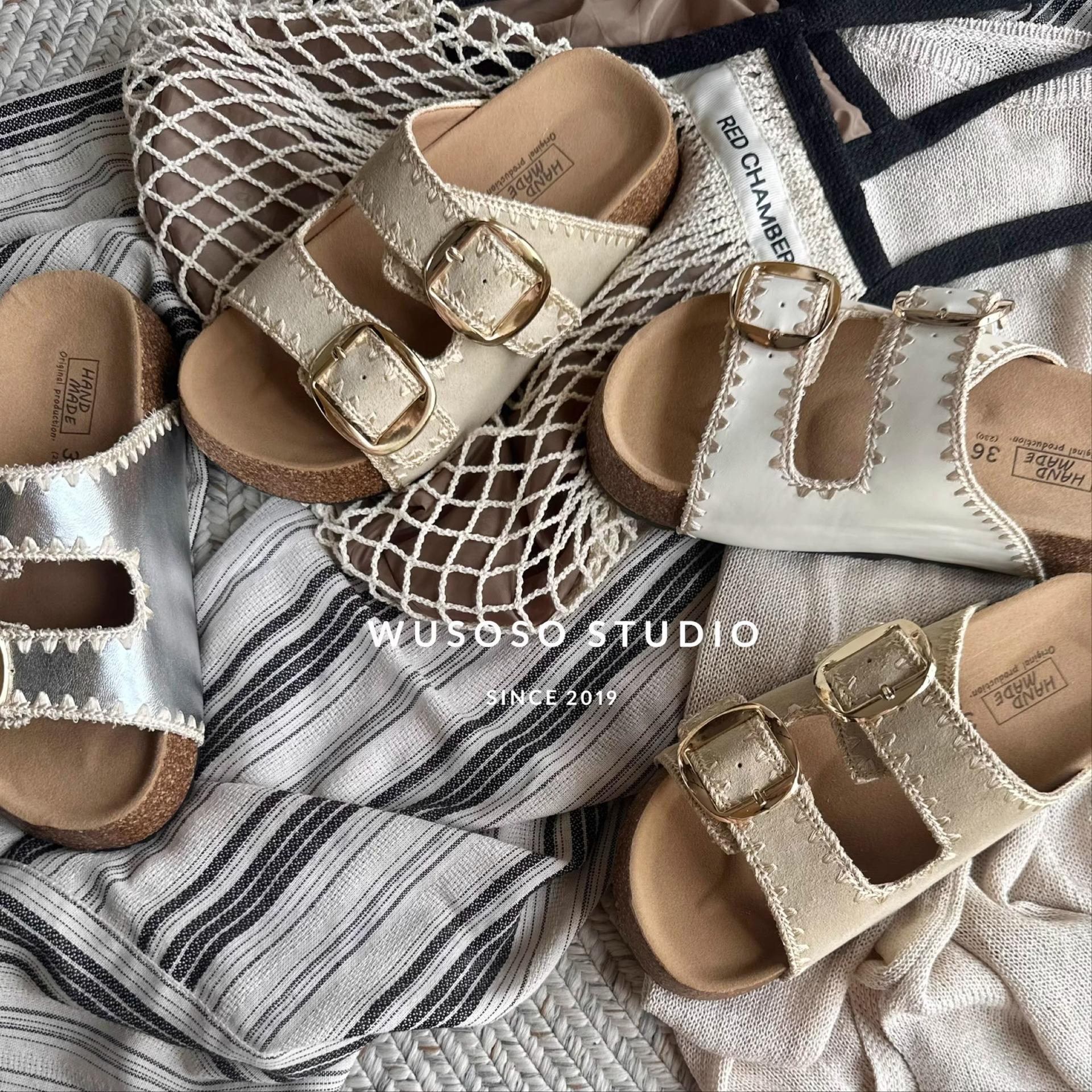 Edición Piel de Vaca ~ Tacón Alto con Suela Gruesa Hebilla de Cinturón Tejida Zapatos Burken Ropa Exterior Retro Sandalias de Una Palabra Pantuflas de Playa para Mujer
