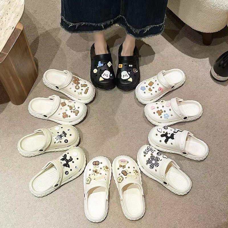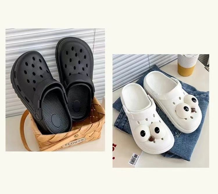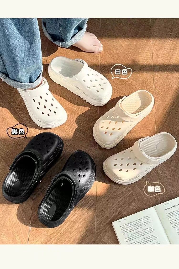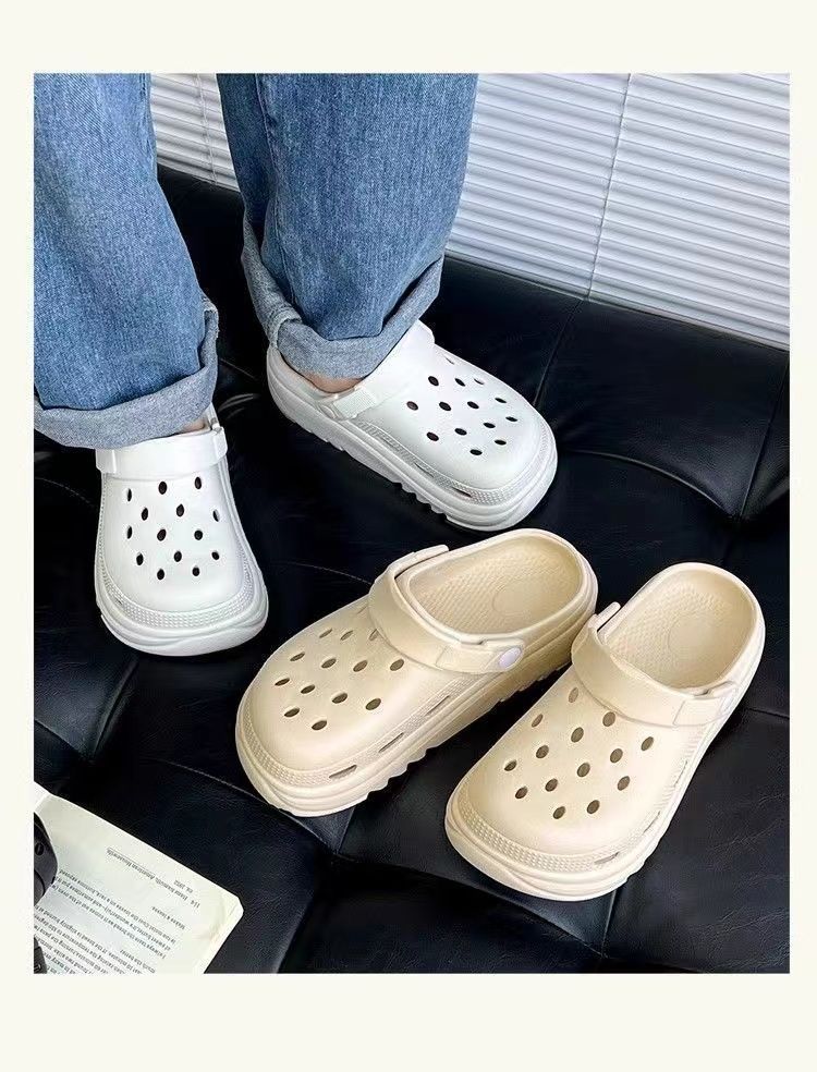 Zapatos de agujero negros de suela gruesa para mujer 2025 nuevo verano para vestir antideslizantes sin mal olor casual playa EVA cubiertos de punta para hombre
