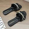 Sandalias de Exterior de Fondo Plano Estilo Hada para Mujeres y Mujeres Verano 2024 Nuevo Todo Combinable Encaje Volantes Sandalias