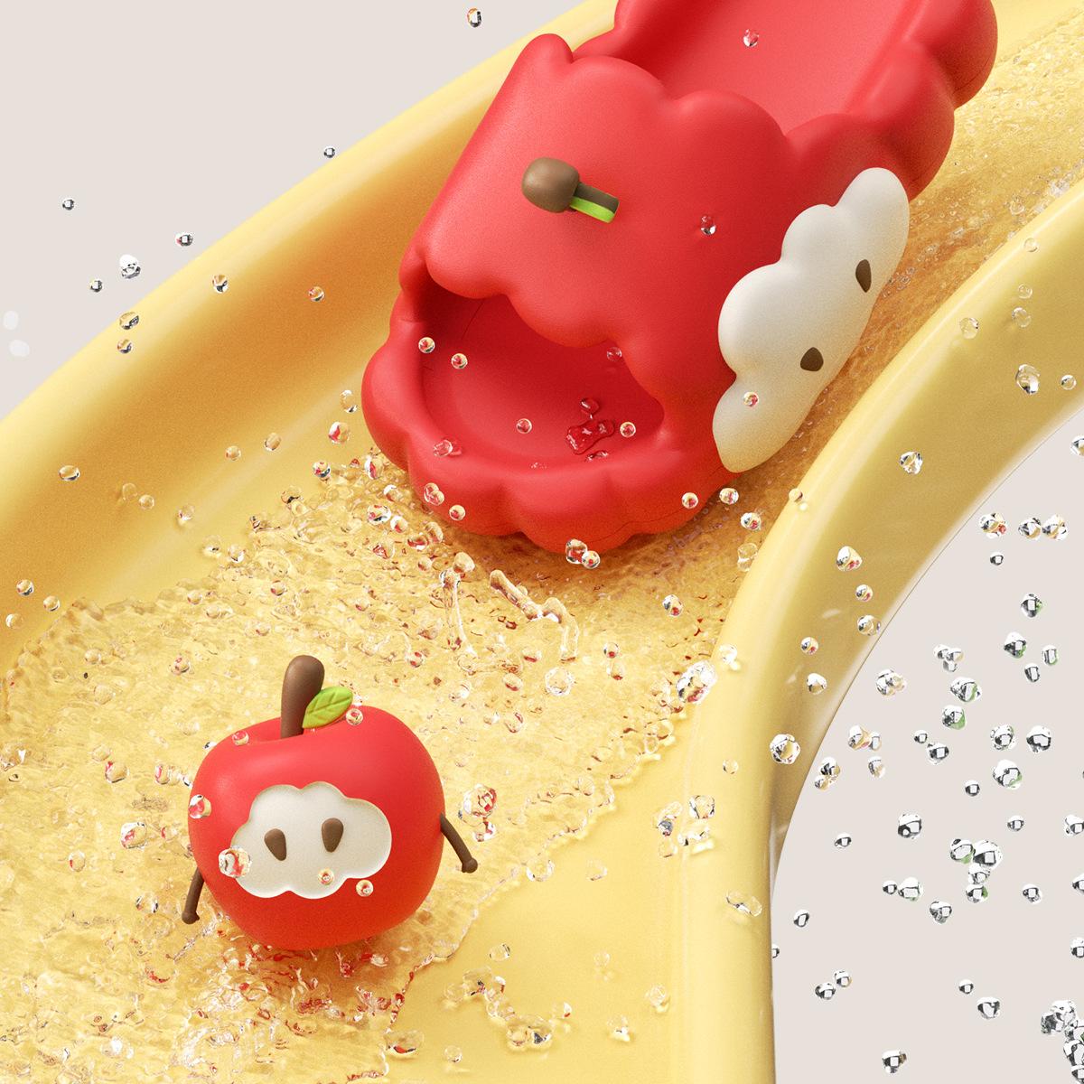 Pantuflas de Manzana para Mujer, Uso Exterior de Verano, Interior Hogar Antideslizantes de Suela Alta, Pantuflas de Baño para Ducha