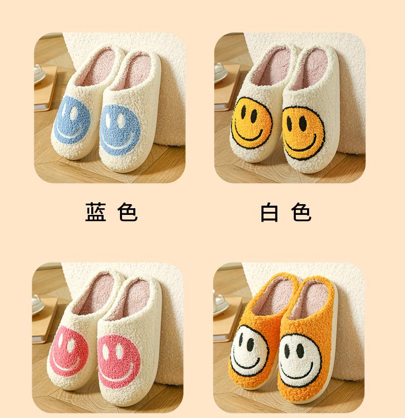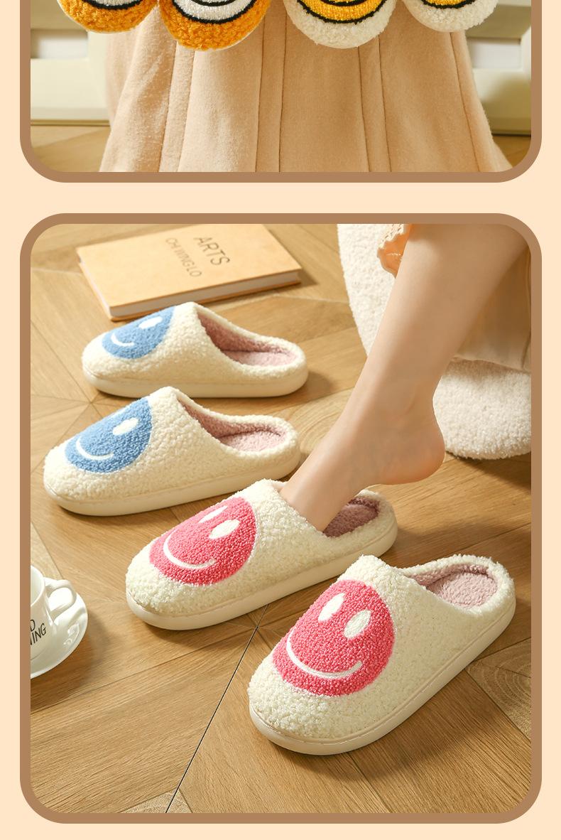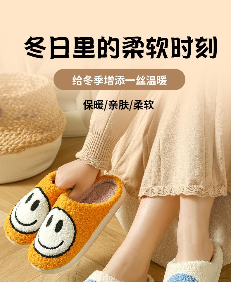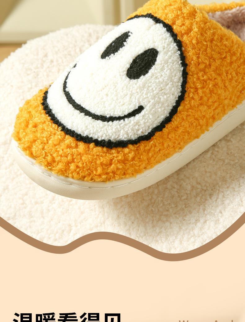 Pantuflas de Felpa con Cara Sonriente al por Mayor Transfronterizas Otoño e Invierno para Casa Interior Pantuflas de Algodón Cálidas de Suela Gruesa Pantuflas de Felpa para Casa