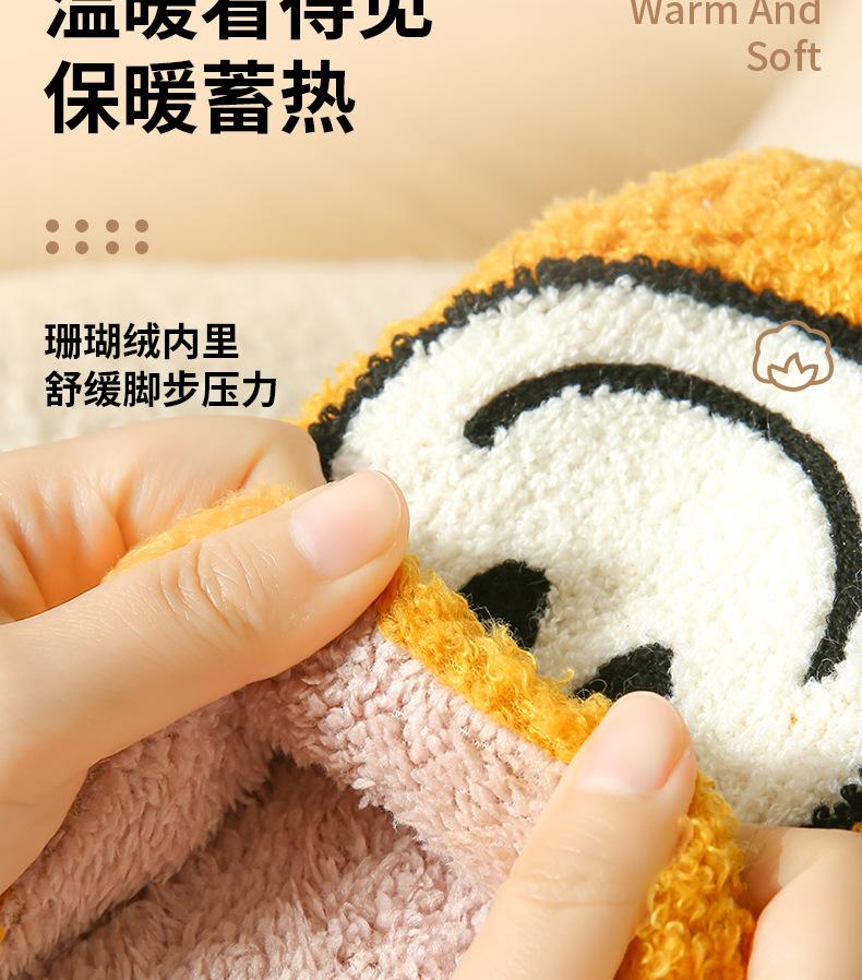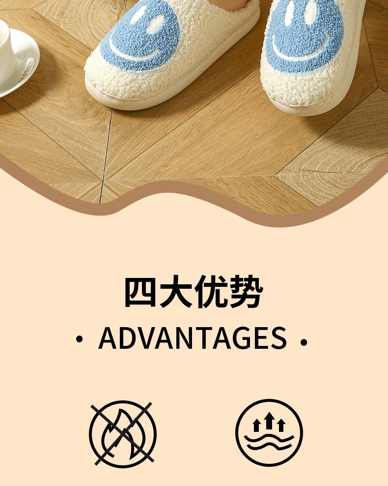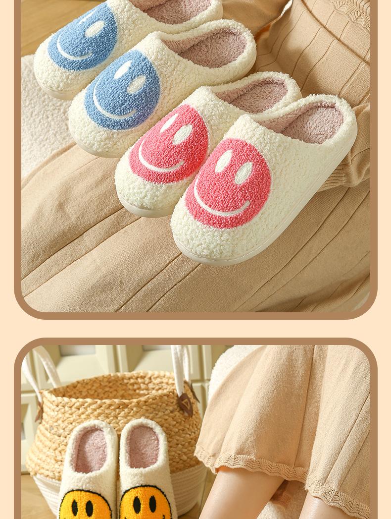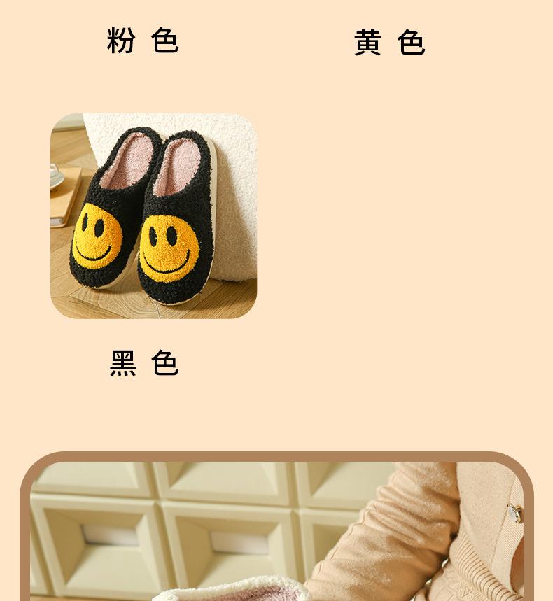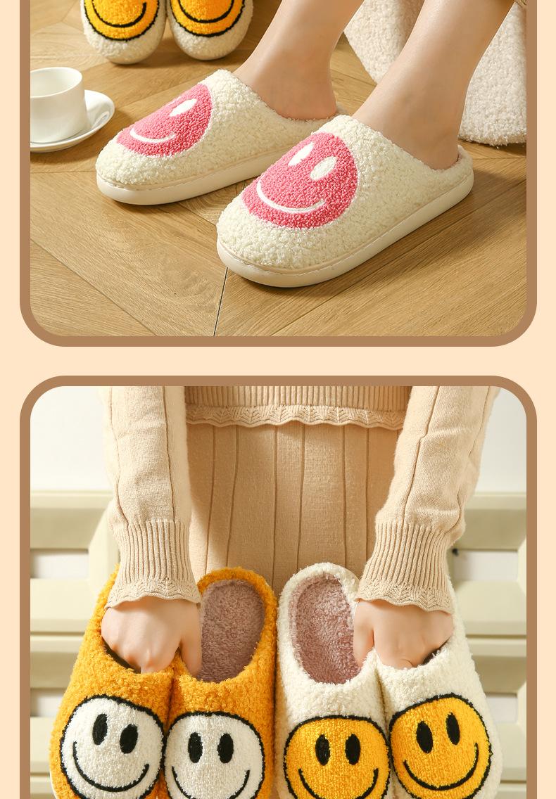 Pantuflas de Felpa con Cara Sonriente al por Mayor Transfronterizas Otoño e Invierno para Casa Interior Pantuflas de Algodón Cálidas de Suela Gruesa Pantuflas de Felpa para Casa